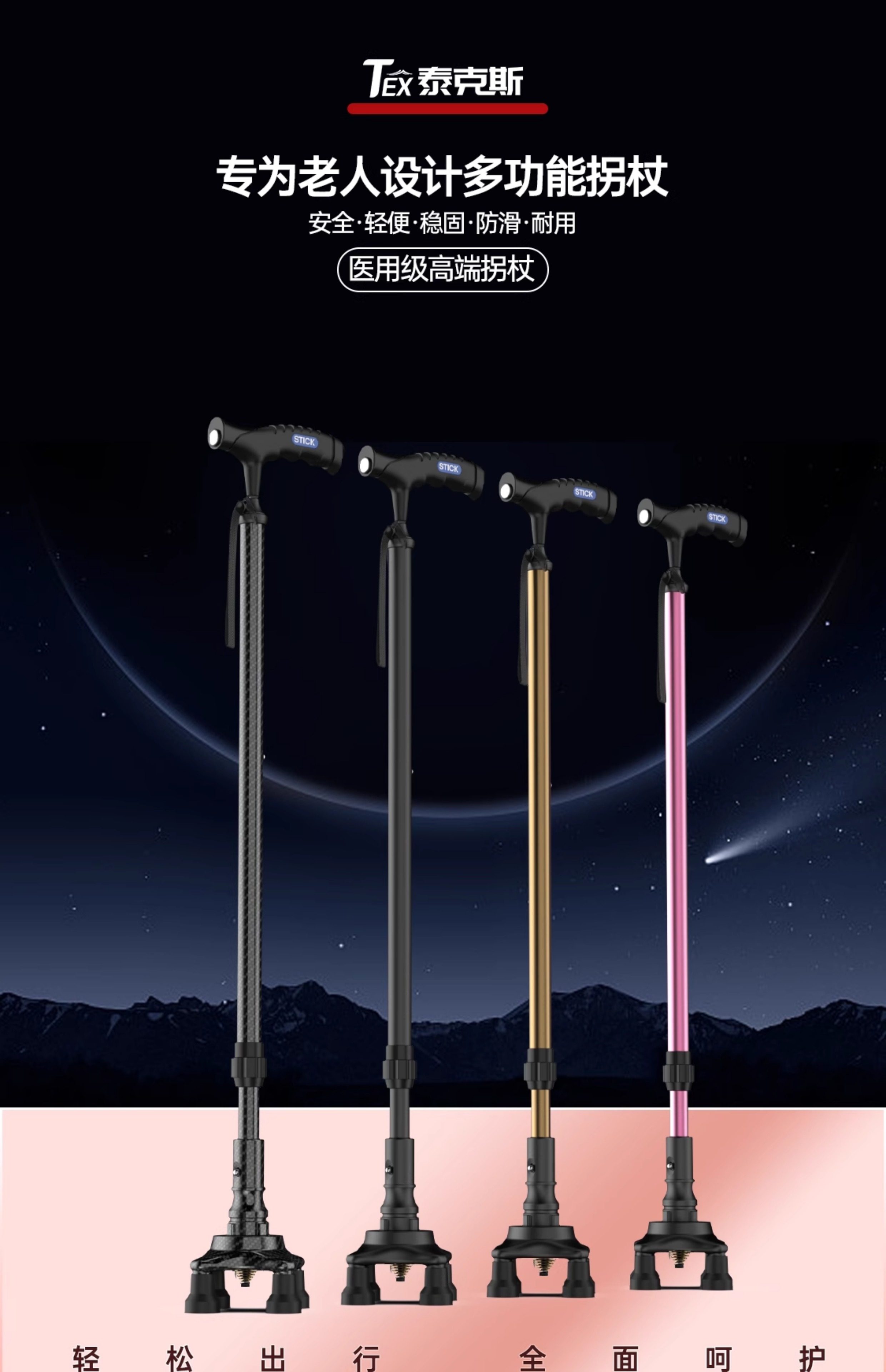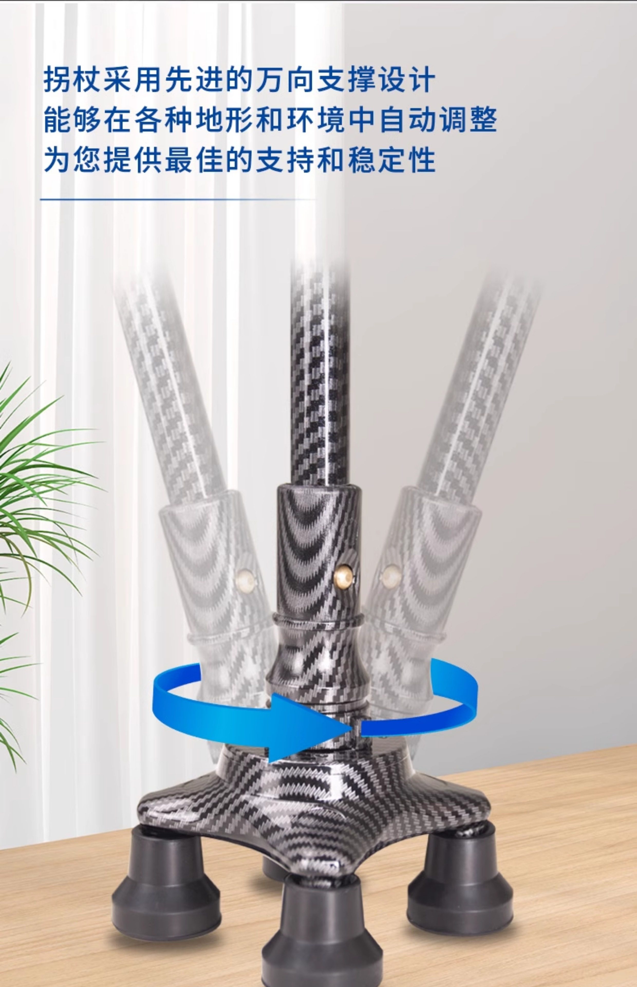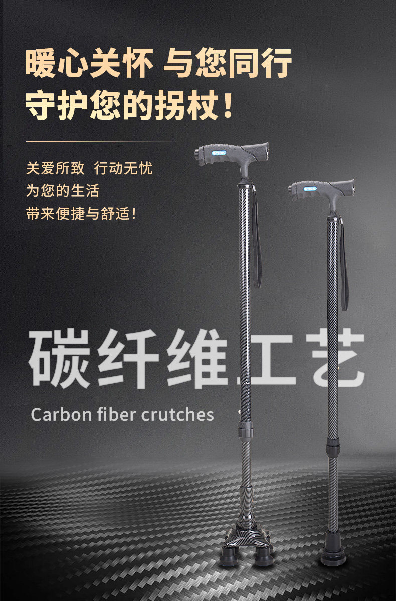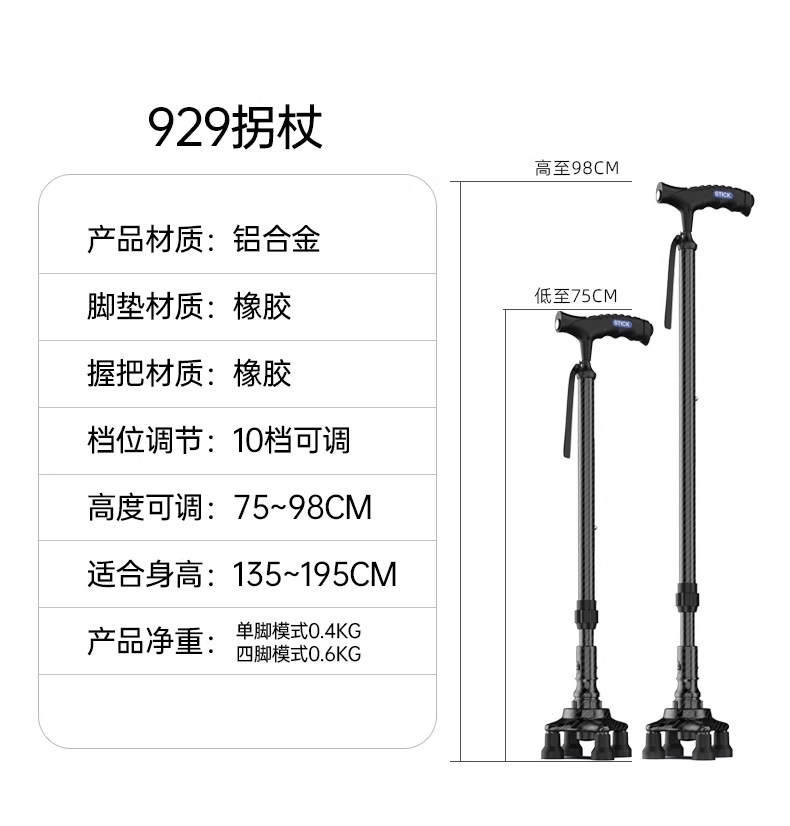 Cane for Elderly, Non-Slip, Lightweight, Telescopic, Four-Legged, Special Universal Bottom Rubber Head Walking Stick, Four-Corner Walking Aid