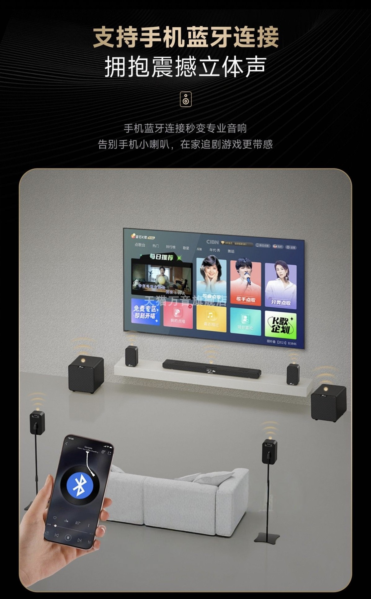 | Color Classification | 2.1 Wireless Kit [Single Wireless Subwoofer],2.2 Wireless Set [Dual Wireless Subwoofers],5.1 Wireless Set [Host + Wireless Subwoofer + Surround + Dual Microphones],5.2 Wireless Kit [Host + Dual Wireless Subwoofers + Surround + Dual Microphones],7.1 Wireless Kit [Host + Wireless Subwoofer + 2 Pairs of Surround + Dual Microphones],7.2 Wireless Kit [Host + Dual Wireless Subwoofers + 2 Pairs of Surround + Dual Microphones],2.1 Wireless Kit + 14.1inch Dual-System Karaoke Machine [Million Song Library],2.2 Wireless Kit + 14.1inch Dual-System Karaoke Machine [Million Song Library],5.1 Wireless Karaoke System + 14.1inch Dual-System Karaoke Machine [Million Song Library],5.2 Wireless Kit + 14.1inch Dual-System Karaoke Machine [Million Song Library],7.1 Wireless Kit + 14.1inch Dual-System Karaoke Machine [Million Song Library],7.2 Wireless Kit + 14.1inch Dual-System Karaoke Machine [Million Song Library] |