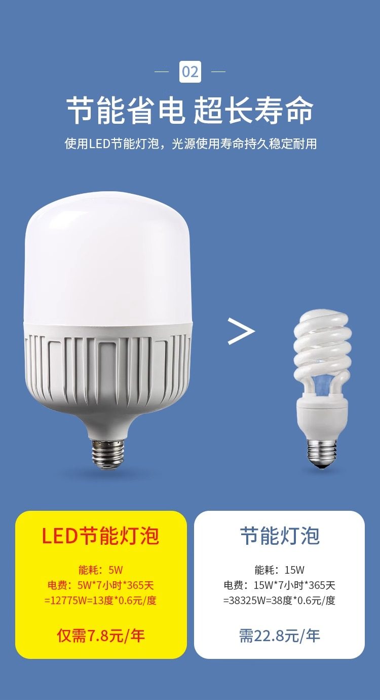 Led Light Bulb for Home Use E27 Screw Base Spiral Energy-Saving Lamp White Light Ultra-Bright Eye Protection Flicker-Free High-Power Lighting Bulb