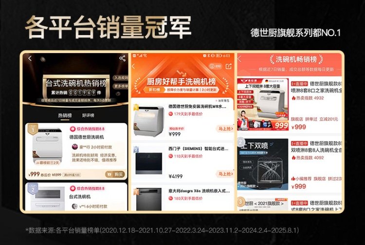 Deshi Kitchen Dishwasher 8-Person Large Capacity Set with Upper and Lower Spray, Small Household Fully Automatic Drying and Disinfection Tabletop Model Q8