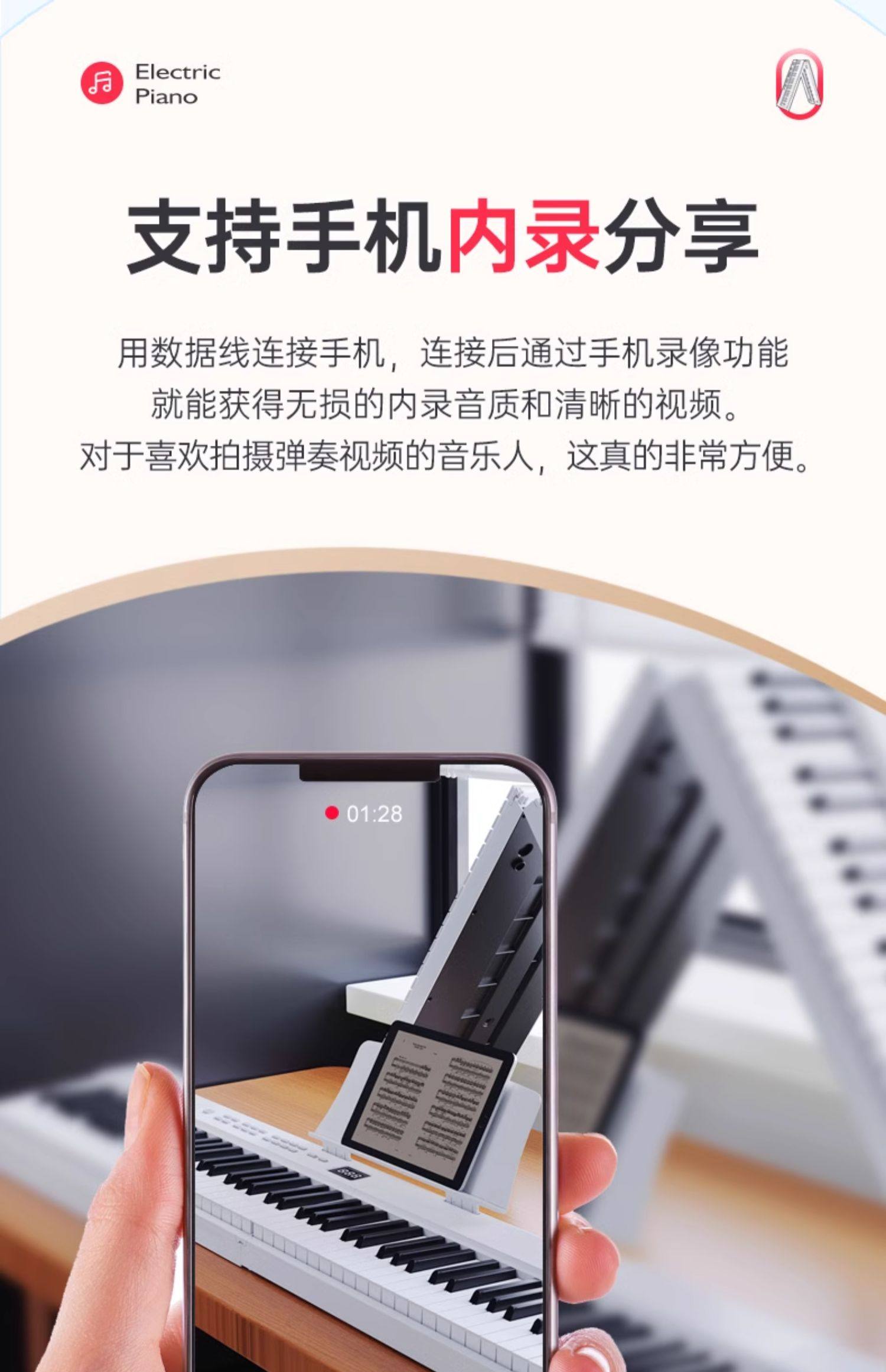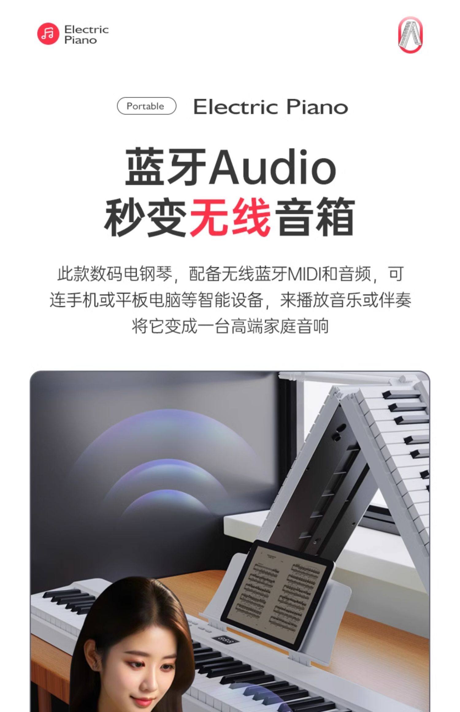 | Color Classification | [Fashion White Folding] 88-Key Standard Edition,【Stylish White Foldable】88-Key Graded Response Bluetooth Keyboard,【Stylish White Foldable】88-Key Graded Response Bluetooth App Light-Up Edition,[Sakura Pink Folding] 88-Key Standard Edition,【Sakura Pink Foldable】88-Key Graded Response Bluetooth Keyboard,【Sakura Pink Foldable】88-Key Weighted Bluetooth Illuminated Keyboard,[Rose Pink Folding] 88-Key Standard Edition,[Rose Pink Folding] 88-Key Bluetooth Version,【Rose Pink Foldable】88-Key Weighted Bluetooth Light-Up Keyboard,[Cool Black Folding] 88-Key Standard Edition,【Cool Black Foldable】88-Key Sustain Bluetooth Version,【Cool Black Foldable】88-Key Graded Response Bluetooth App Light-Up Edition |