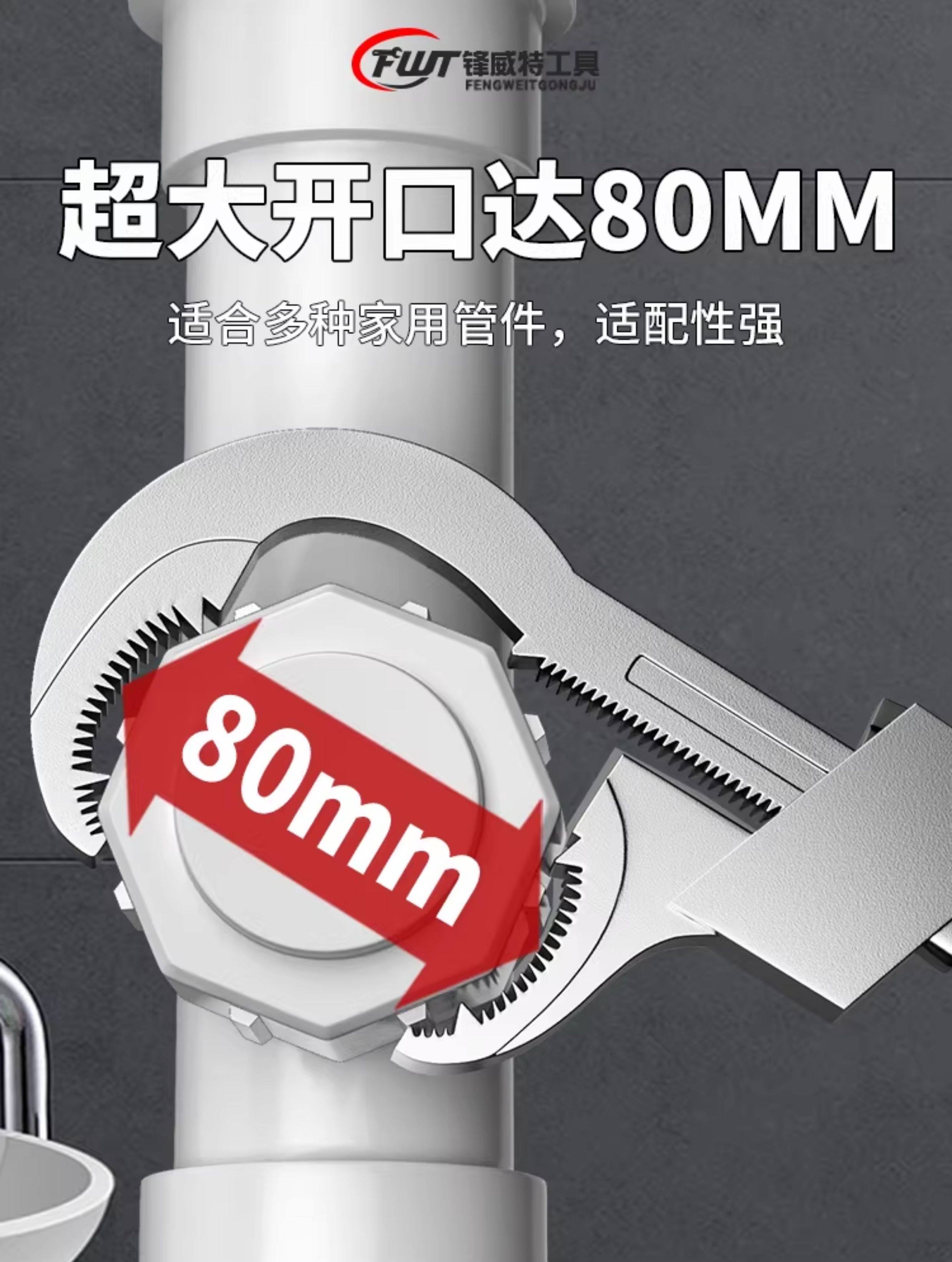 Fengweite Multifunctional Sink Wrench, Universal Large Opening Faucet Bathroom Special Tool for Household Water Pipe Installation