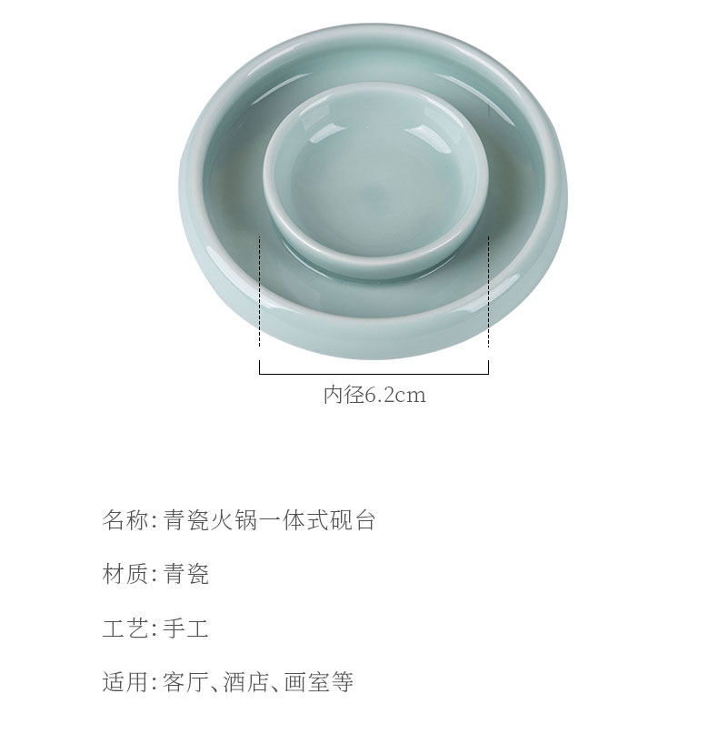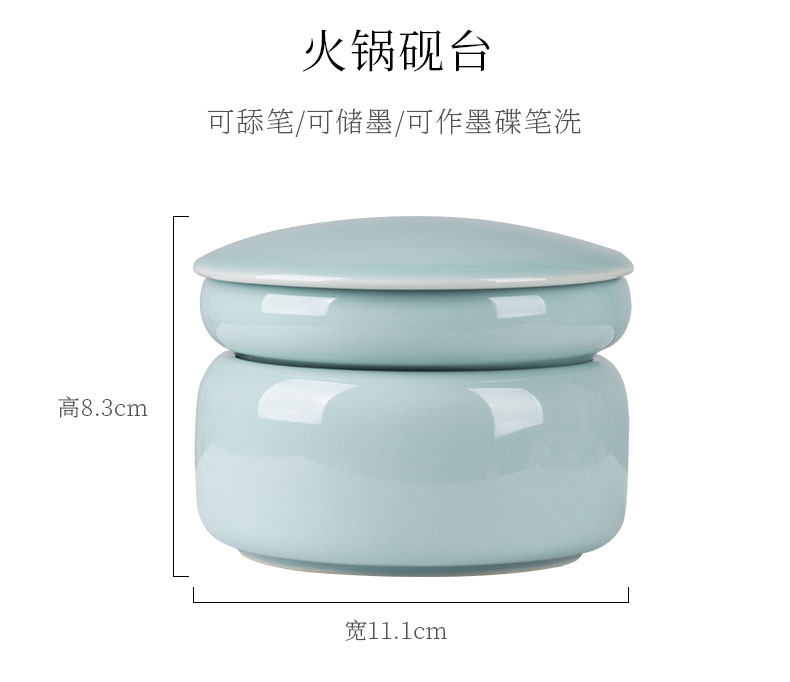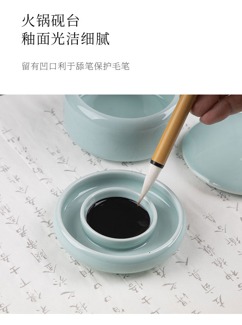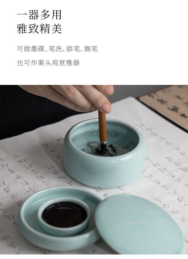 Celadon Inkstone for Calligraphy, Special Inkstone for Practicing Calligraphy, Ink Dish for Holding Ink, Ink Box with Lid, Double-Ring to Prevent Ink Drying, Creative Ceramic Inkstone, Pen Washer, Pen Licking Bowl, Calligraphy and Chinese Painting Supplies, Study Room Decoration