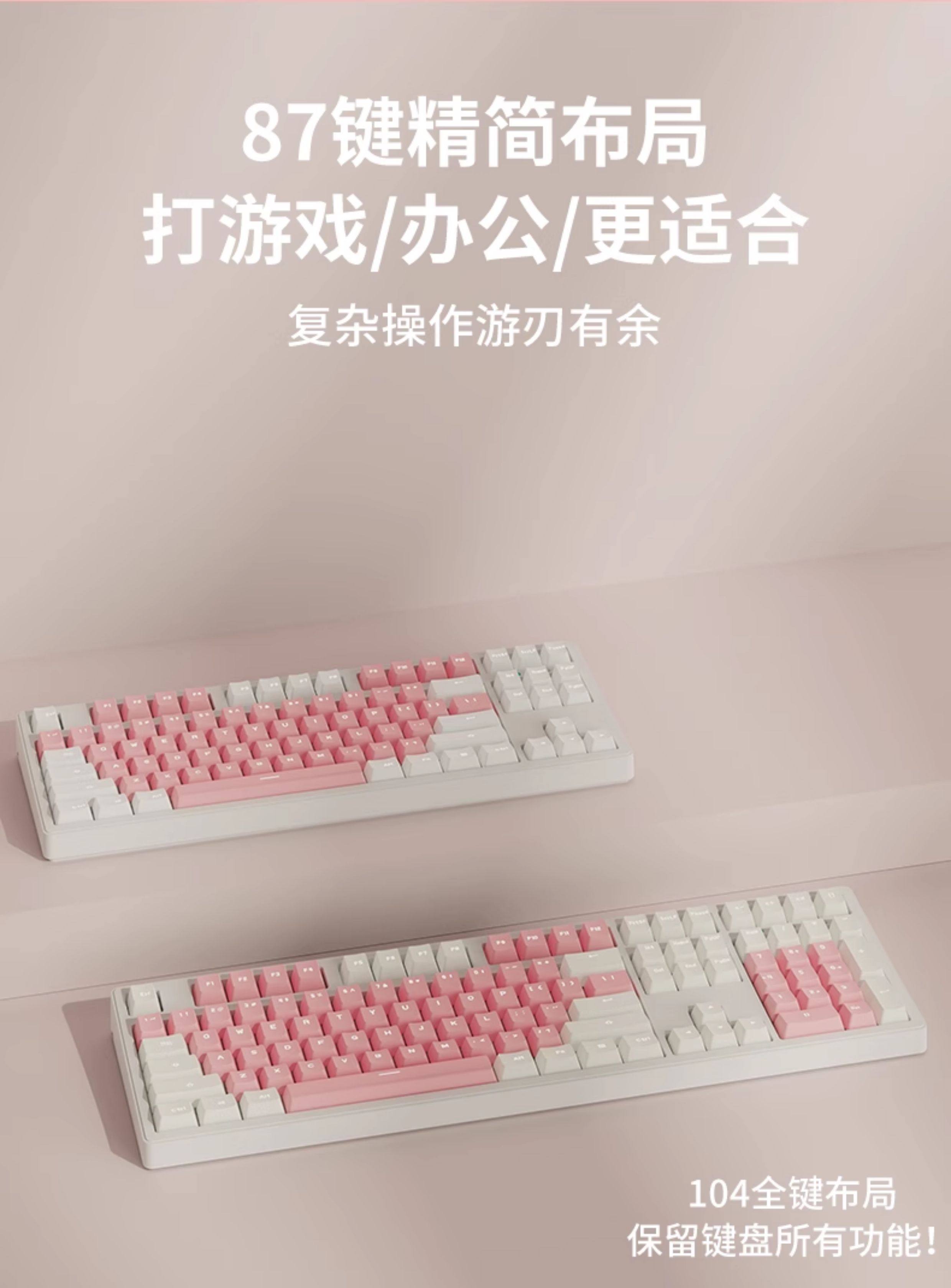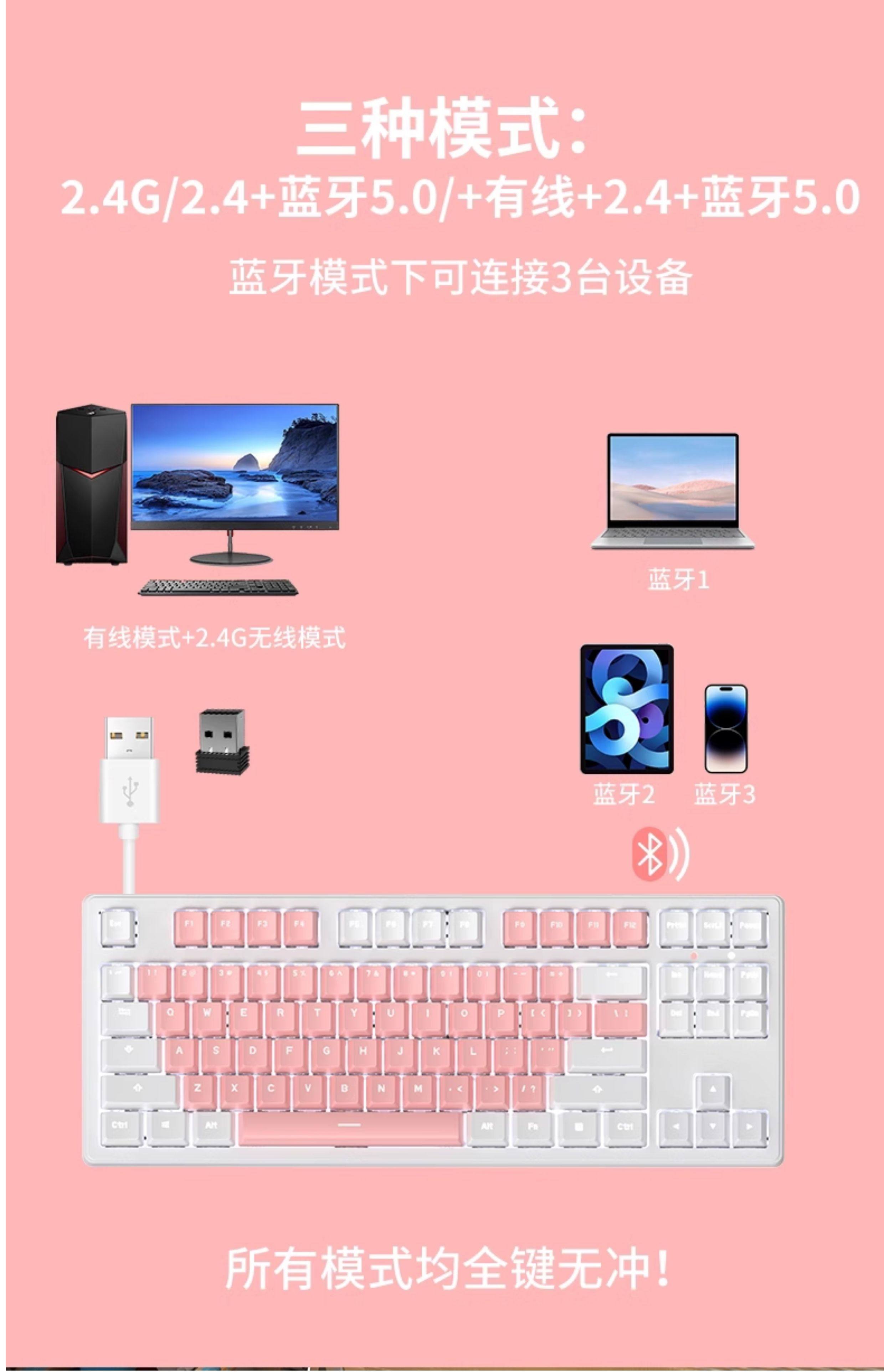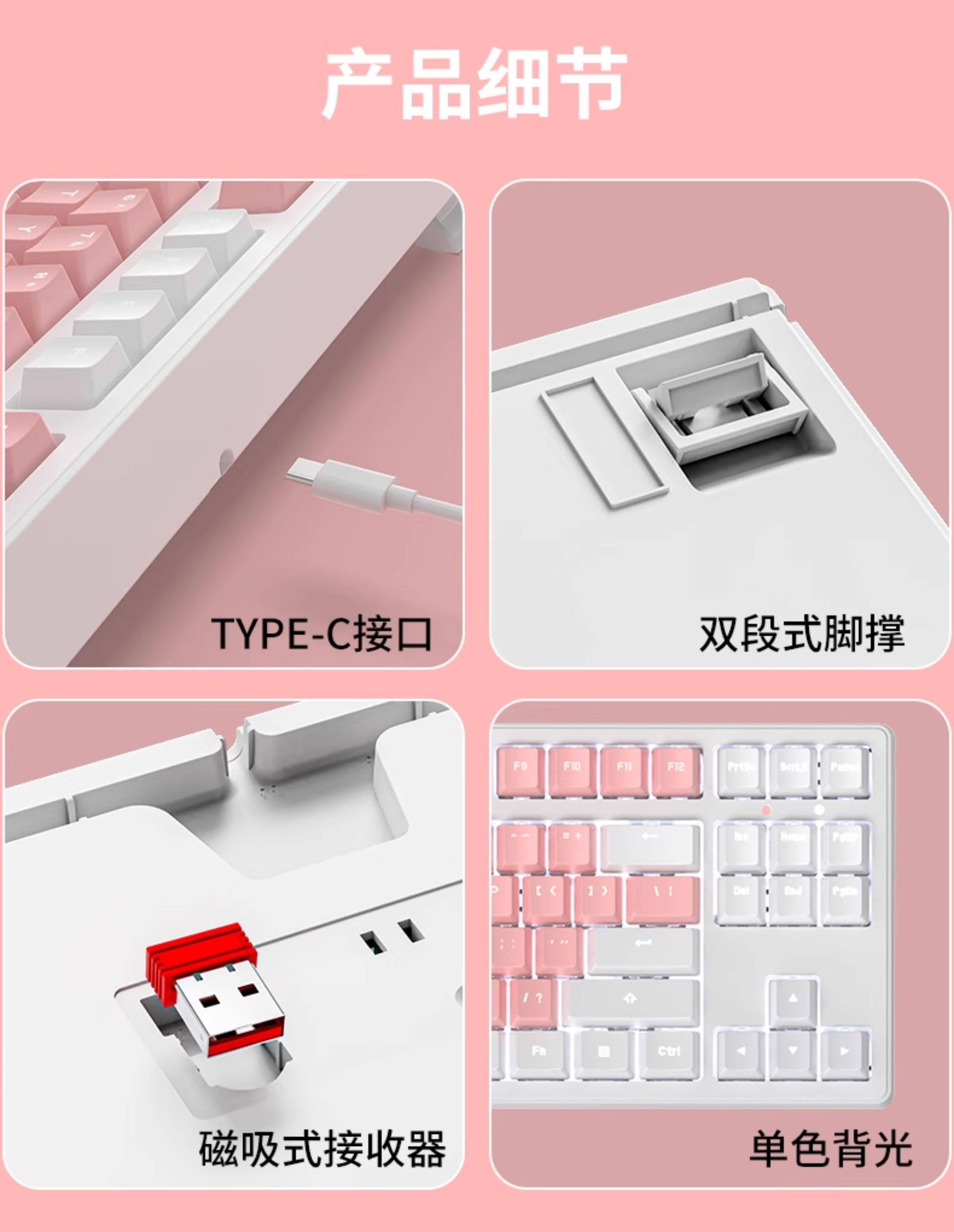 | Color Classification | Pink-White Light[Wireless Bluetooth Tri-Mode],Pink and White Macarons[Wireless Bluetooth Tri-Mode],White Powder Macarons[Wireless Bluetooth Tri-Mode],White-White Light[Wireless Bluetooth Tri-Mode],Blue and White Mediterranean[Wireless Bluetooth Tri-Mode],Pink-White Light[108 Keys - Wireless Bluetooth Tri-Mode],Pink and White Macarons[108 Keys - Wireless Bluetooth Tri-Mode],White-White Light[108 Keys - Wireless Bluetooth Tri-Mode],Blue and White Mediterranean[108 Keys - Wireless Bluetooth Tri-Mode],Snack Bunny[87-Key Wireless Tri-Mode Keyboard],Snack Bunny[108-Key Wireless Tri-Mode Keyboard],Naughty Bunny[87-Key Wireless Tri-Mode Keyboard],Naughty Bunny[108-Key Wireless Tri-Mode Keyboard],Snack Bunny Set[87-Key Wireless Tri-Mode Keyboard],Naughty Bunny Set[87-Key Wireless Tri-Mode Keyboard],Snack Bunny Set[108-Key Wireless Tri-Mode Keyboard],Naughty Bunny Set[108-Key Wireless Tri-Mode Keyboard],[87 Keys]White White Light-Keyboard and Mouse Set,[87 Keys]Pink White Light-Keyboard and Mouse Set,[87 Keys]Pink White Macaron-Keyboard and Mouse Set,[87 Keys]White Pink Macaron-Keyboard and Mouse Set,[108 Keys]White White Light-Keyboard and Mouse Set,[108 Keys]Pink White Light-Keyboard and Mouse Set,[108 Keys]Pink White Macaron-Keyboard and Mouse Set,[108 Keys]White Pink Macaron-Keyboard and Mouse Set,[Add to Favorites and Place an Order]Contact Customer Service to Get a Large Table Mat |