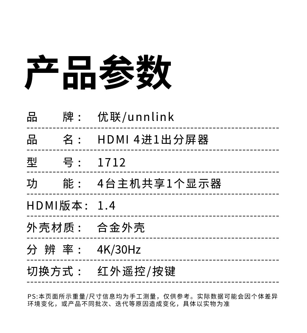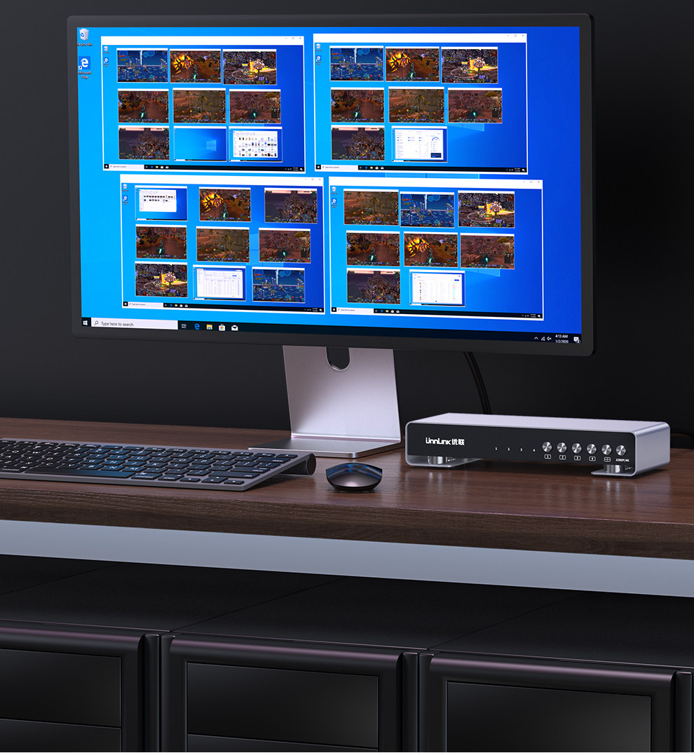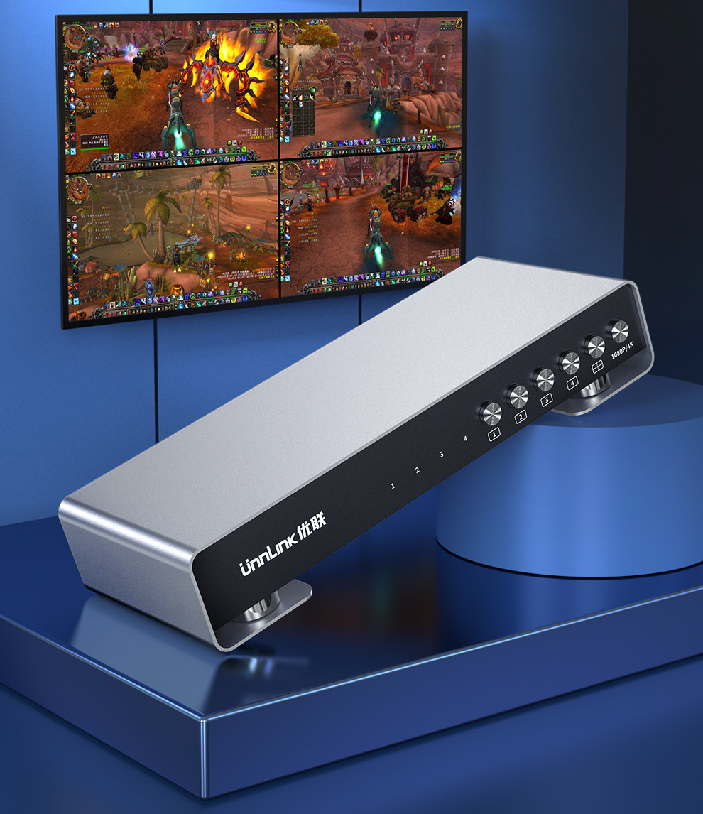 HDMI Splitter Four-In-One-Out Seamless Switcher One Screen Four-Screen Splitter Dnf Game Mining 4-In-1-Out Split Screen Four Computers Kvm Switcher Monitoring Four-Port 4K Screen Splitting