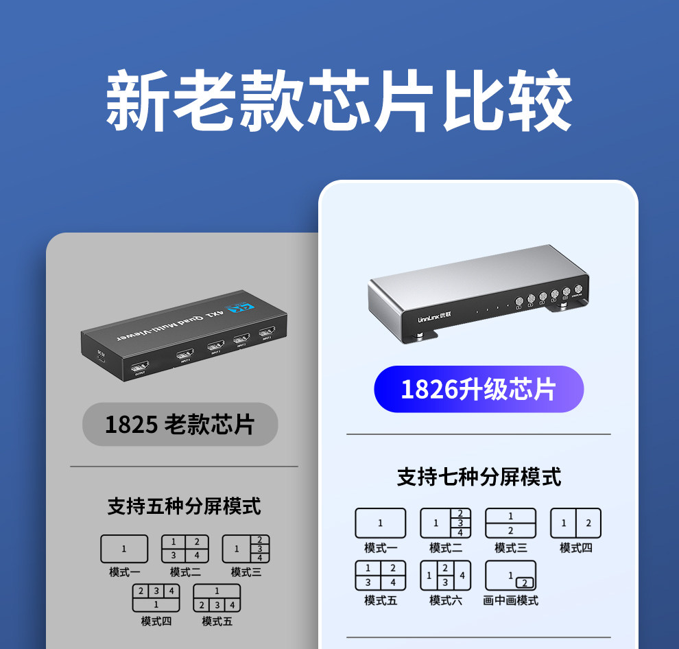 | Color Classification | [1825 Chip Standard Model]No Wiring,[1826 Chip Upgrade]No Wiring,[1825 Chip Standard Model]+4 HDMI Cables,[1826 Chip Upgrade]+4 HDMI Cables |