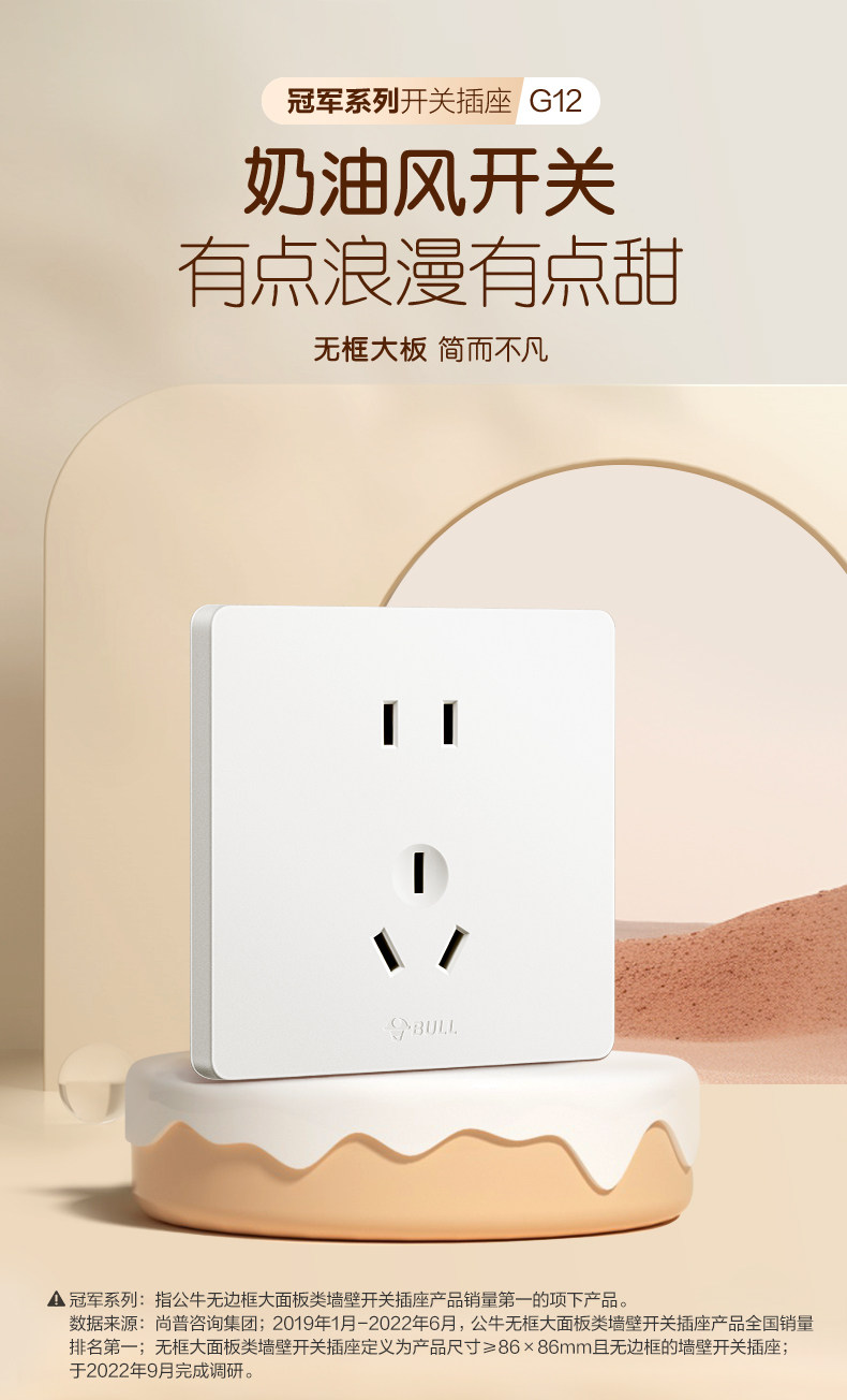 Bull Matte Switch Socket Ultra-Thin Panel Air Conditioner Five-Hole Home Package Dual Control Cream Style G12 Twilight White