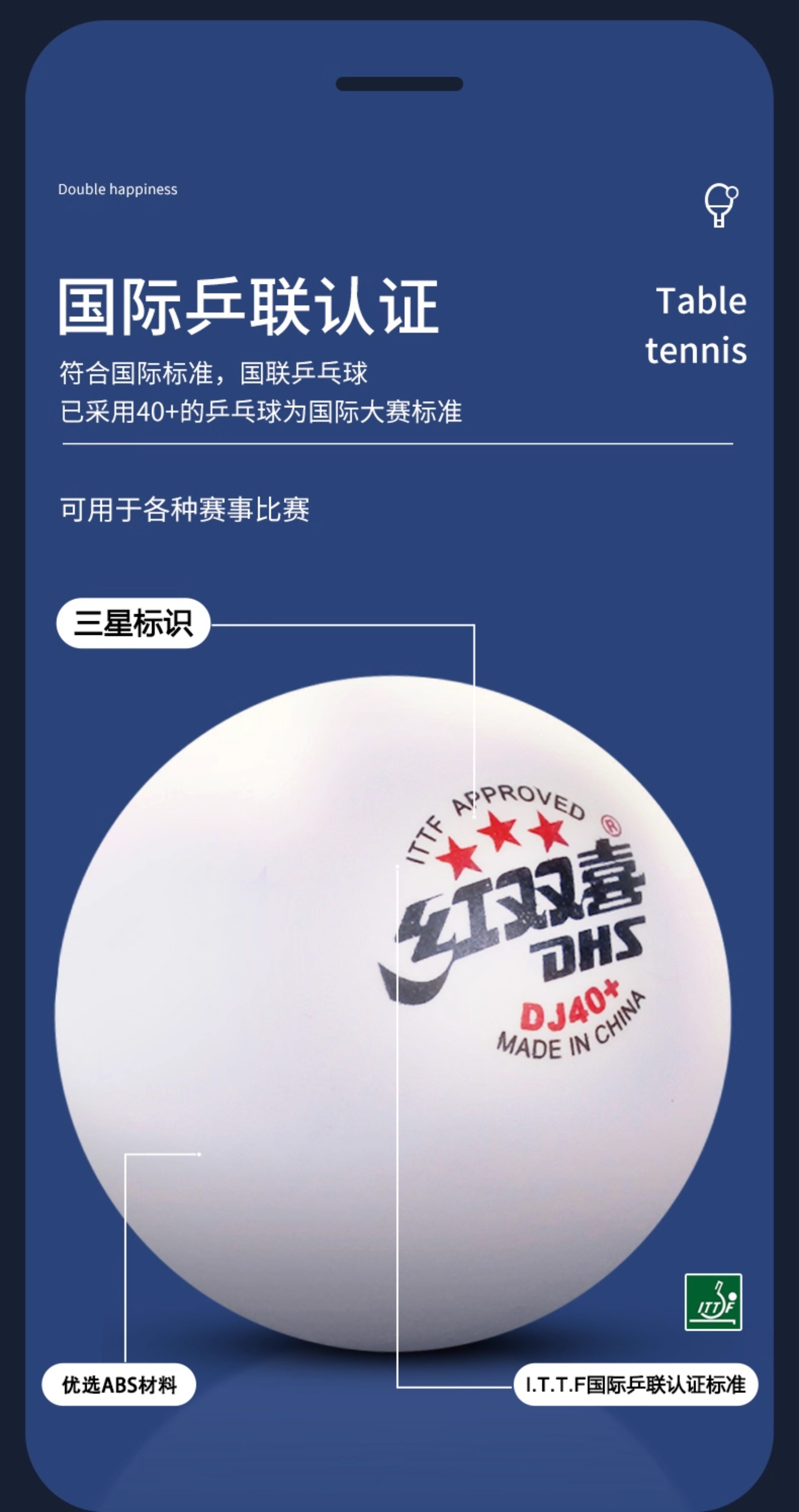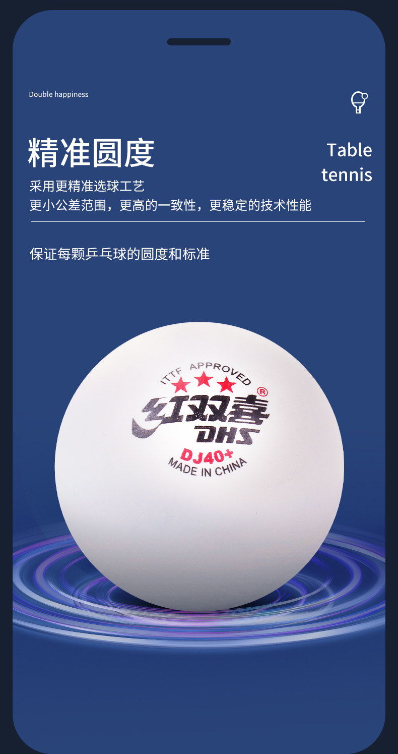 Red Double Happiness Table Tennis Ball D40+ Three-Star 2020 World Table Tennis Championships Dj Tokyo Exclusive Wtt Competition Table Tennis Ball