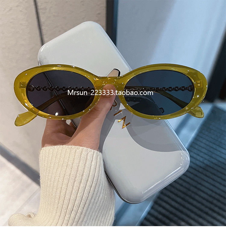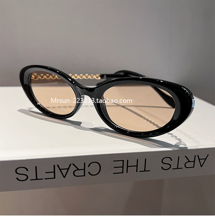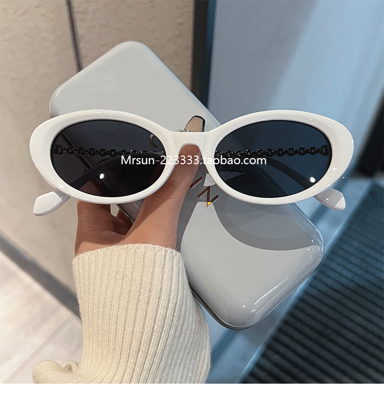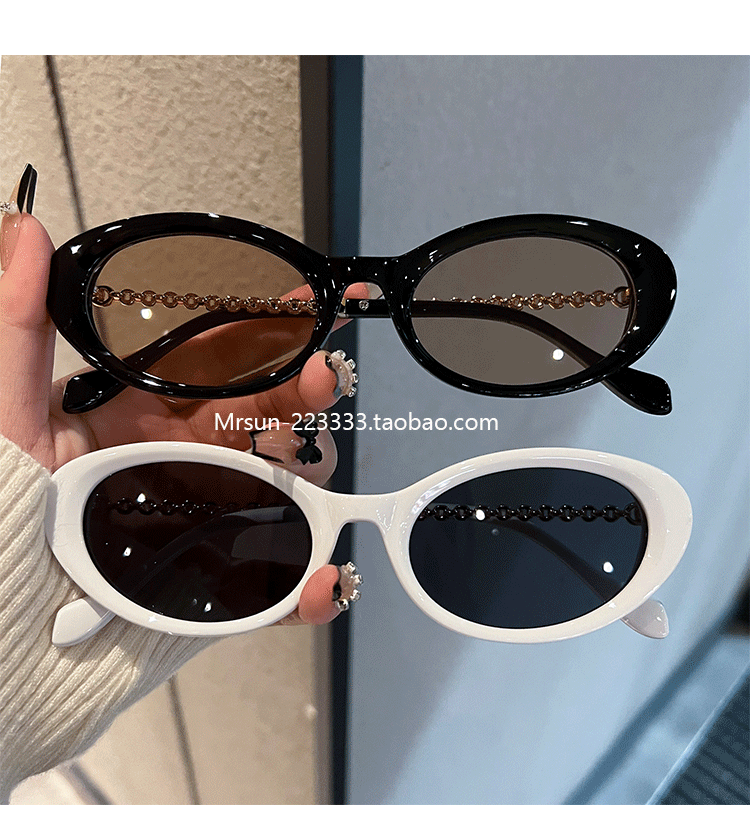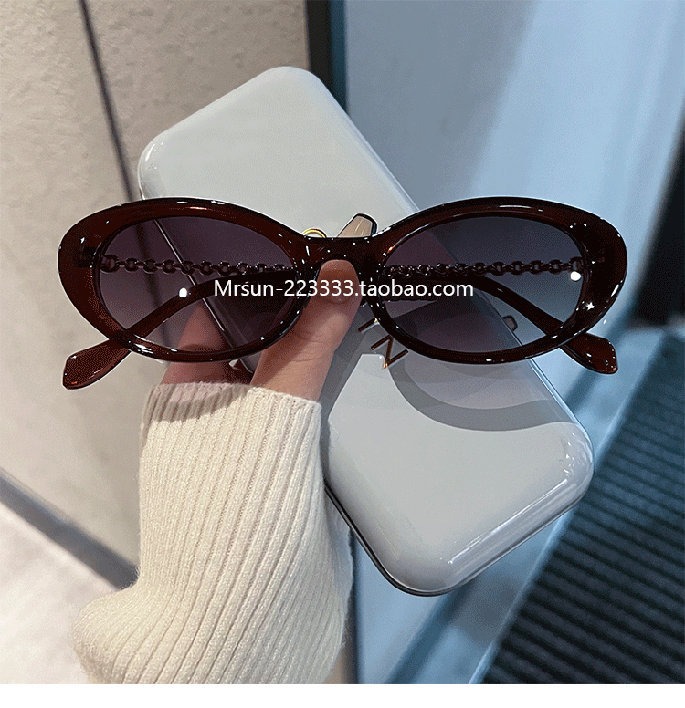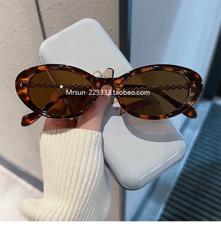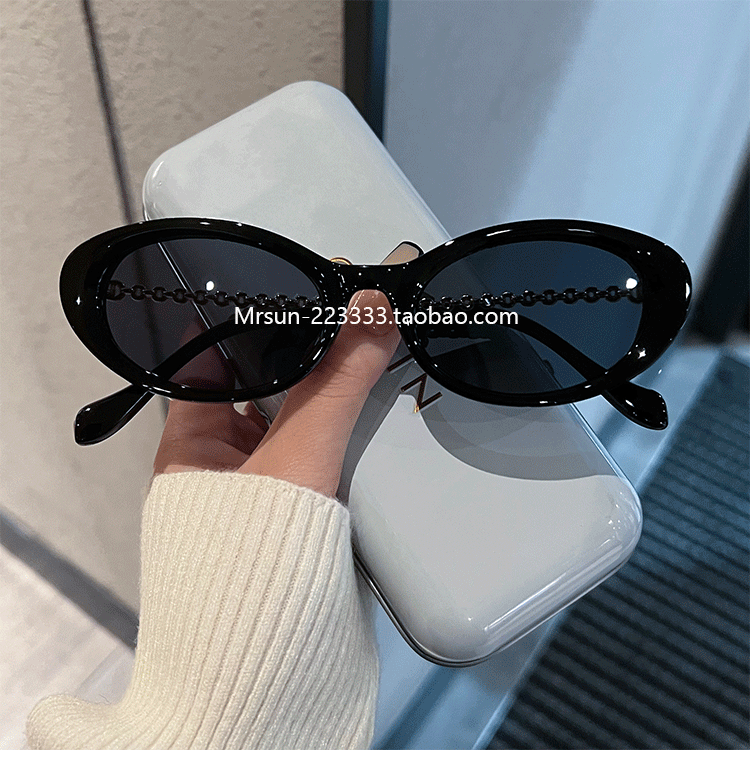 Cat-Eye Sunglasses for Women with Metal Chain Legs, European and American Personalized Sunglasses, Royal Sister Style, Sexy High-End Decorative Glasses for Photo Taking