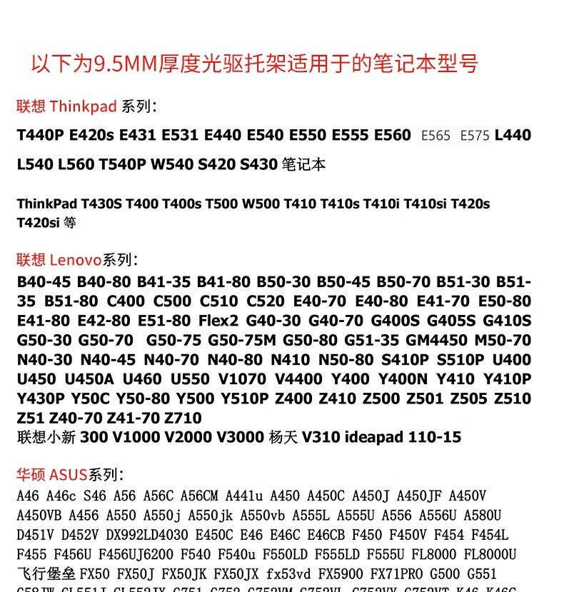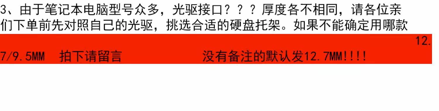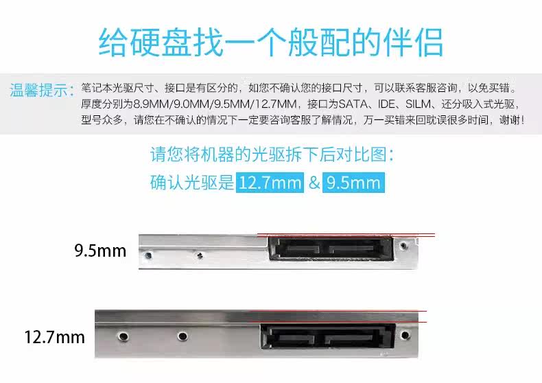| Color Classification | Aluminum Alloy--8.9 / 9.0 / 9.5 mm,Aluminum Alloy--12.7 mm,Second Generation Sata3.0 Black Warrior--8.9 / 9.0 / 9.5 mm,Second Generation Sata3.0 Black Warrior--12.7 mm,If the Thickness Is Not Clear, Please Contact Customer Service - Thank You!!! |