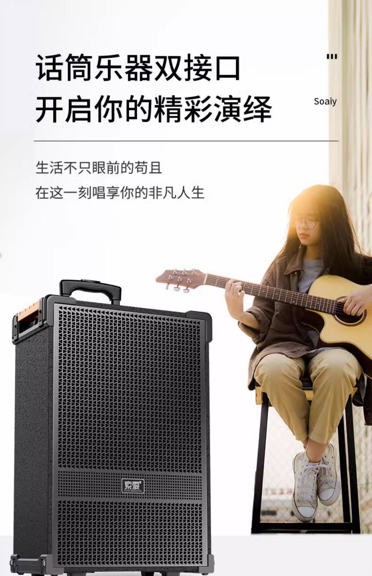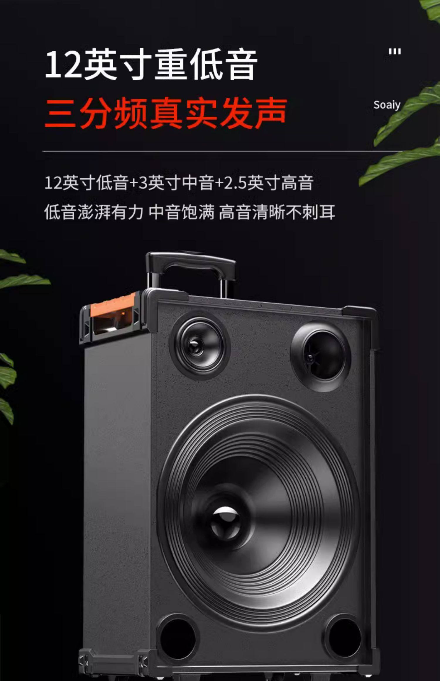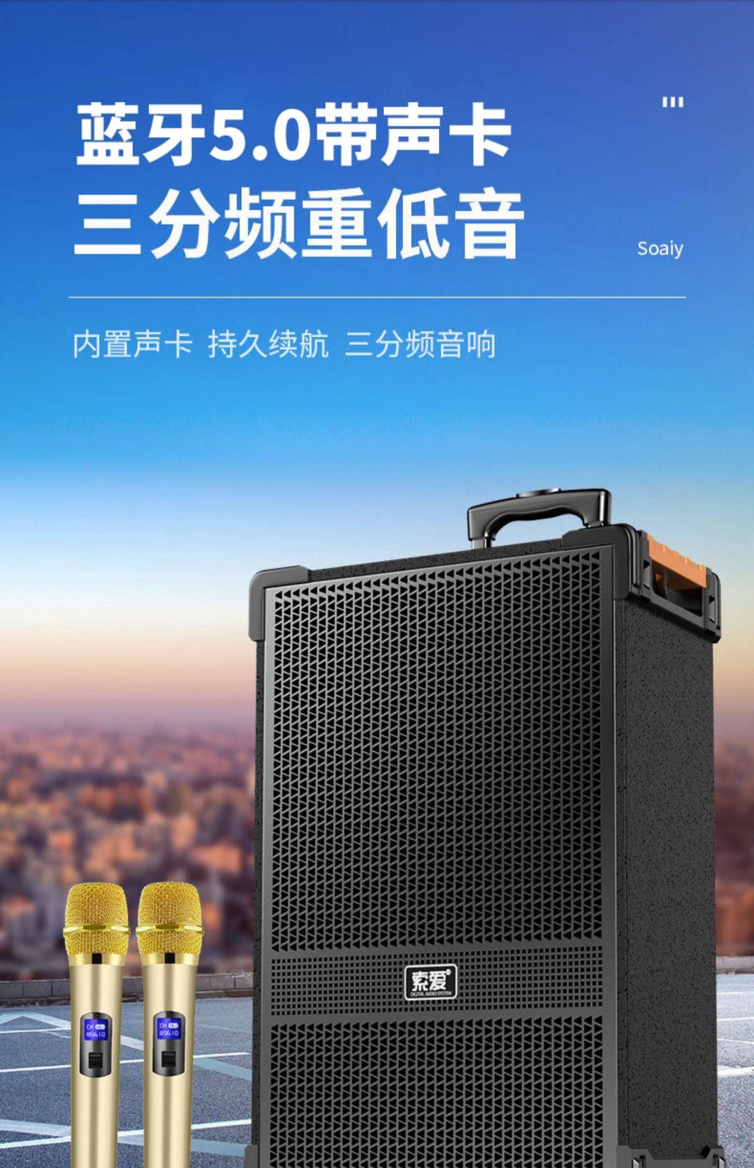 [with Sound Card] Sony Ericsson Bluetooth Outdoor Square Dance Speaker Three-Way Trolley Karaoke Speaker for Singing and Stall Setup with Heavy Bass