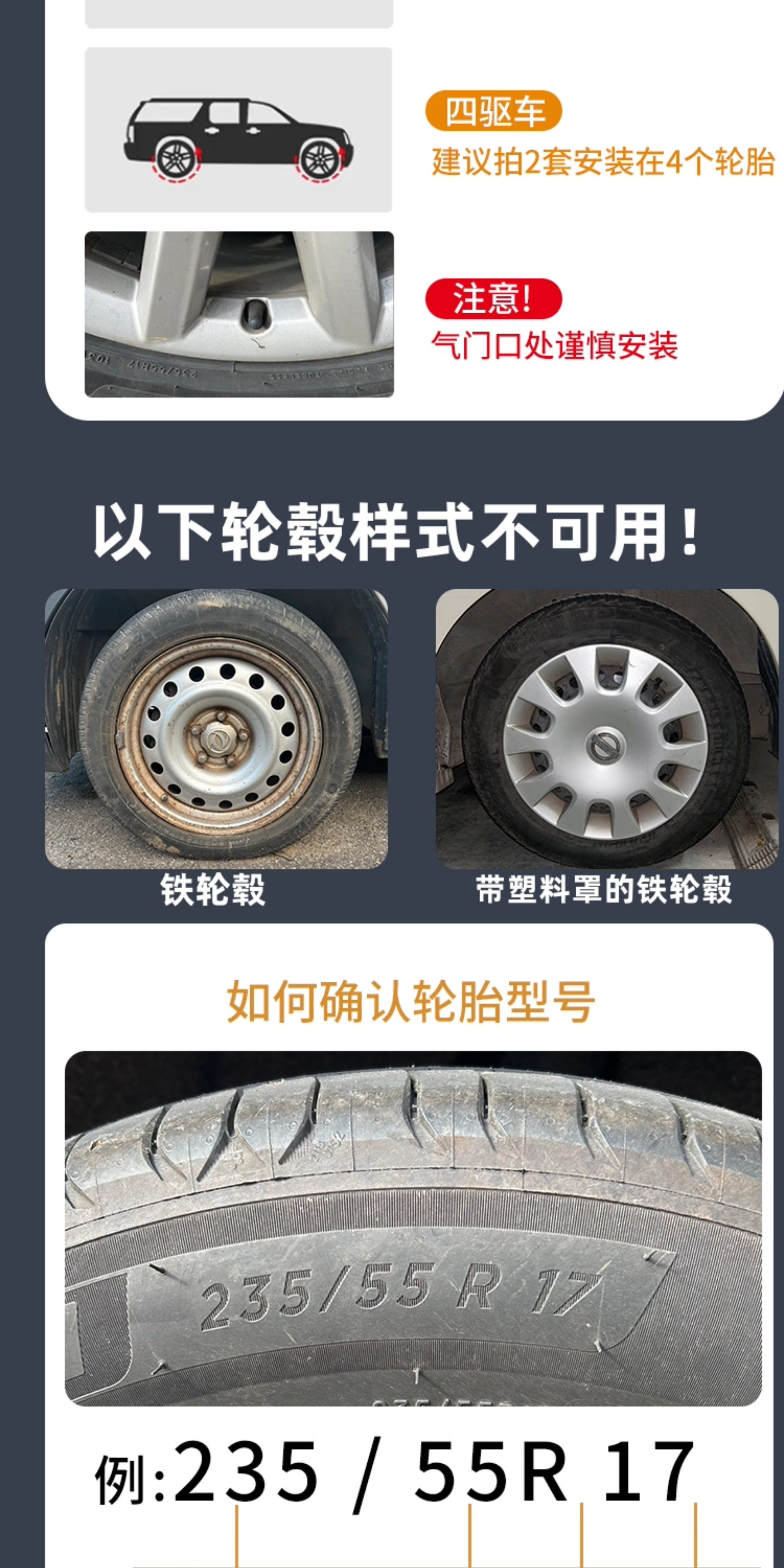| Color Classification | 6 Small Sizes (Applicable to Tires 165-195),8 Small Sizes (Applicable to Tires 165-195),10 Small Sizes (Applicable to Tires 165-195),6 Pieces of Medium Size (Applicable to Tires 205-235),8 Pieces of Medium Size (Applicable to Tires 205-235),10 Pieces of Medium Size (Applicable to Tires 205-235),6 Pieces of Large Size (Applicable to Tires 245-285),8 Pieces of Large Size (Applicable to Tires 245-285),10 Large Sizes (Applicable to Tires 245-285) |