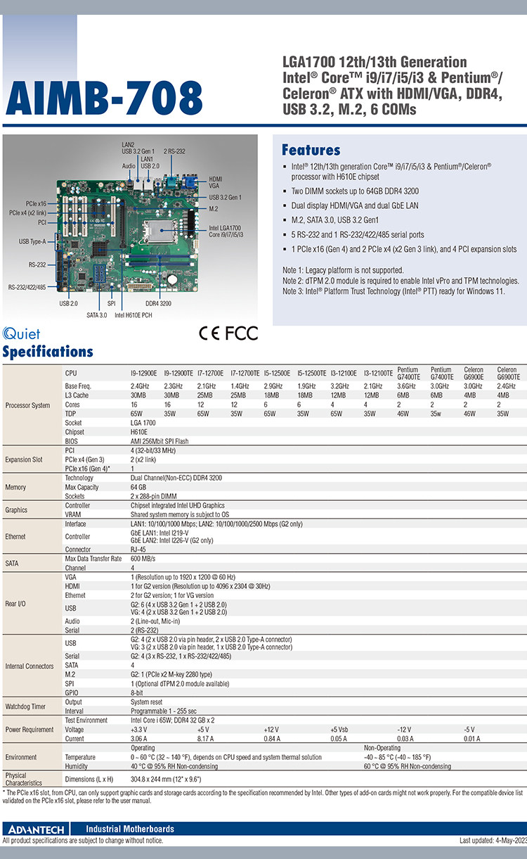Advantech Aimb-708Vg/708G2 Brand New Original Genuine 12-13 Generation Processor Lga1700 Motherboard