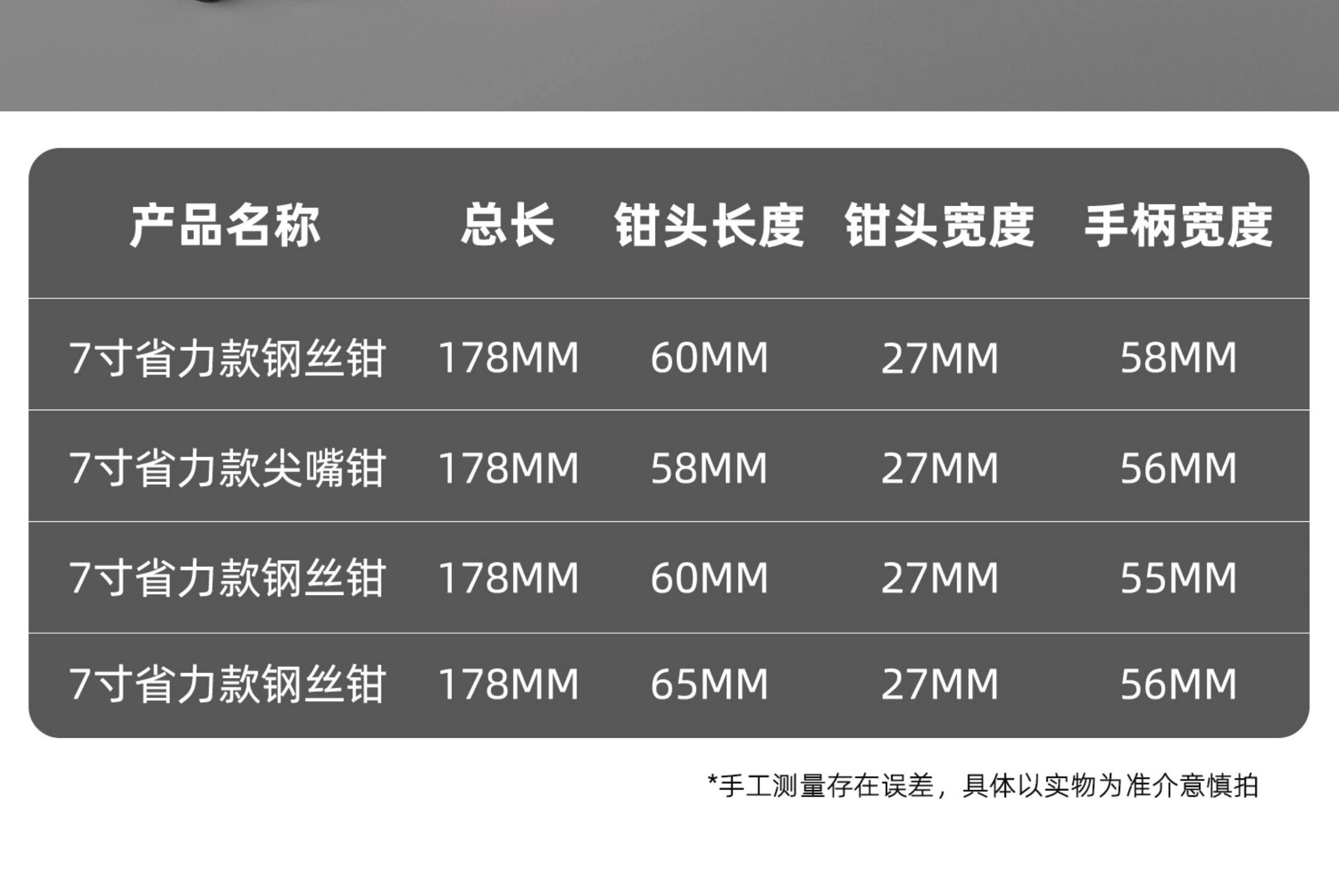 | Color Classification | Special Offer 6inch Wire Cutters,Classy 6inch Wire Cutters,Basic 7inch Wire Cutters,Classy 7inch Wire Cutters,Heavy-Duty Wire Pliers,Exquisite 7inch Wire Cutters,Special Offer 6inch Needle Nose Pliers,Premium 6inch Needle Nose Pliers,Heavy-Duty Needle-Nose Pliers,Premium 6inch Needle Nose Pliers,Premium Diagonal Cutting Pliers,Basic 7inch Wire Cutter + Special Price 6inch Needle Nose Pliers,Classy Combination 6inch Wire Cutter + 6inch Needle Nose Pliers,Classy Combination 7inch Wire Cutter + 6inch Needle Nose Pliers,Heavy-Duty Wire Pliers + Precision Needle-Nose Pliers |