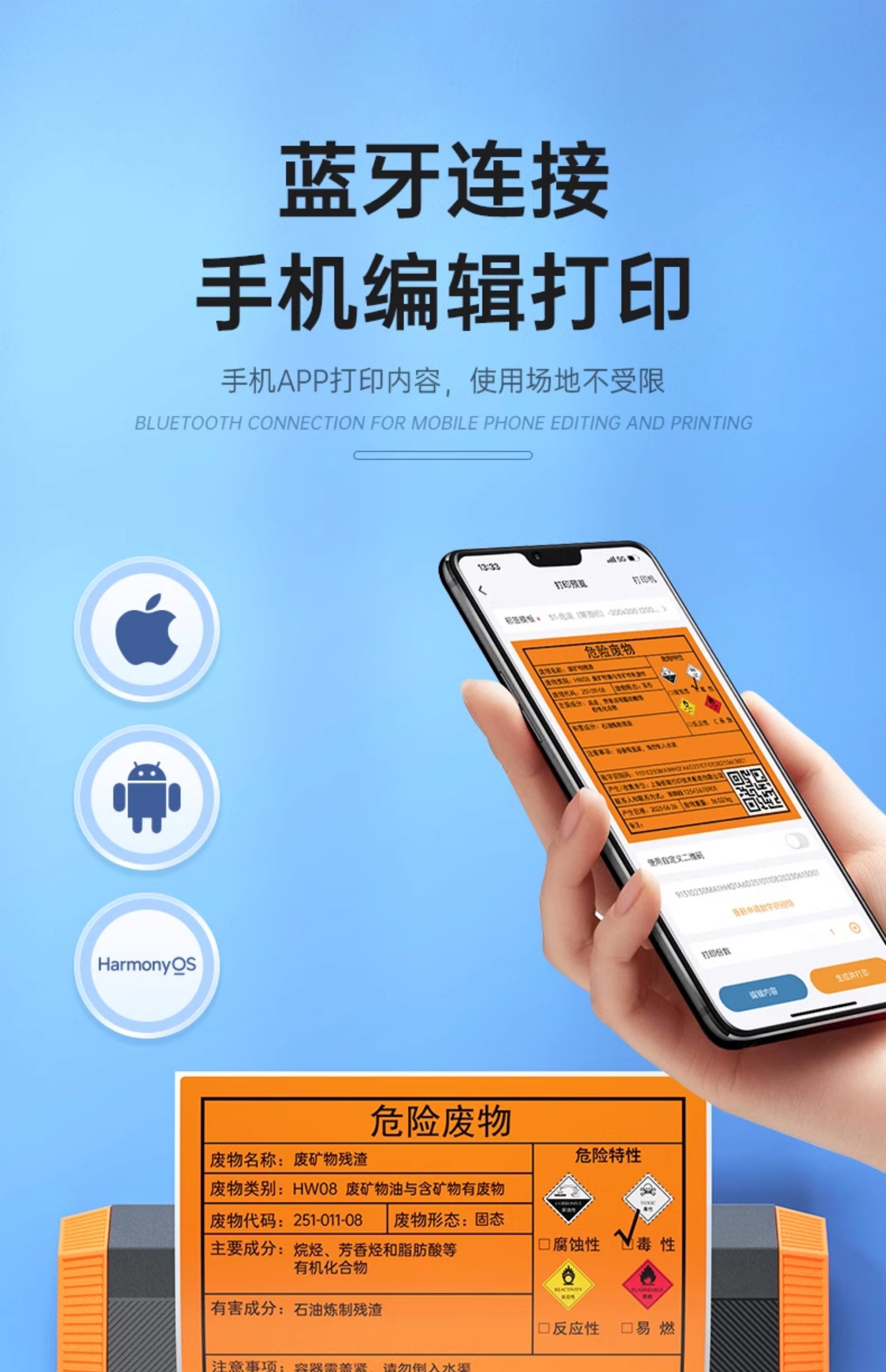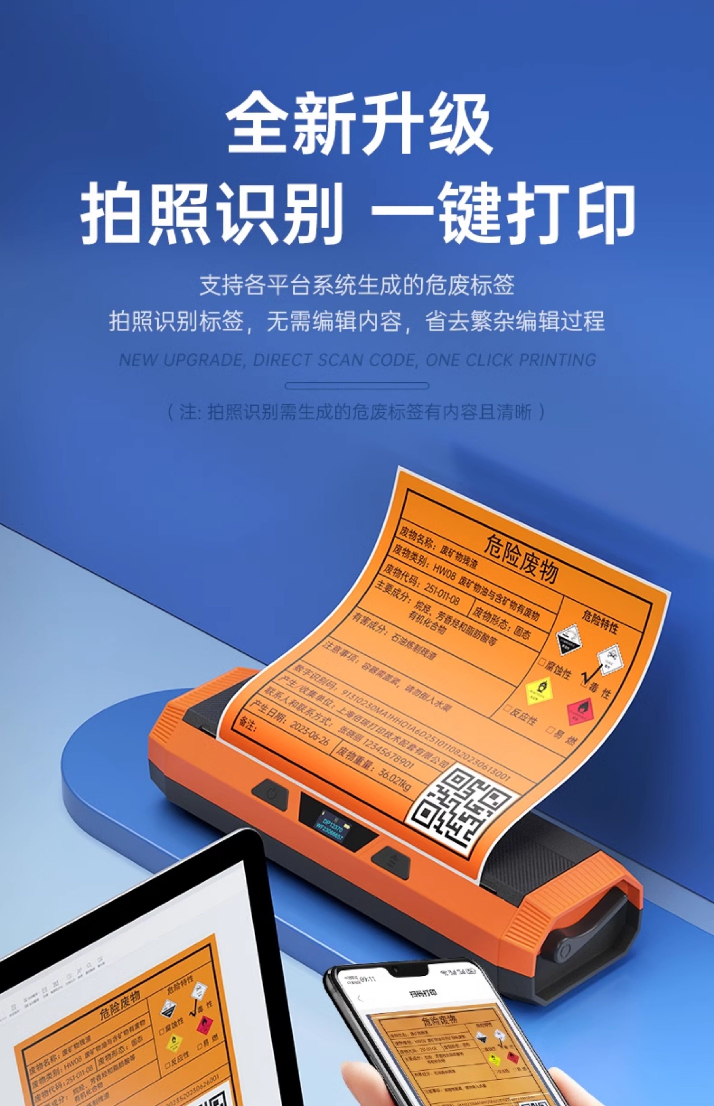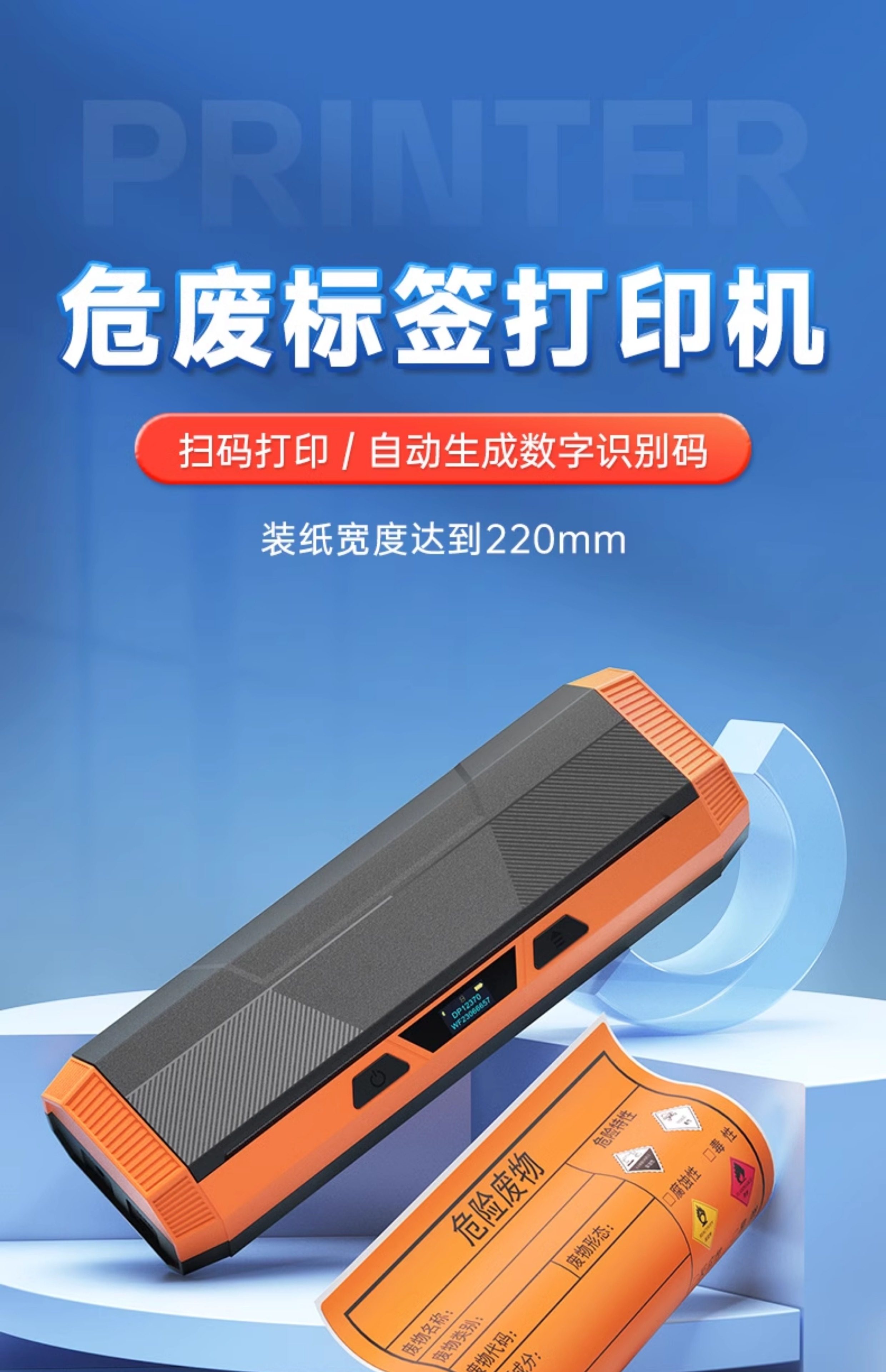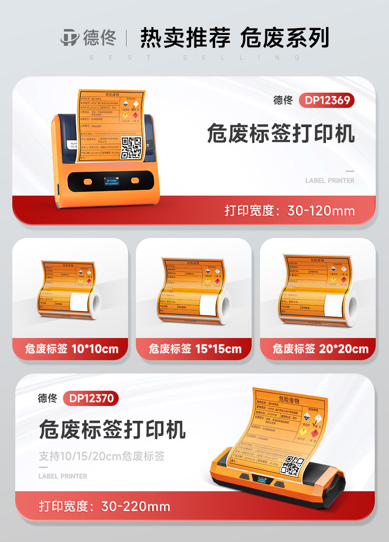 Detong Yinchu Fang Dp12370 New Version Hazardous Waste Label Printer 10*10/15*15/20*20cm with Qr Code Large Size Thermal Adhesive Sticker Label Machine 2025 New National Standard
