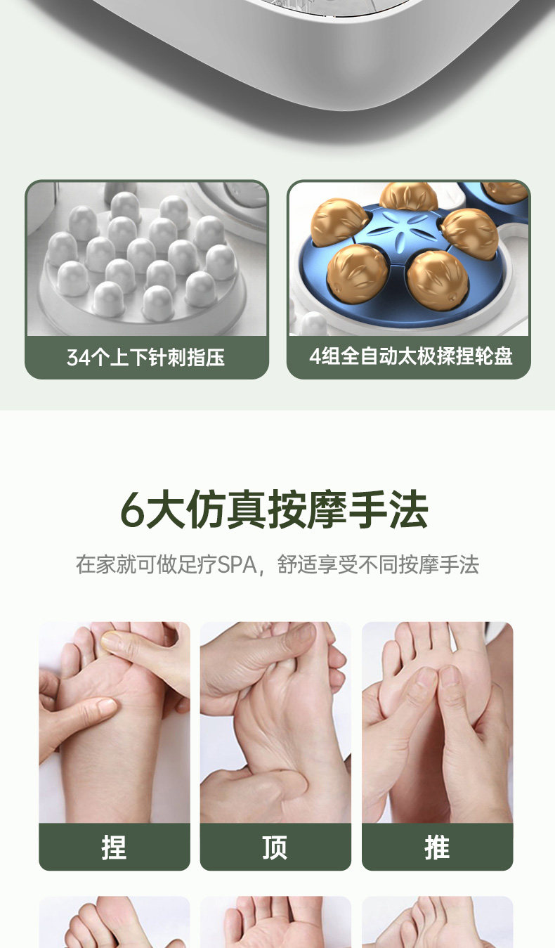| Function | Wireless Remote Control,Infrared Sterilization,Automatic Massage,Hot Moxibustion,Constant Temperature Adjustment,Timing,Smart Foot Bath Mode |