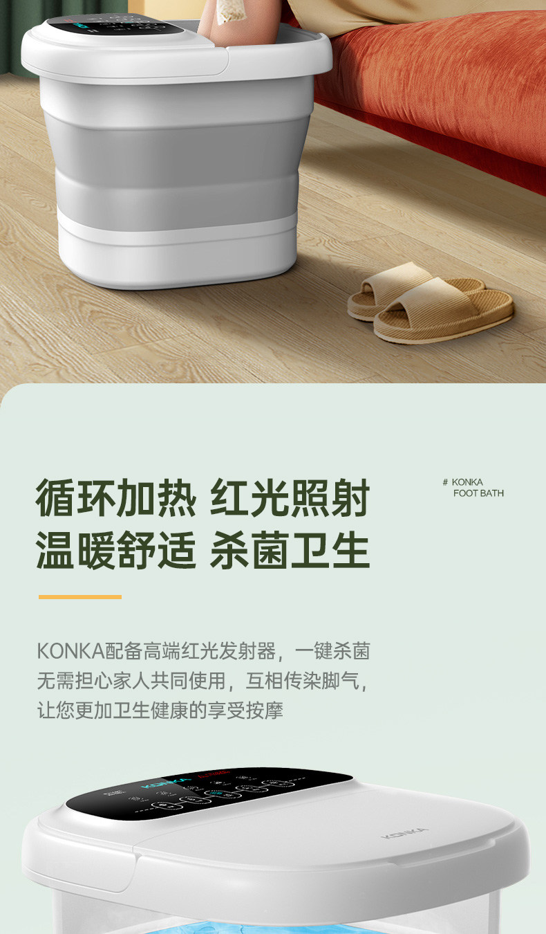 Konka Foot Bath Bucket with Heating, Constant Temperature, Foldable, Portable, Fully Automatic Foot Bath Basin, Home Electric Massage, Gift Foot Bath Bucket