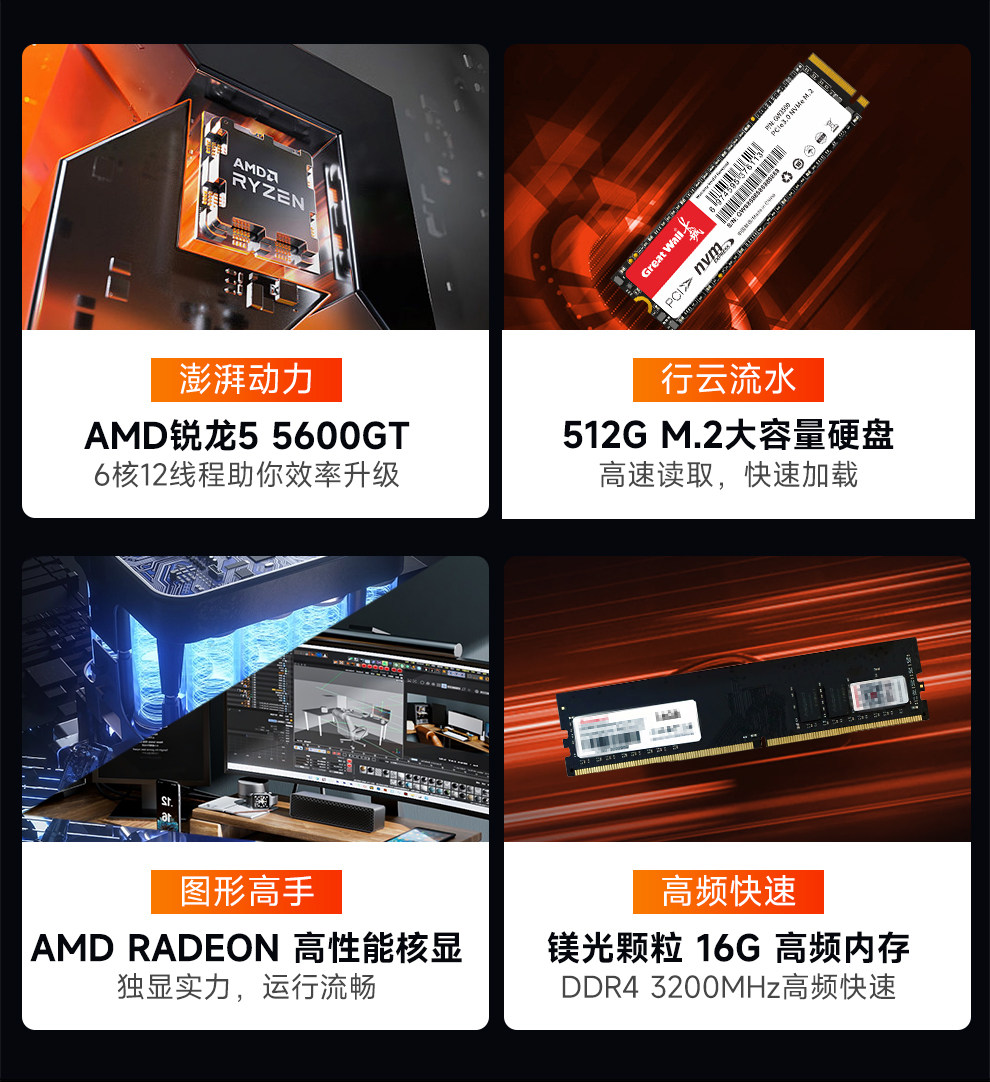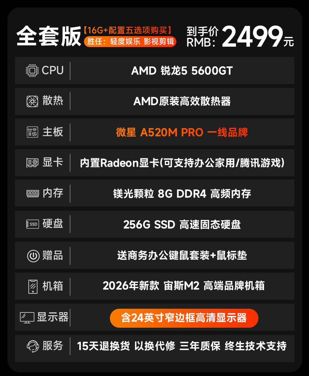 Msi Amd Ryzen R5 5600Gt Integrated Graphics Home Gaming Office Online Classes Enterprise Purchase Desktop Computer DIY Gaming Complete Set Lol Cf Tencent Full Package E-Sports Pc
