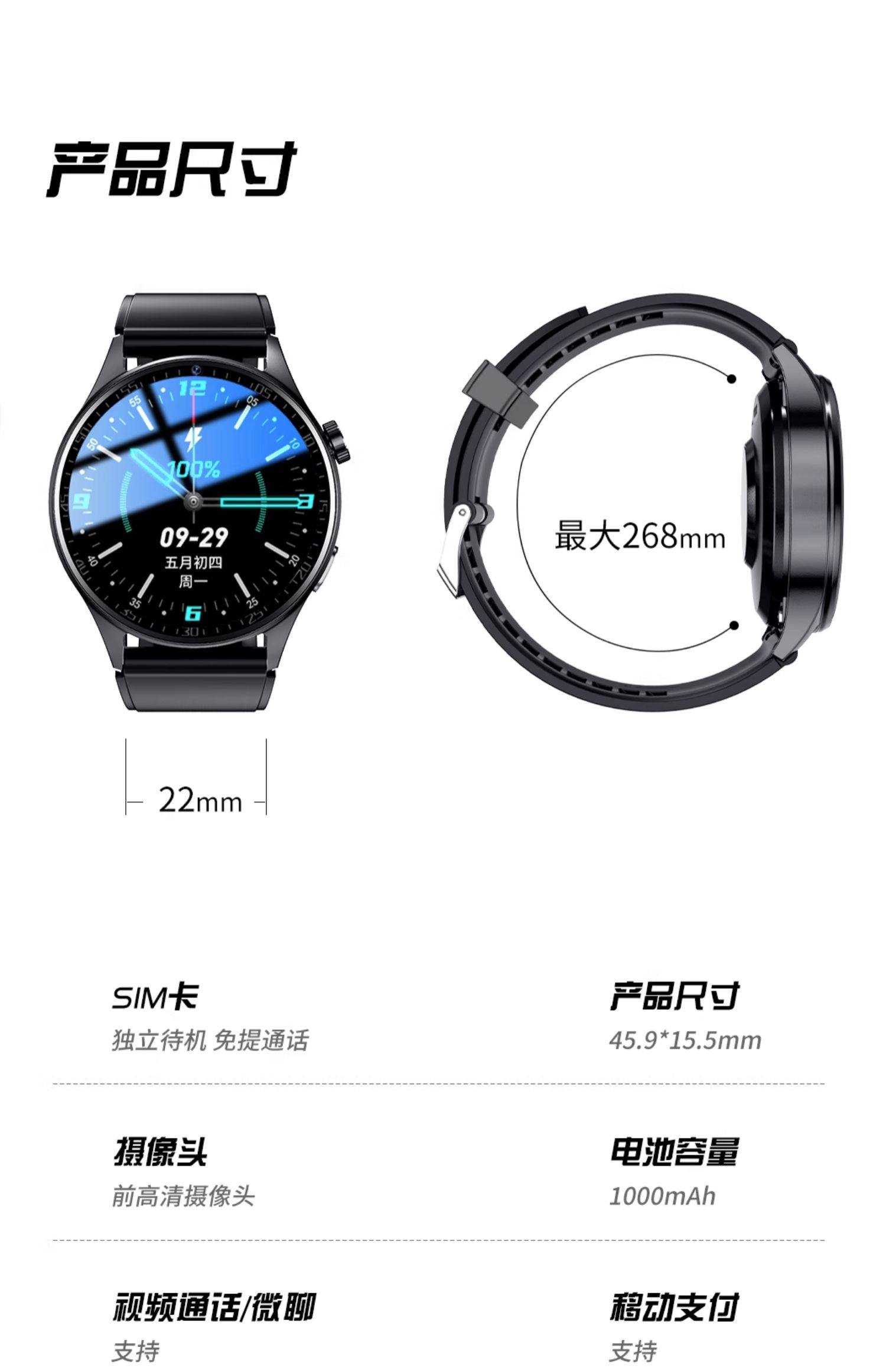 | Function | Take a Photo,Alarm Clock,Day of the Week Display,Video Call,Weather Forecast,Audio and Video Entertainment,App Can Be Downloaded,Social Entertainment,Waterproof |