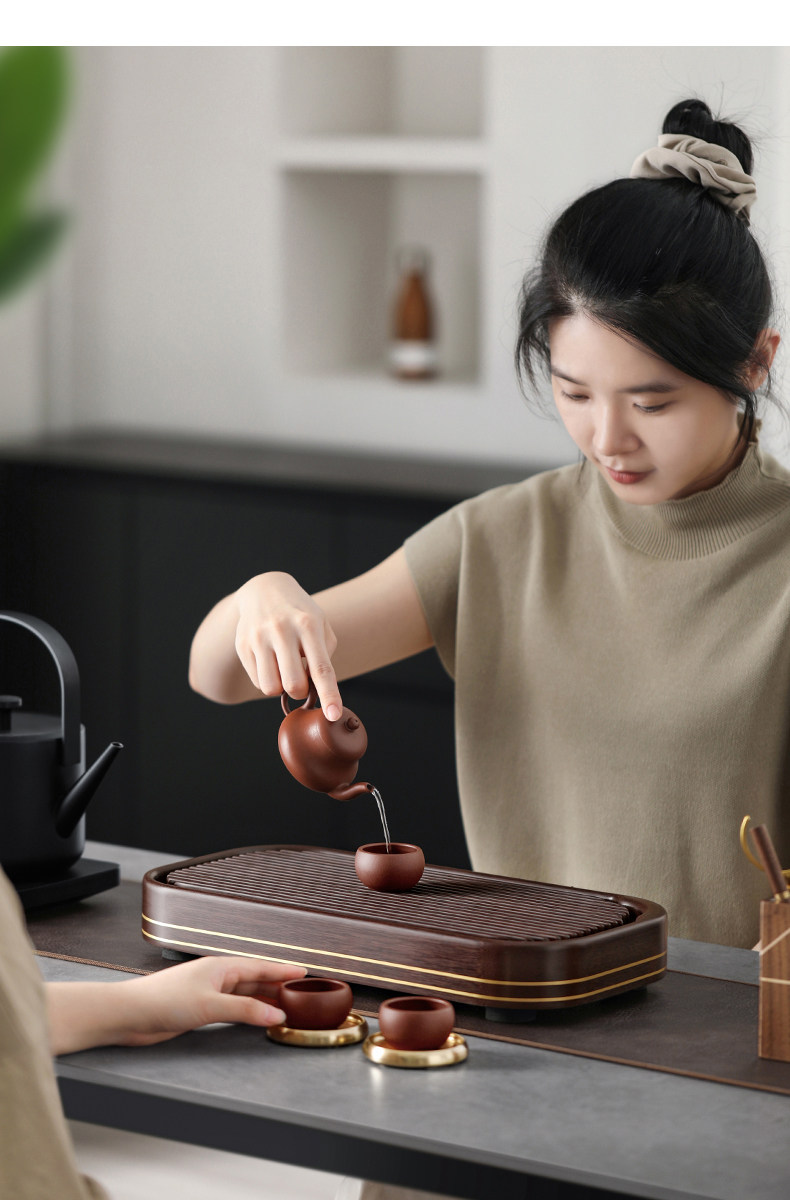 2025 New Model Small Electric Tea Tray for One Person, Dry Brewing Station for Living Room Home Use, Tea Sea Drainage Kung Fu Tea Table Tray