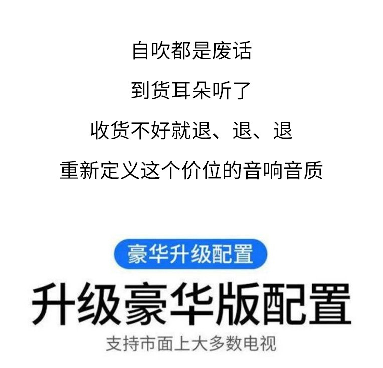 | Color Classification | 150 Yuan for the Champion [High-End 6-Unit Tv Soundbar 80cm Long with Bluetooth] Hd 2 Speakers + 4 Bass Diaphragms - G10,Top-Of-The-Line, Champion Soundbar with Bluetooth, under $400! [Premium Cinematic Matrix, 10-Driver Soundbar (10-Way)],30 Yuan Sound Quality Ceiling [Mini 2-Unit USB Wired Without Bluetooth Length 30cm] 2 Speakers + 2 Bass Ducts Without Bluetooth (Round),Bluetooth Mini Portable 3-Unit Speaker 1 Speaker + 2 Diaphragms Bluetooth 60 Yuan Champion [200Ma Battery] Rechargeable Card U Disk Aux (War Drum),Add to Favorites and Cart, and Enjoy 24-Hour Dispatch,【Japanese Finds】Japanese Tws True Wireless Bluetooth Earbuds Stereo Earphones with Microphone, Dual-Ear White Headphones,Micro Speaker Champion Sound Quality Without Bluetooth [Mini Version USB Wired Length 30cm] 1 Speaker + 1 Diaphragm (Micro |