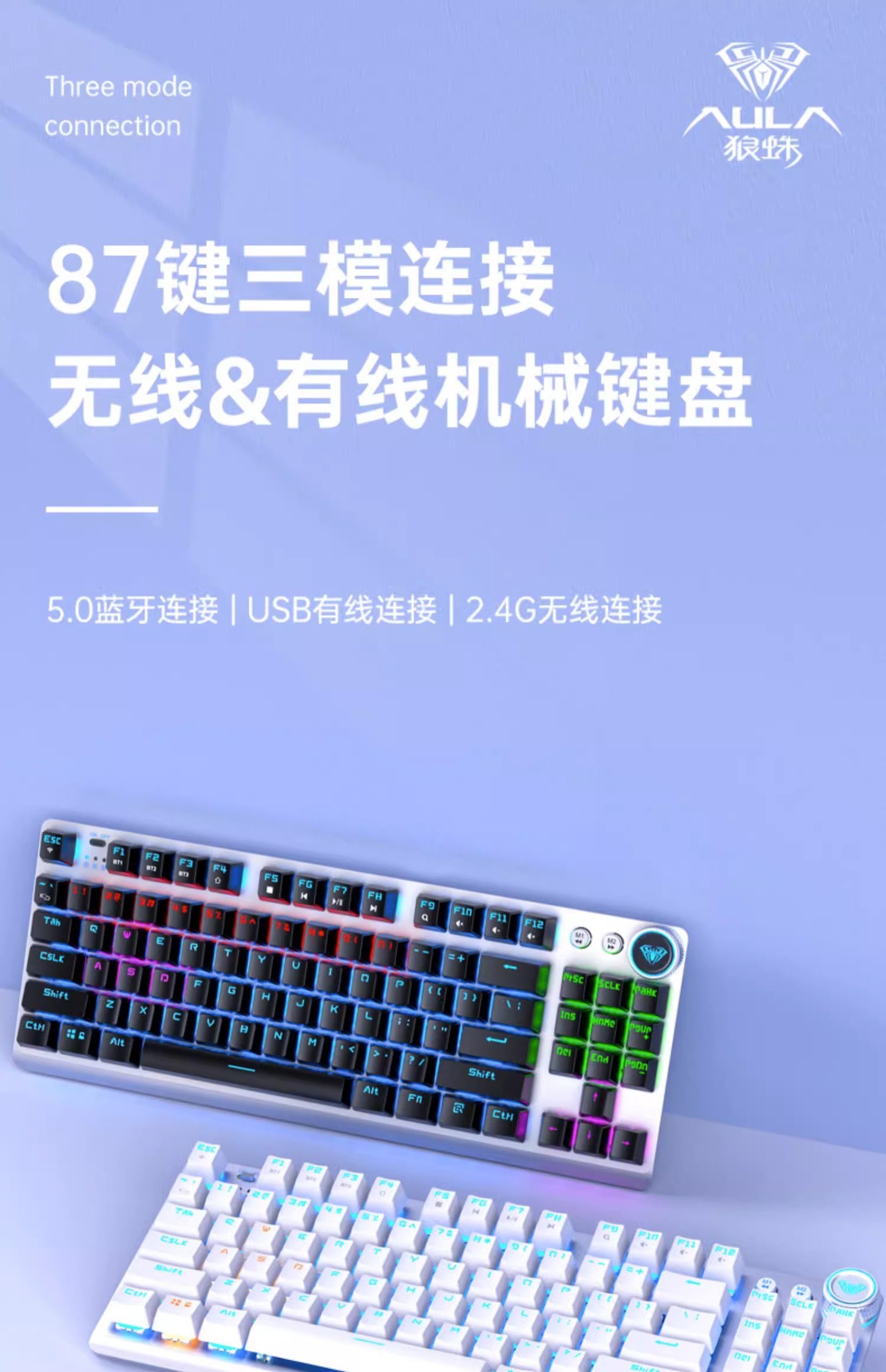 Wolf Spider F3001/F3009 Wireless Bluetooth Three-Mode Mechanical Keyboard for E-Sports Gaming and Office Desktop Notebook
