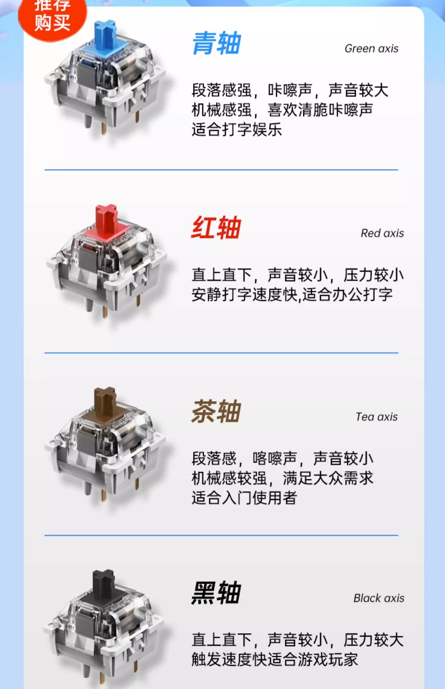 | Axis Name | Red Axis,Blue Axis,Black Axis,Tea Shaft |