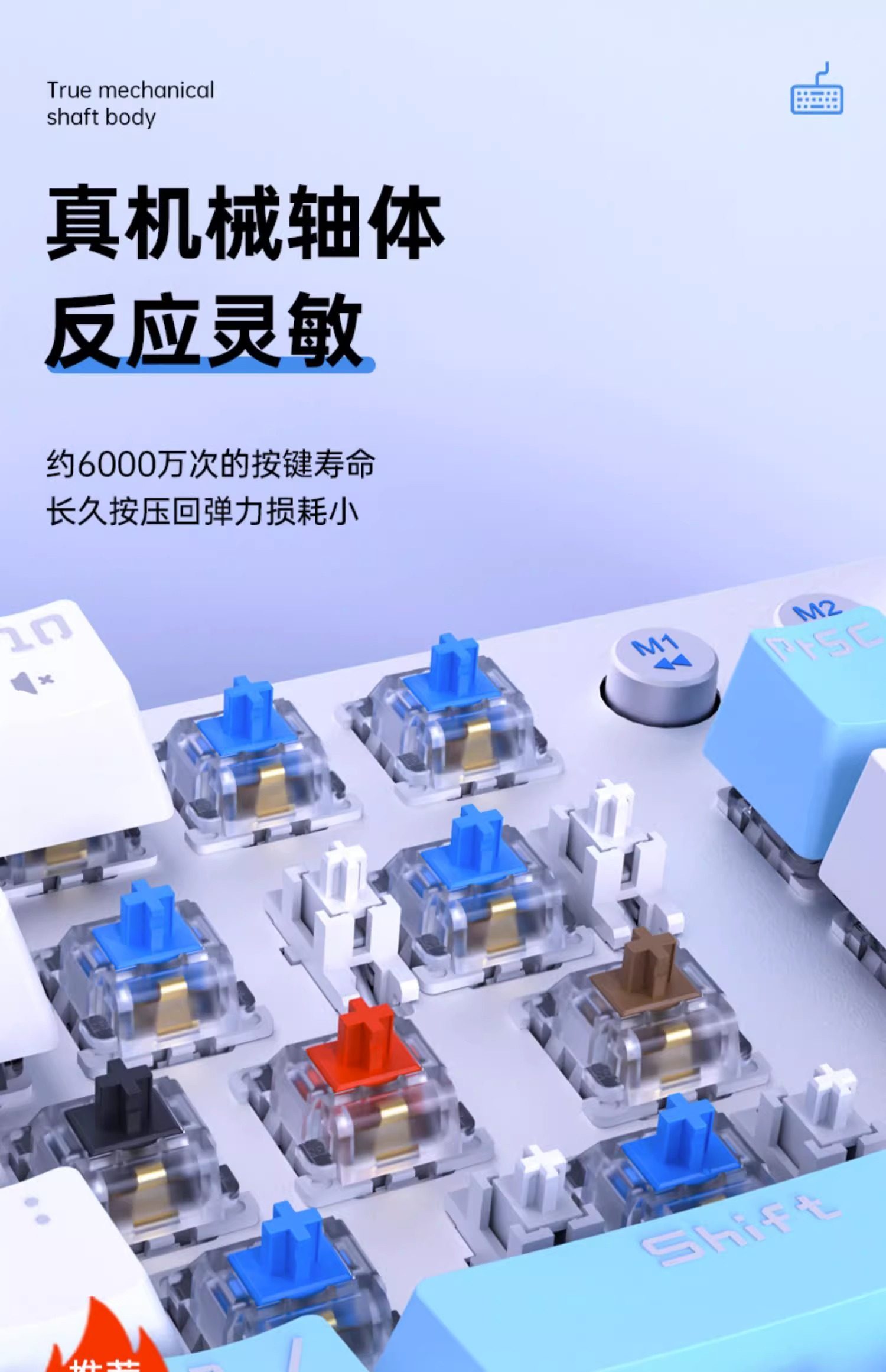 | Color Classification | Minimalist Gaming Bundle: [Full Set White Keycaps + Desk Mat],Minimalist Gaming Keyboard + Free Mouse [Full Set White Keycaps + Desk Mat],Minimalist Gaming + Mouse + Headphones Come with [Full Version of White Keycaps + Table Mat],White [Original Keycap],Black Pudding Comes with [Full-Page White Keycaps + Table Mat],Fenwuhai Gift [Full Page Complementary Keycaps + Table Mat],Blackcurrant Comes with [Full Page Complementary Keycaps + Table Mat],Lime Green Free [Full Version Complementary Keycaps + Table Mat],Yunduo Wangwang Gives Away [Full Page White Keycaps + Table Mat],Panda Mahjong Comes with [Full-Page White Keycaps + Table Mat],Flower Season Meow Meow Gives Away [Full-Page White Keycaps + Table Mat],Daiya Sugar Gift [Full Version White Keycaps + Table Mat],Xinghe Youmeng Gives Away [Full-Page White Keycaps + Table Mat],Bread Bear Comes with [Full-Page White Keycaps + Table Mat],Music Party Gift: [Full Set White Keycaps + Desk Mat],Lower Lamp Position - Side Engraved Gradient Purple [Original Keycap] Free Table Mat,Lower Lamp Position - Side Engraved Gradient Gray [Original Keycap] Free Table Mat,Black Pudding + Mouse Free [Full Version White Keycaps + Table Mat],Blackcurrant + Mouse Bundle: [Full Set of Complementary Keycaps + Desk Mat],Lime Green + Mouse Gift [Full Version Complementary Keycaps + Table Mat],Pink Mist Sea + Mouse Gift [Full Version Complementary Keycaps + Table Mat],Cloud Woof + Mouse Gift: [Full Set White Keycaps + Desk Mat],Panda Mahjong + Mouse Free [Full Version White Keycaps + Table Mat],Flower Season Meow + Mouse Free [Full Version White Keycaps + Table Mat],Big Bud Sugar + Mouse Gift [Full Version White Keycaps + Table Mat],Bread Bear + Mouse Free [Full Version White Keycaps + Table Mat],Gray Trace Island + Free Mouse [Full Version White Keycaps + Desk Mat],Taro Bear + Mouse Free [Full Version White Keycaps + Table Mat],Music Party + Mouse Gift [Full Set White Keycaps + Desk Mat],Black Pudding + Mouse + Headphones Come with [Full Version of White Keycaps + Table Mat],Lime Green + Mouse + Headphones Come with [Full Version Complementary Keycaps + Table Mat],Pink Mist Sea + Mouse + Headphones Free [Full Version Complementary Keycaps + Table Mat],Blackcurrant + Mouse + Headphones Bundle: [Full Set of Complementary Keycaps + Desk Mat],Cloud Woof + Mouse + Headphones Bundle [Full Set White Keycaps + Desk Mat],Flower Season Meow Meow + Mouse + Headphones Free [Full Version White Keycaps + Table Mat],Panda Mahjong + Mouse + Headphones Free [Full Version White Keycaps + Table Mat],Taro Bear + Mouse + Headphones Free [Full Version White Keycaps + Table Mat],Bread Bear + Mouse + Headphones Free [Full Version White Keycaps + Table Mat],Big Bud Sugar + Mouse + Headphones Come with [Full Version White Keycaps + Table Mat],Gray Trace Island + Mouse + Headphones Free [Full Version White Keycaps + Table Mat],Xinghe Youmeng + Mouse + Headphones Come with [Full Version White Keycaps + Table Mat],Music Party + Mouse + Headphones Free [Full Version White Keycaps + Table Mat],Contour Black Gift [Full Version White Keycaps + Table Mat],White Pudding Keyboard + Mouse + Headset Bundle [Free Full Set White Keycaps + Desk Mat] |