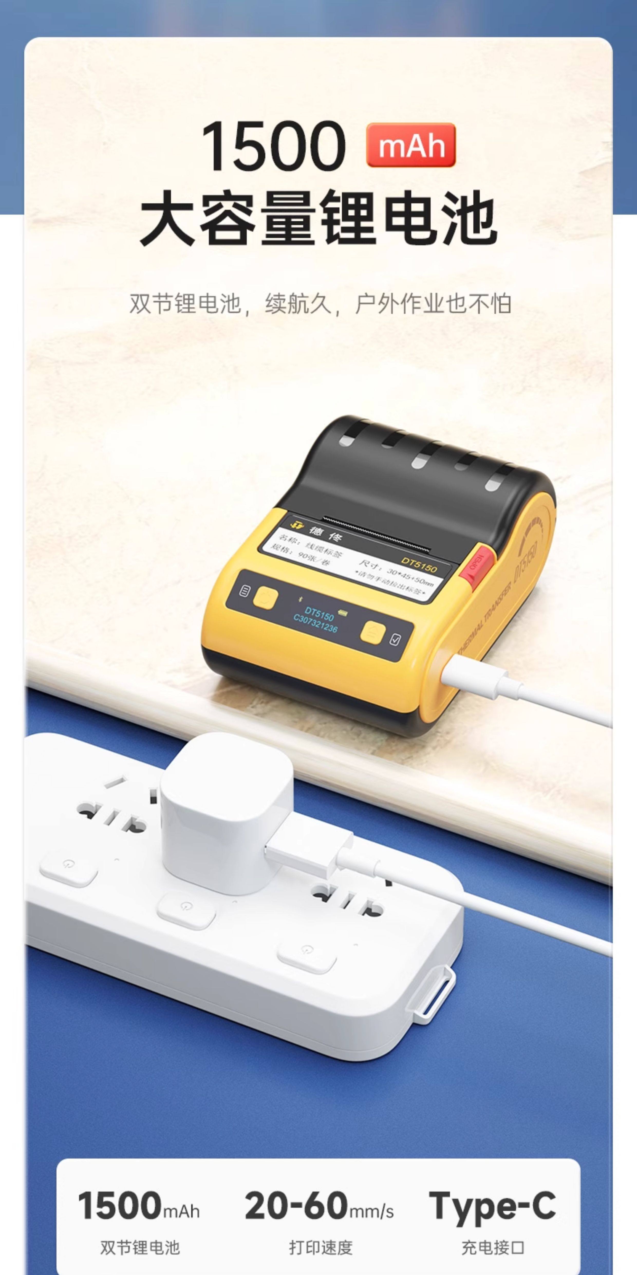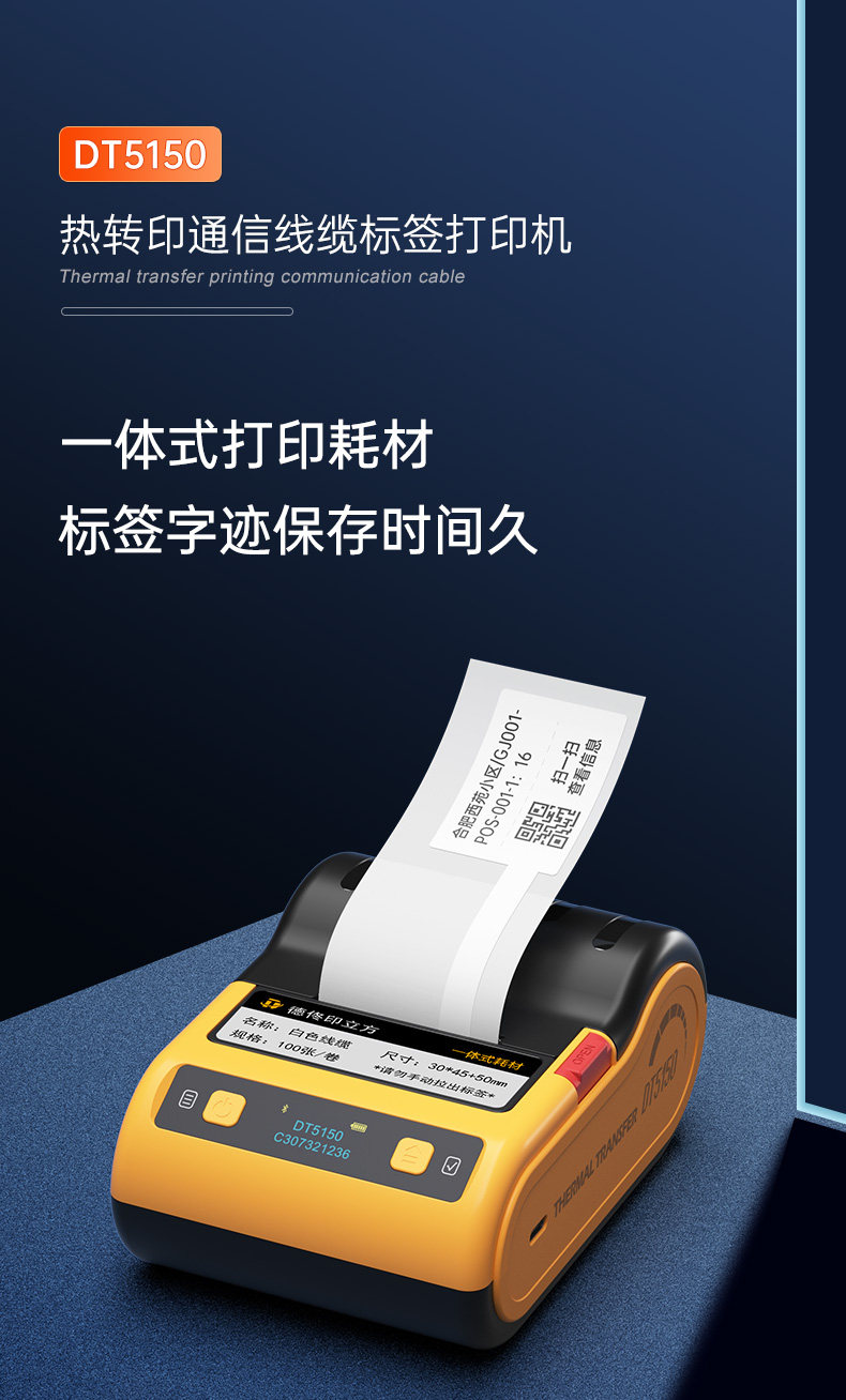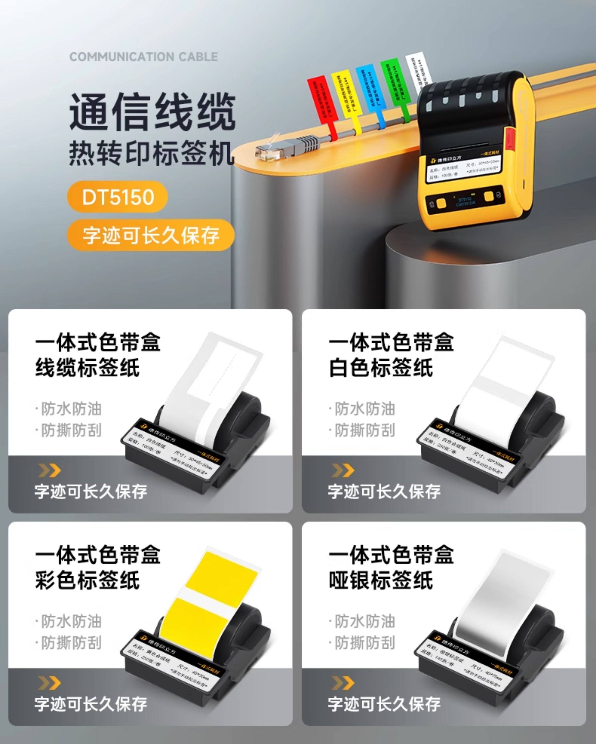 Detong Yinchuang Dt5150 Thermal Transfer Communication Room Cable Label Printer Handheld Small Bluetooth Portable Engineering Equipment Knife-Type Fiber Optic Cabling Wire Network Adhesive Tape