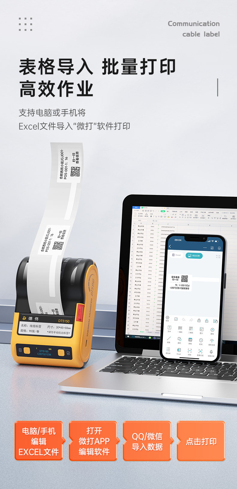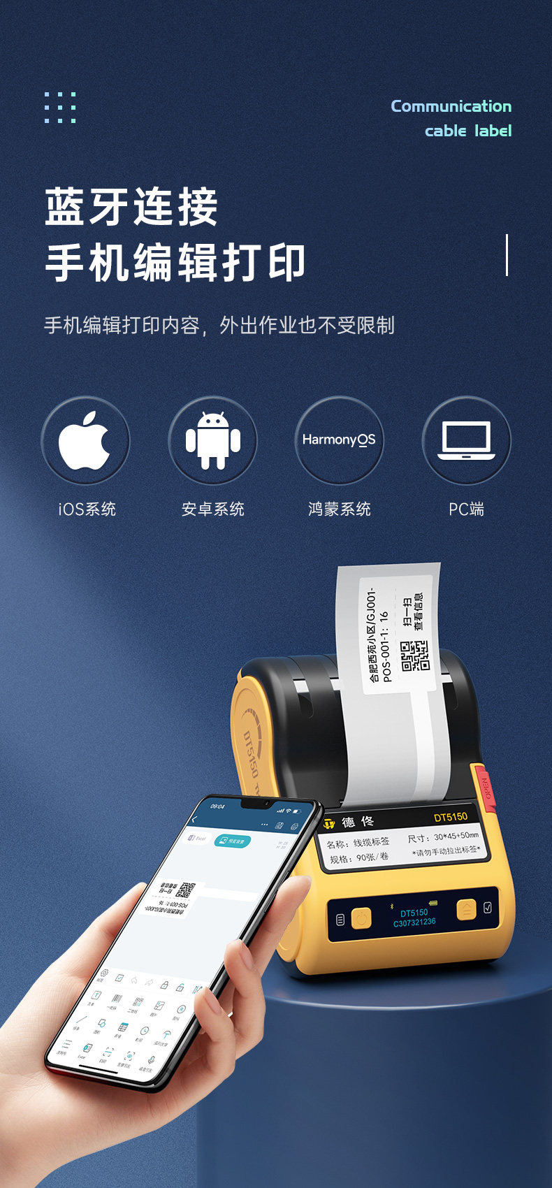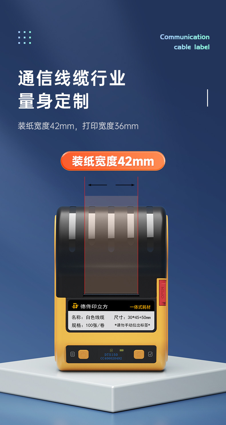 Detong Yinchuang Dt5150 Thermal Transfer Communication Room Cable Label Printer Handheld Small Bluetooth Portable Engineering Equipment Knife-Type Fiber Optic Cabling Wire Network Adhesive Tape