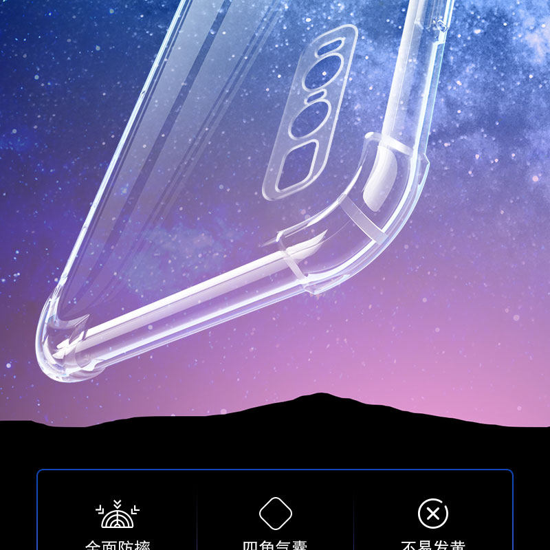 Rubang Four-Corner Anti-Fall Airbag Protective Case Suitable for Oppo Findx2Pro Silicone Mobile Phone Case Findx2 All-Inclusive Ultra-Thin Soft Edge Transparent Thickeneded Lens Men and Women New Stylish Simple and Creative