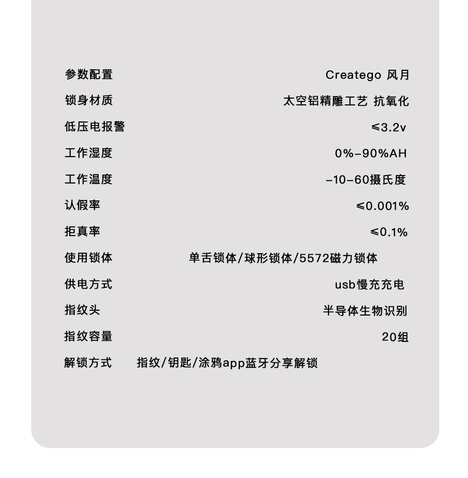 | Unlocking Method | Fingerprint Lock |