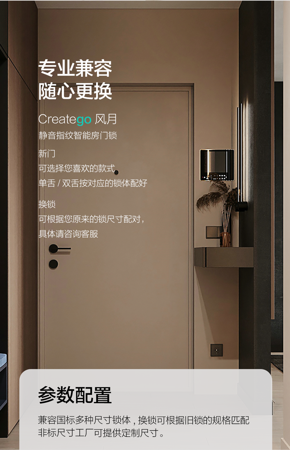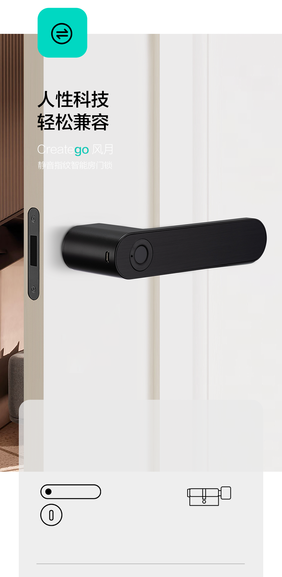 Indoor Wooden Door Fingerprint Lock, Bedroom Door Smart Lock, Home Office Electronic Lock, Replaceable Ball Lock