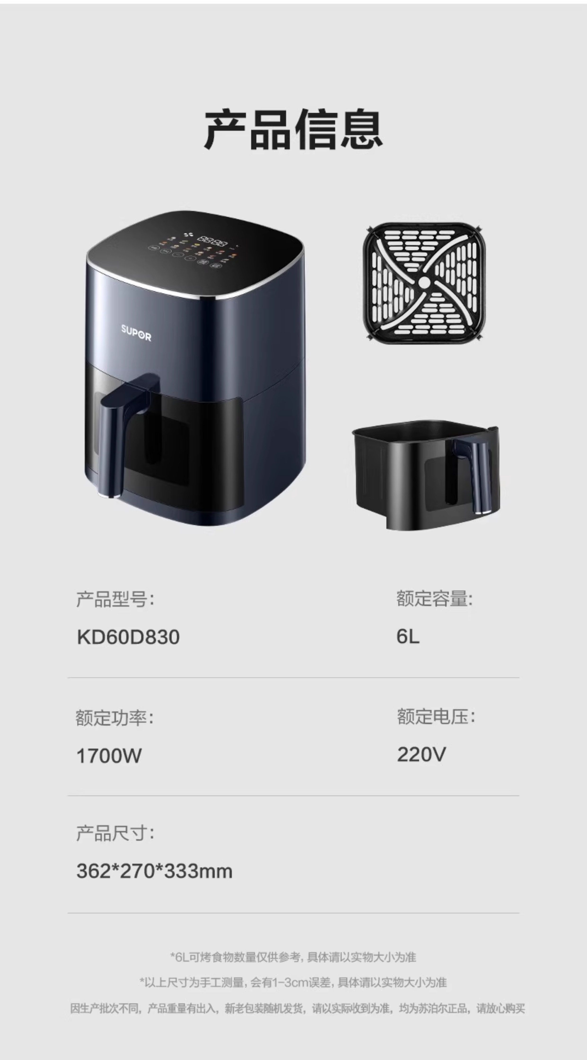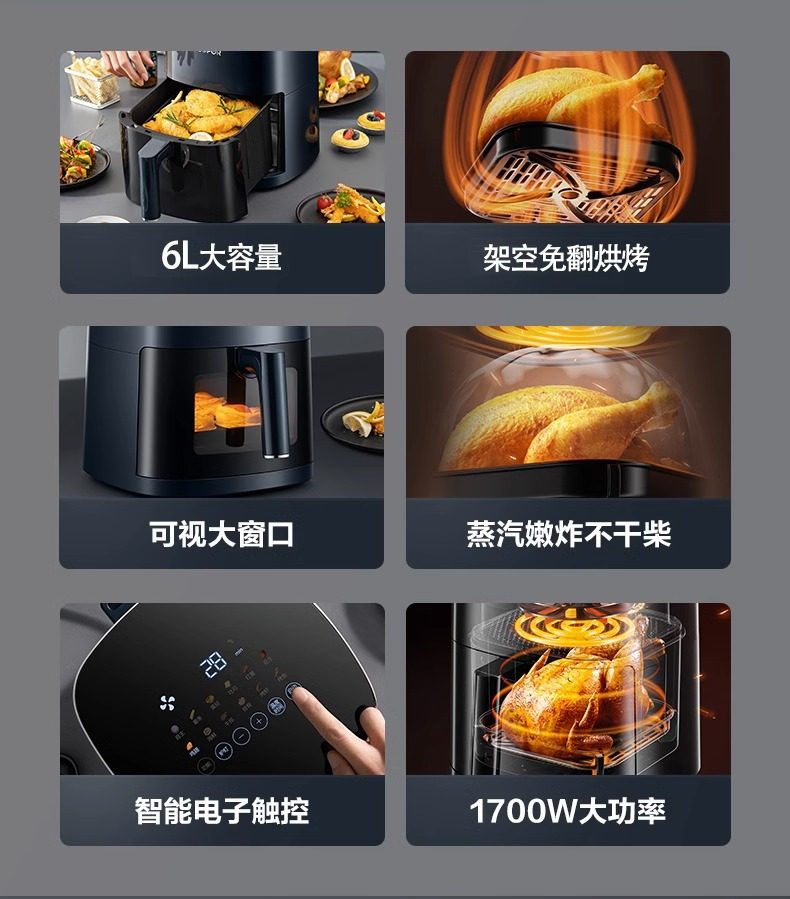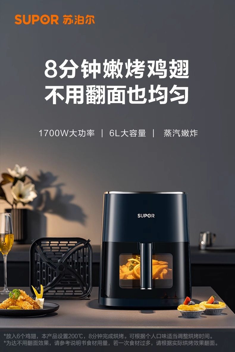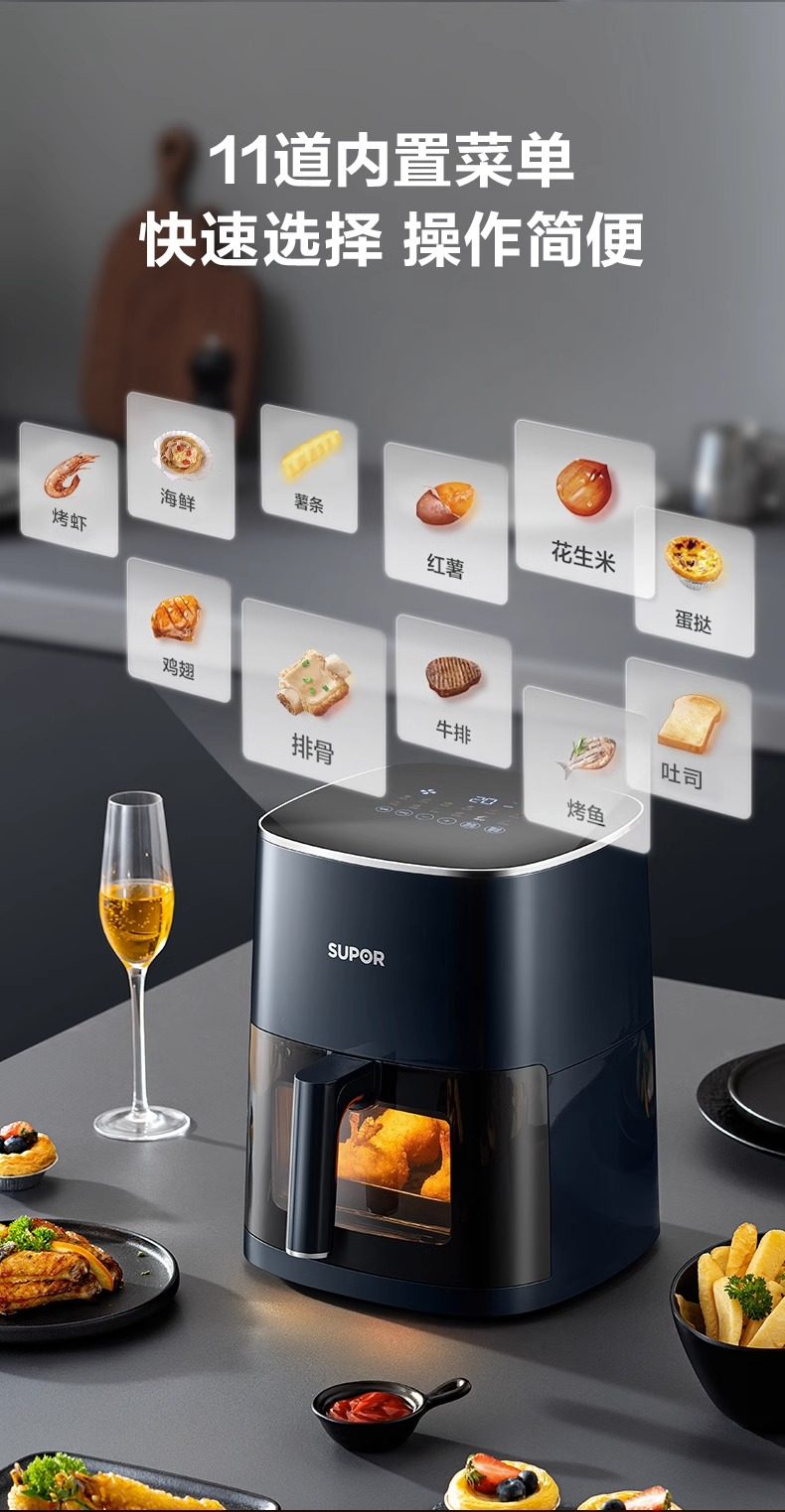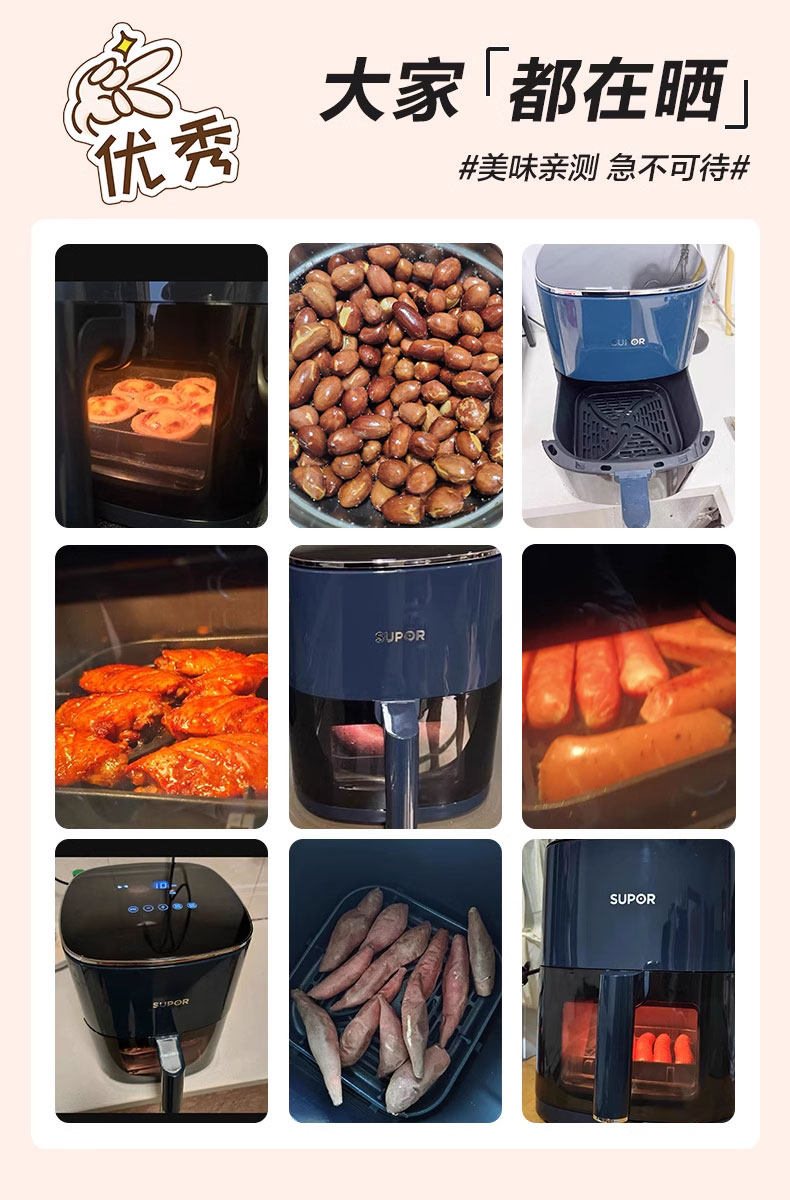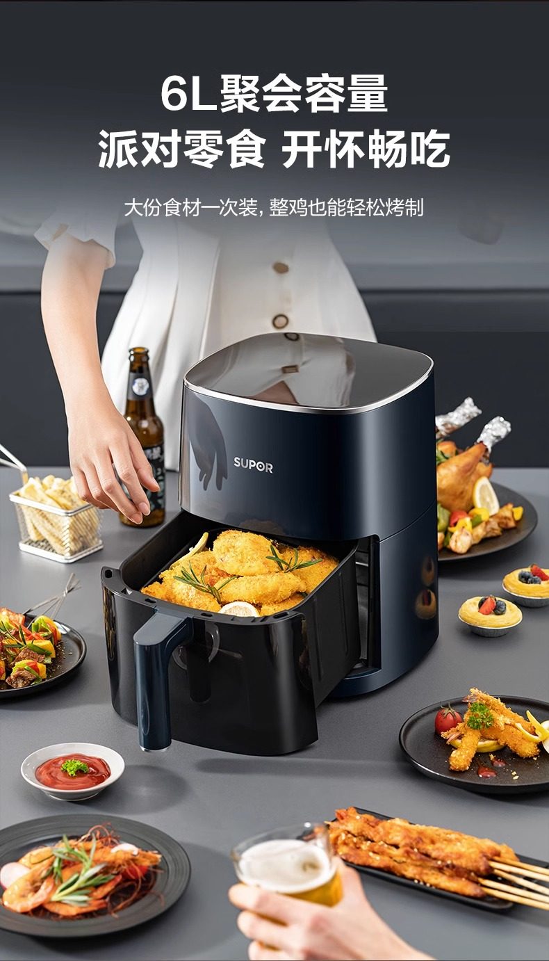 Supor Air Fryer Home Use 2025 New Model Official Flagship Intelligent Visual Multi-Function Large Capacity Electric Fryer