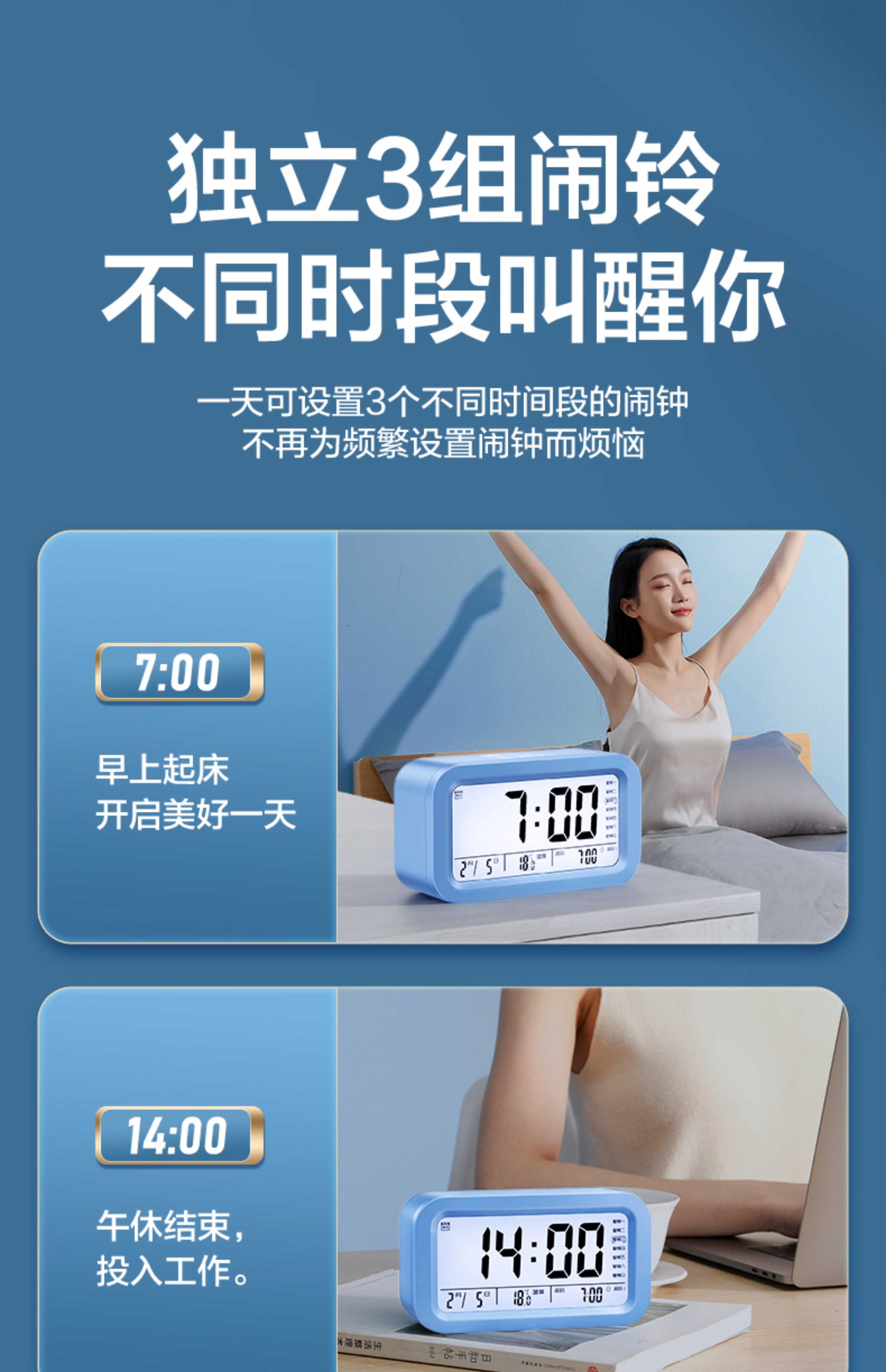 | Color Classification | [Exclusive for Favorites and Purchases]Free Replacement if Broken Within 5 Years,[Fast Delivery Next Day]Rapid Delivery, Slow Delivery Will Be Compensated.,[Award-Winning New Products]Won Multiple Awards at Home and Abroad,♥♥↓↓The Following Is the Button Type↓↓♥♥,⏰Battery Model-White[Smart Voice Broadcast★Lcd Large Screen★3 Sets of Alarms]-Send Battery,⏰Battery Operated - Blue[Smart Voice Broadcast★Lcd Large Screen★3 Sets of Alarms]-Send Battery,⏰Battery Model-Green[Smart Voice Broadcast★Lcd Large Screen★3 Sets of Alarms]-Send Battery,⏰Battery Model-Pink[Smart Voice Broadcast★Lcd Large Screen★3 Sets of Alarms]-Send Battery,♻ Rechargeable Model-White[Smart Voice Broadcast★Lcd Large Screen★3 Sets of Alarms]-Long Battery Life,♻ Rechargeable Model-Blue[Smart Voice Broadcast★Lcd Large Screen★3 Sets of Alarms]-Long Battery Life,♻ Rechargeable Model-Green[Smart Voice Broadcast★Lcd Large Screen★3 Sets of Alarms]-Long Battery Life,♻ Rechargeable Model-Pink[Smart Voice Broadcast★Lcd Large Screen★3 Sets of Alarms]-Long Battery Life,♥♥↓↓The Following Is the Touch Version↓↓♥♥,⏰Touch Battery Model-White[Long Standby★Adjustable Volume★Silent When Walking]-Send Battery,⏰Touch Battery Model-Blue[Long Standby★Adjustable Volume★Silent When Walking]-Send Battery,⏰Touch Battery Model-Green[Long Standby★Adjustable Volume★Silent When Walking]-Send Battery,⏰ Touch Battery Model-Pink[Long Standby★Adjustable Volume★Silent When Walking]-Send Battery,♻ Touch Charging Model-White[Long Standby★Adjustable Volume★Silent When Walking]-Loud Volume,♻ Touch Charging Model-Blue[Long Standby★Adjustable Volume★Silent When Walking]-Loud Volume,♻ Touch Charging Model-Green[Long Standby★Adjustable Volume★Silent When Walking]-Loud Volume,♻ Touch Charging Model-Pink[Long Standby★Adjustable Volume★Silent When Walking]-Loud Volume,♥♥↓Alarm Clock with Timer Function↓♥♥,⏰Ninth Generation-Battery Model-White[Count Up/Count down★Vibration Reminder★Touch Sensor],⏰Ninth Generation-Battery Model-Green[Count Up/Count down★Vibration Reminder★Touch Sensor],⏰Ninth Generation-Battery Model-Pink[Count Up/Count down★Vibration Reminder★Touch Sensor],♻ Ninth Generation-Rechargeable Model-White[Count Up/Count down★Vibration Reminder★Touch Sensor],♻ Ninth Generation-Rechargeable Model-Green[Count Up/Count down★Vibration Reminder★Touch Sensor],♻ Ninth Generation-Rechargeable Model-Pink[Count Up/Count down★Vibration Reminder★Touch Sensor] |