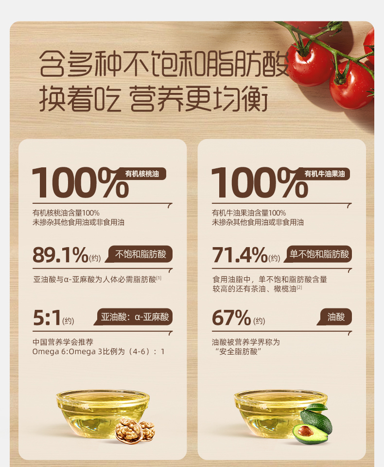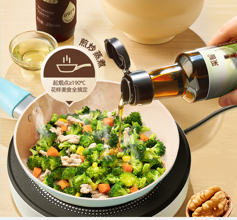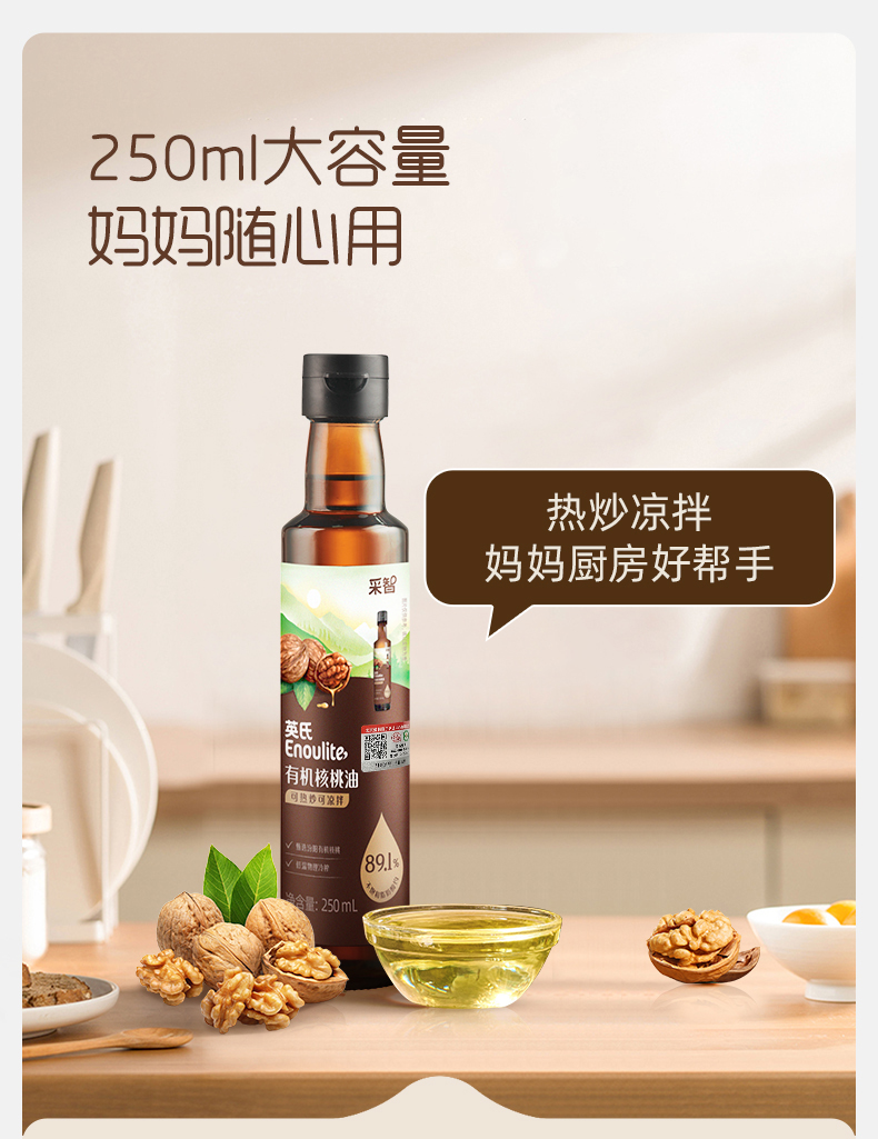 | Edible Oil Type | [2 Large Bottles - Organic Walnut Aroma] Organic Walnut Oil 250ml*2,[2 Large Bottles - Can Be Cold or Stir-Fried] Organic Walnut Oil 250Ml*1+Organic Avocado Oil 250m*1,[2 Large Bottles - Buttery Fragrance] Organic Avocado Oil 250ml*2,[3 Bottles - Cold and Hot Stir-Fry] Organic Walnut Oil 110Ml*2+Organic Walnut Oil 250ml*1,【Large Bottle for Cold & Hot Cooking】Organic Walnut Oil 250ml |