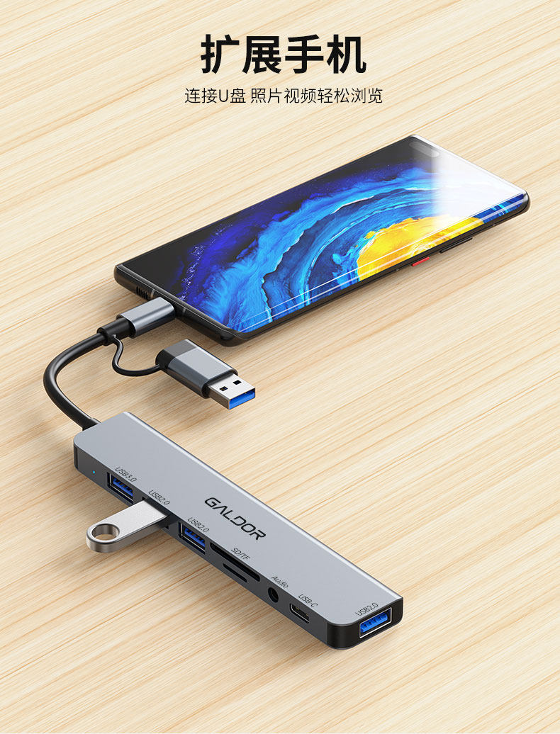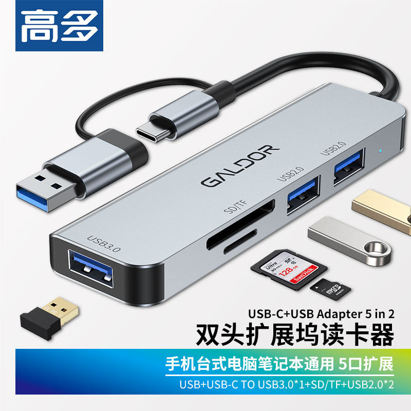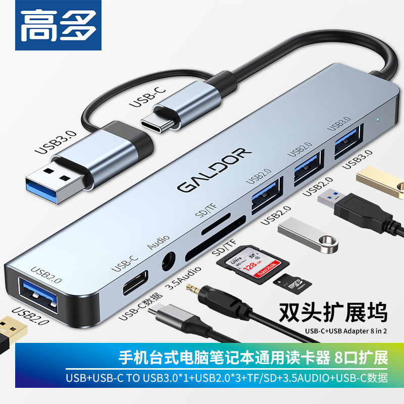 Gao Duo Dual-Head Docking Station Hub Card Reader Typec Mobile Phone Laptop Tablet USB Multi-Interface 3.5mm