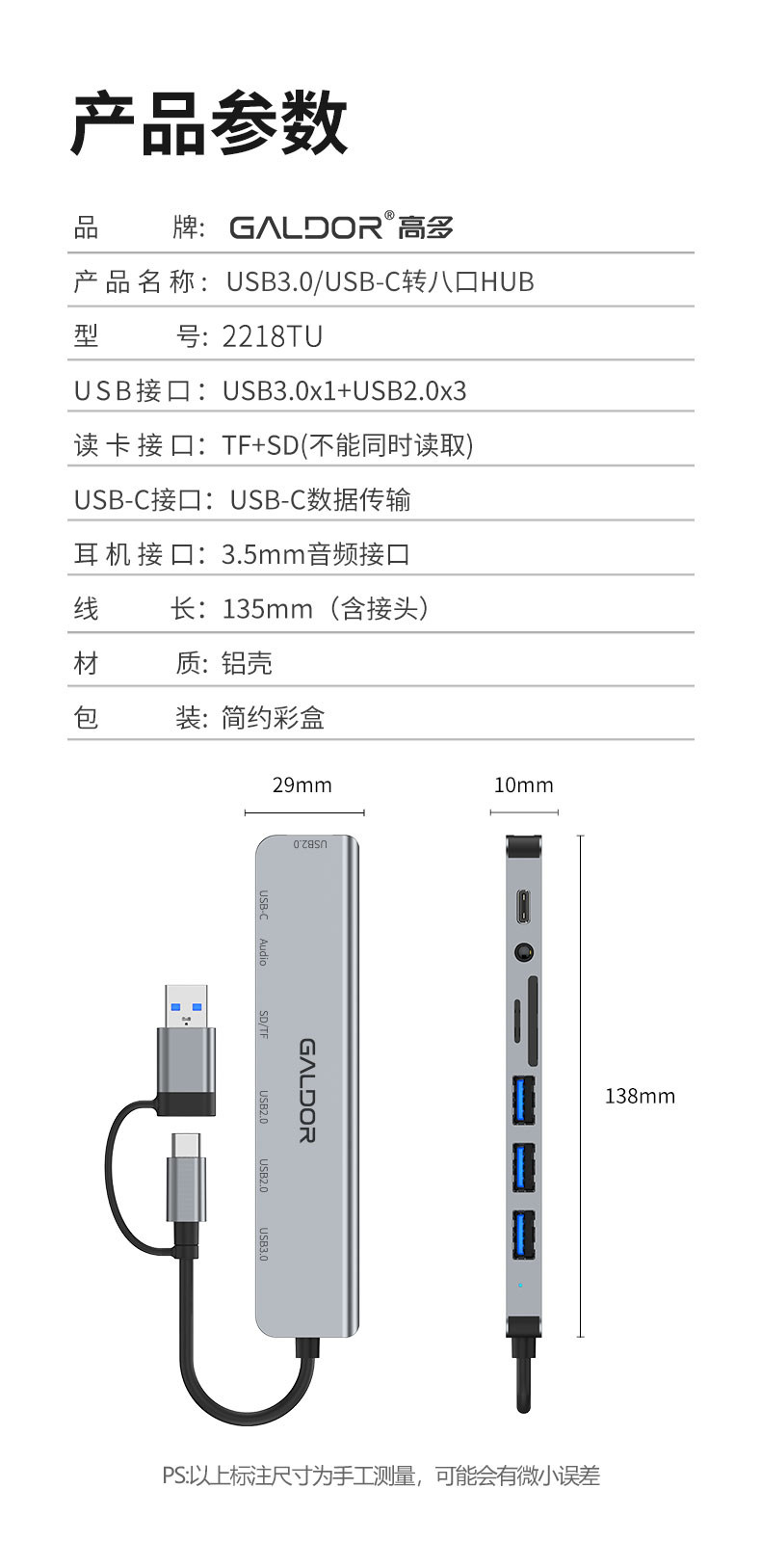 | Color Classification | Dual-Head 8-Port Expansion[2218TU],Dual-Head 7-Port Expansion[2217TU],Dual-Head 5-Port Expansion[2103TU],Dual-Head 4-Port Full Usb3.0HUB[2013TU3],Dual-Head 4-Port USB Hub[2013TU],Type-C to 4-Port Usb+Pd Charging[Charge and Use 2301] |