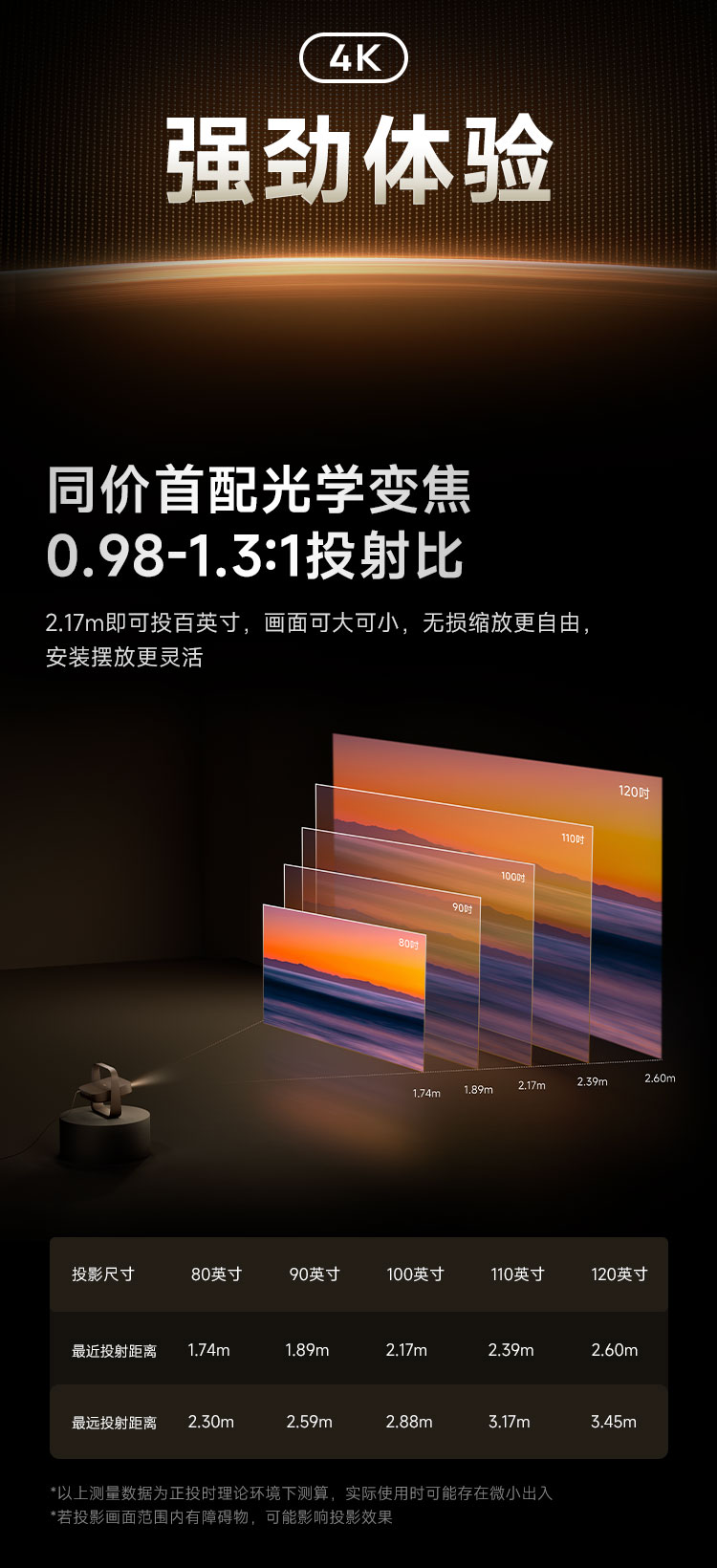 | The Best Projection Distance | 2.5m |
