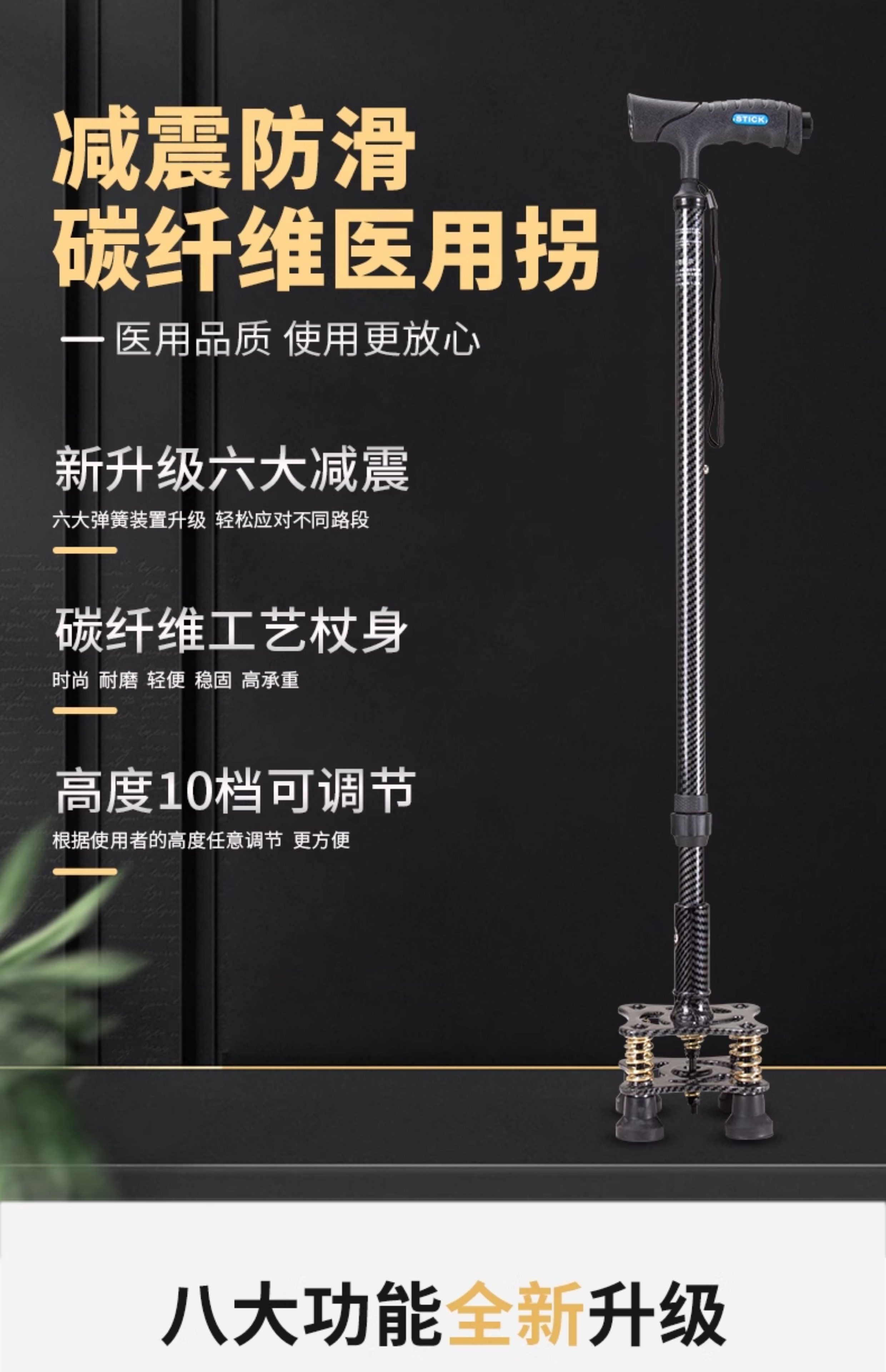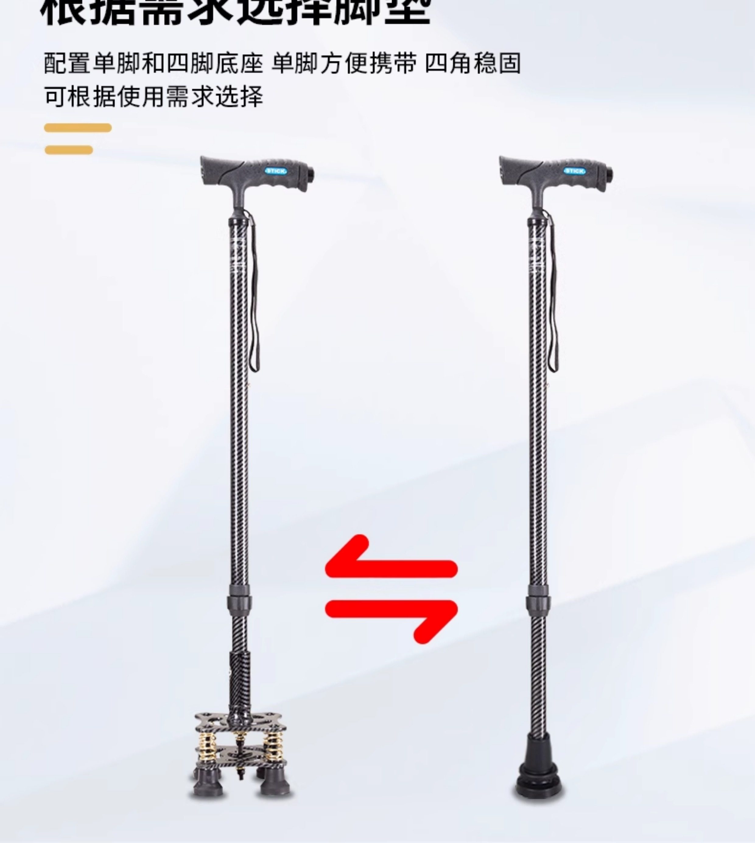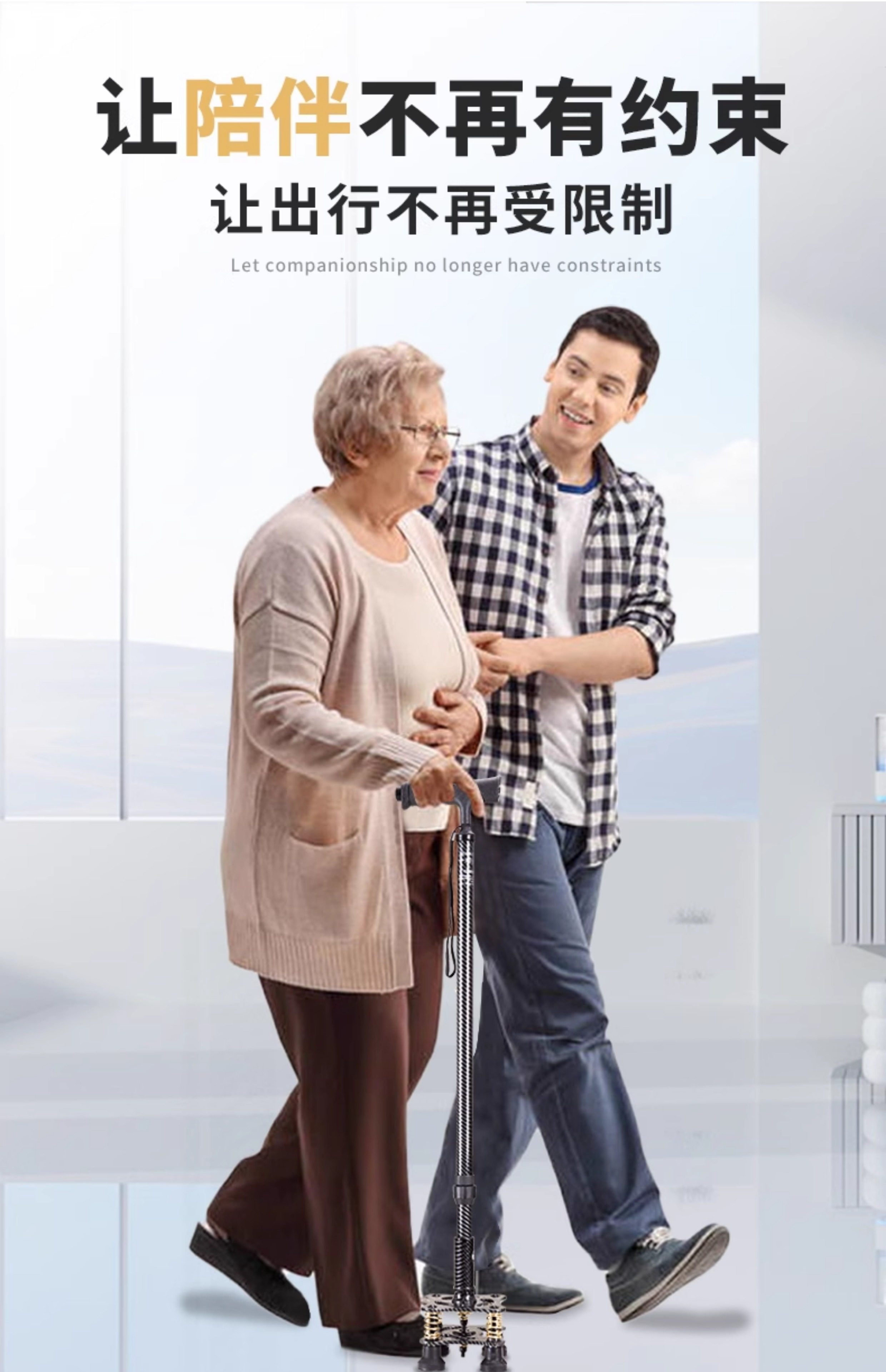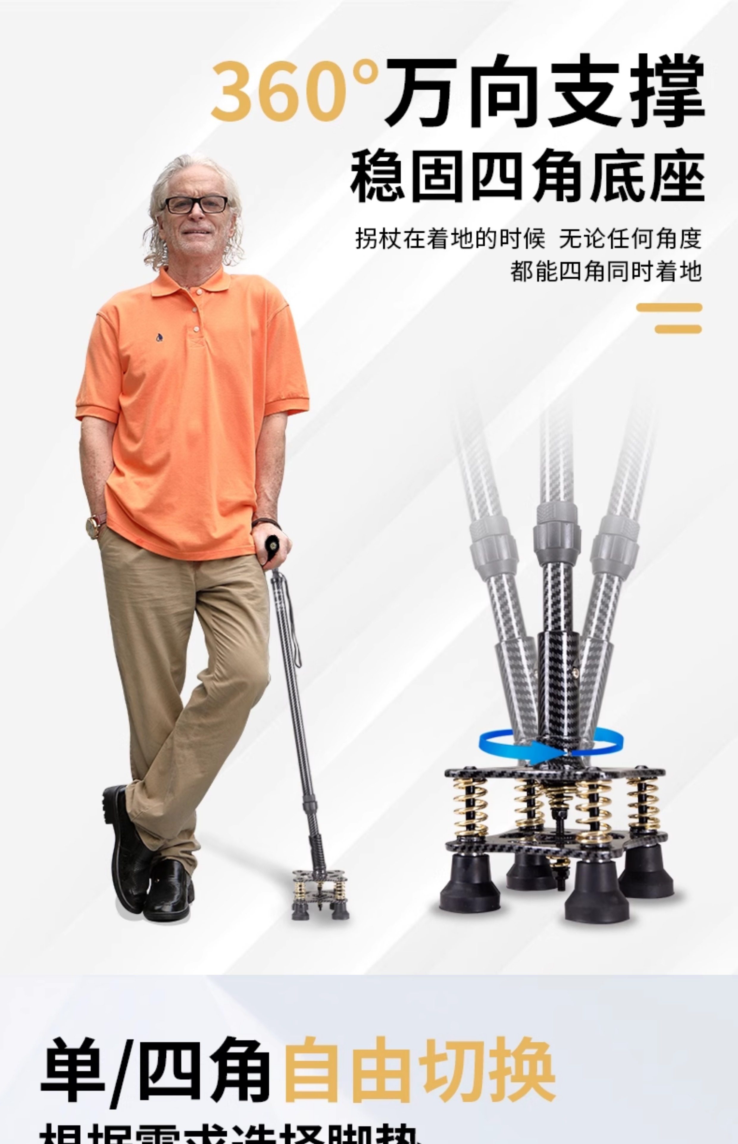Cane for the Elderly, Non-Slip, Four-Legged, Lightweight, Special for the Elderly, Telescopic, Four-Legged, Aluminum Alloy, Shock-Absorbing Walking Stick, Anti-Fall Cane