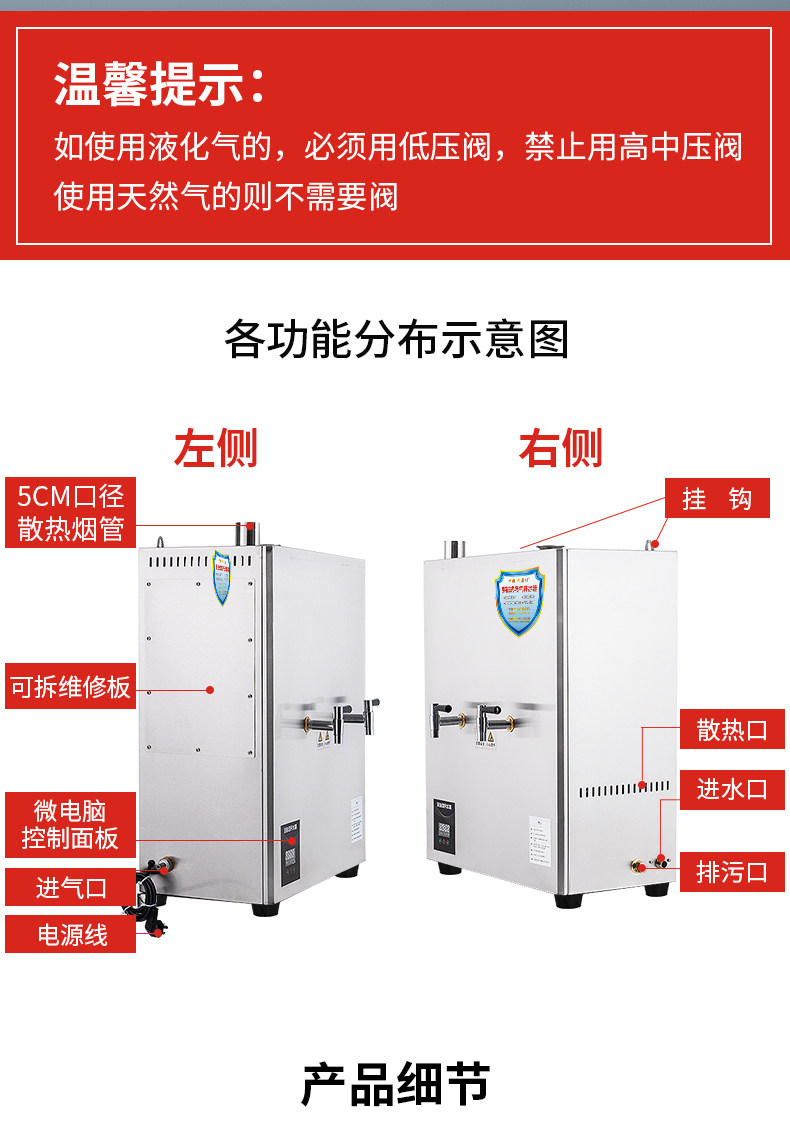 | Color Classification | 30L Step-By-Step Natural Gas,30L Step Type (High Tripod) Natural Gas,70L Natural Gas Water Heater,100L Natural Gas Water Heater,150L Natural Gas Water Heater,30L Step-By-Step Liquefied Gas,30L Step Type (High Tripod) Liquefied Gas,70L Liquefied Gas Water Boiler,100L Liquefied Gas Water Boiler,150L Liquefied Gas Water Boiler,Electric Heating 30L Ordinary Model,Electric Heating 30L Thermal Insulation Model,Electric Heating 60L Thermal Insulation Model,Electric Heating 90L Thermal Insulation Model,Electric Heating 120L Thermal Insulation Model,Electric Heating 60L Ordinary Model + Base,Electric Heating 90L Ordinary Model + Base,Electric Heating 120L Ordinary Model + Base,Electric 60L Insulated Food Warmer with Base,Electric 90L Insulated Food Warmer with Base,Electric Heating 120L Thermal Insulation Model + Base,Tai Bar Water Boiler Silver 2Kw220V,Black Countertop Water Boiler, 2Kw, 220V,Water Boiler |