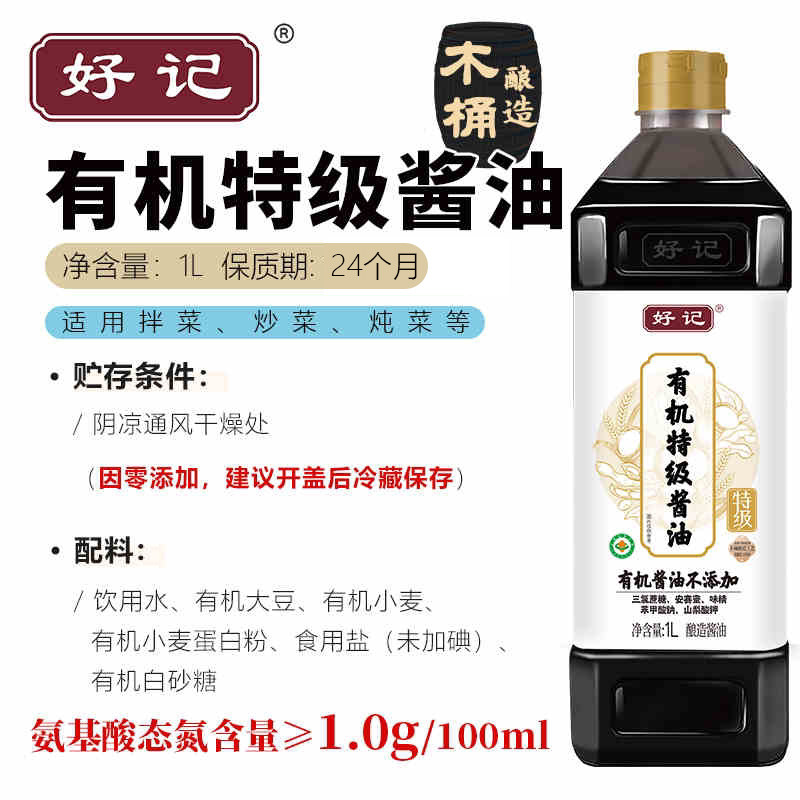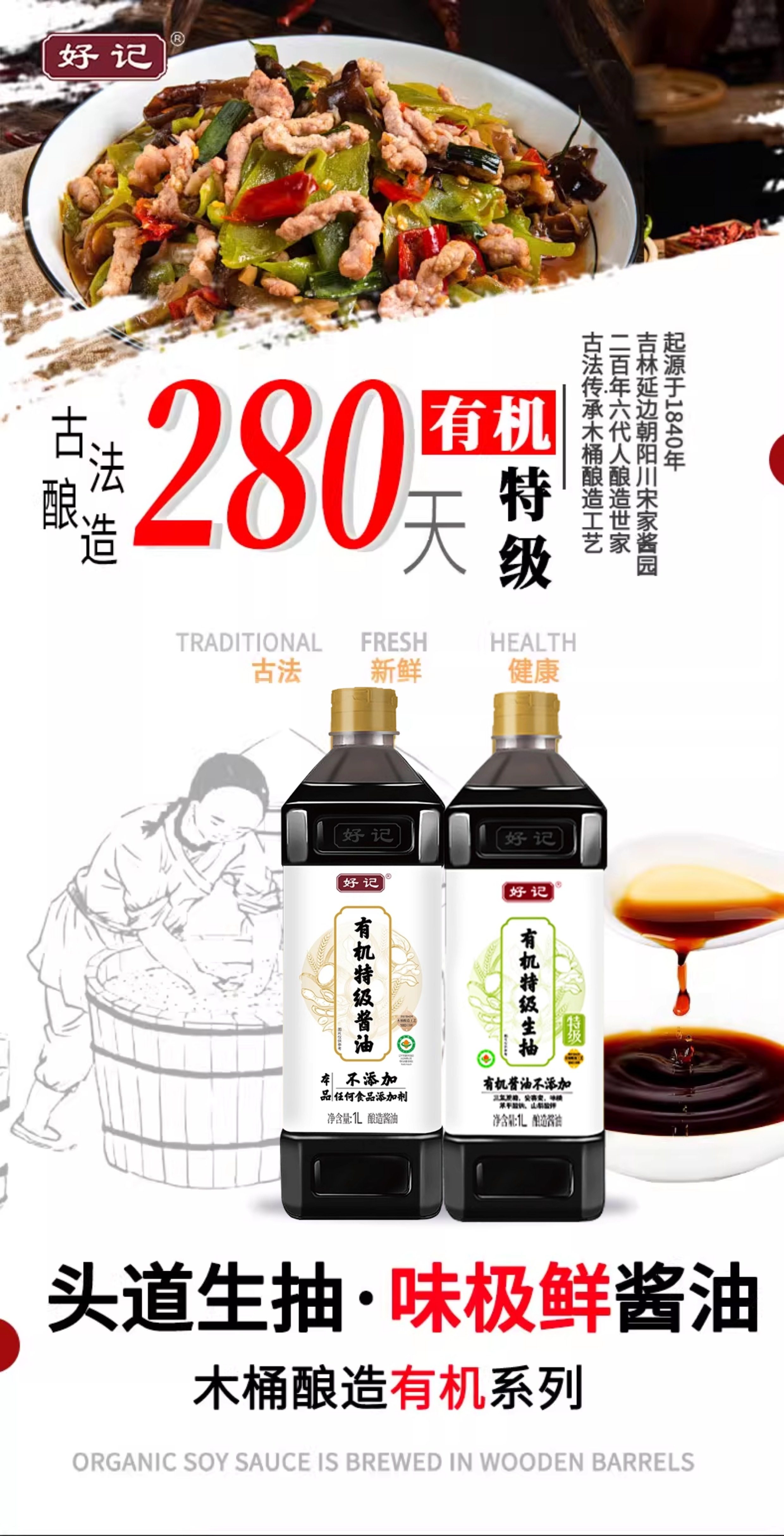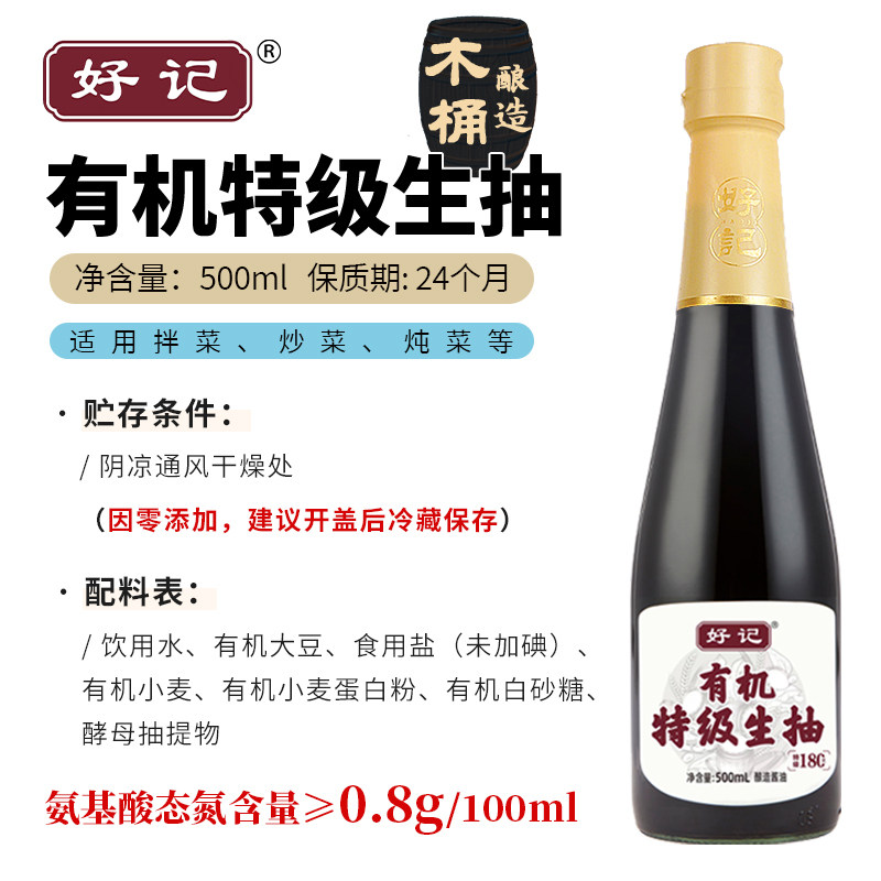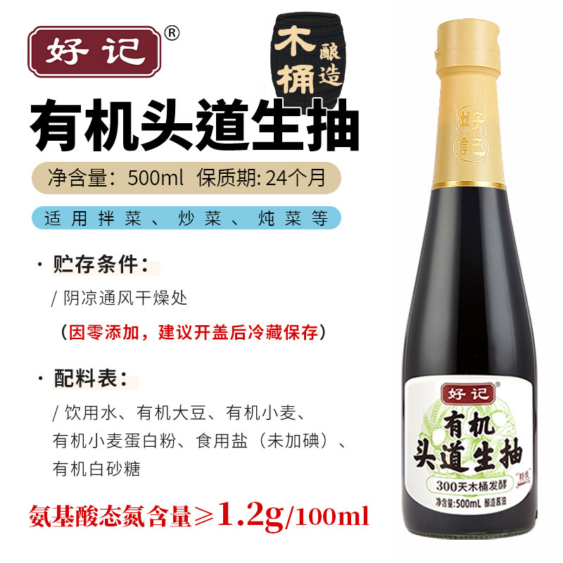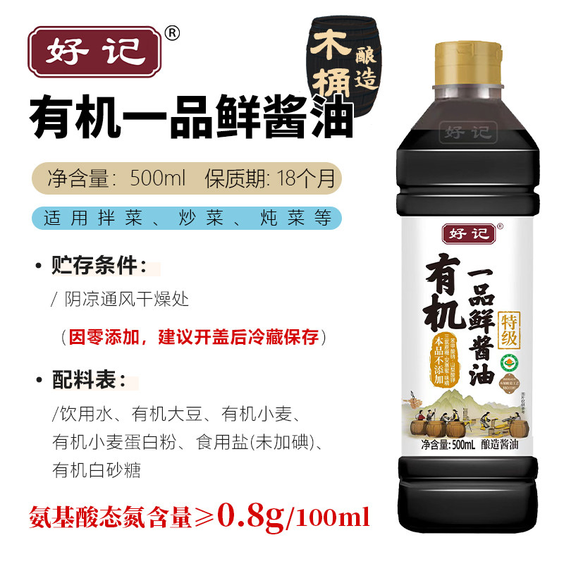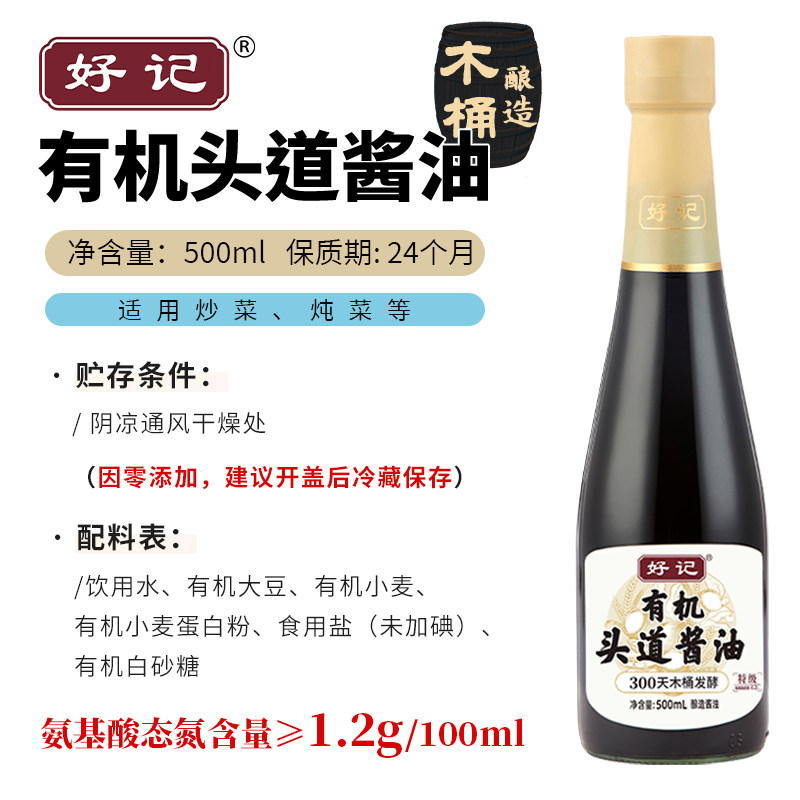 Haoji Organic Soy Sauce Zero Additives Premium First-Grade Light Soy Sauce Songjia Sauce Garden Naturally Brewed in Wooden Barrels Time-Honored Brand 0 Additives
