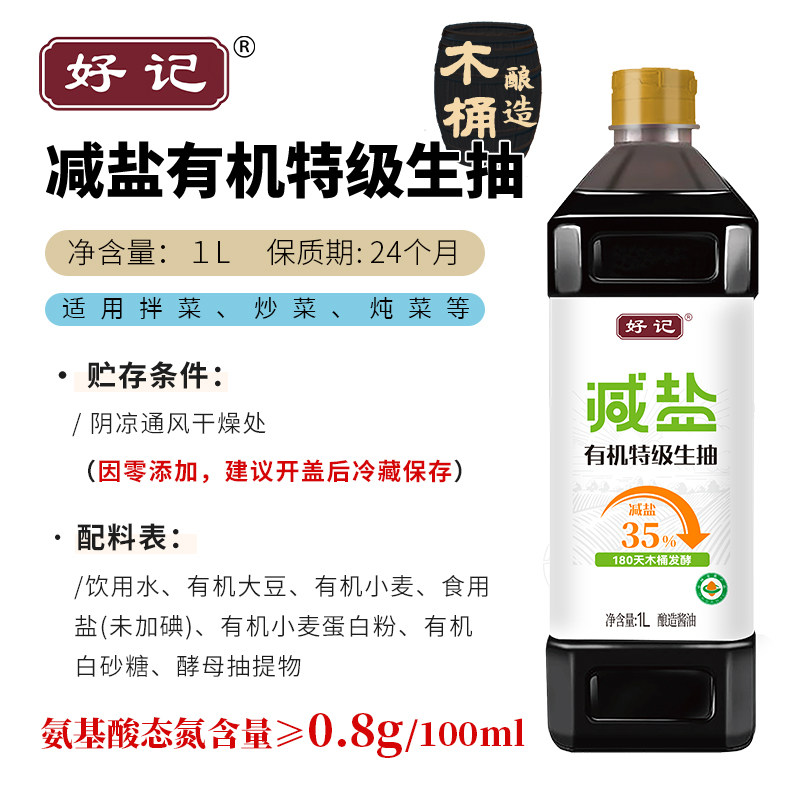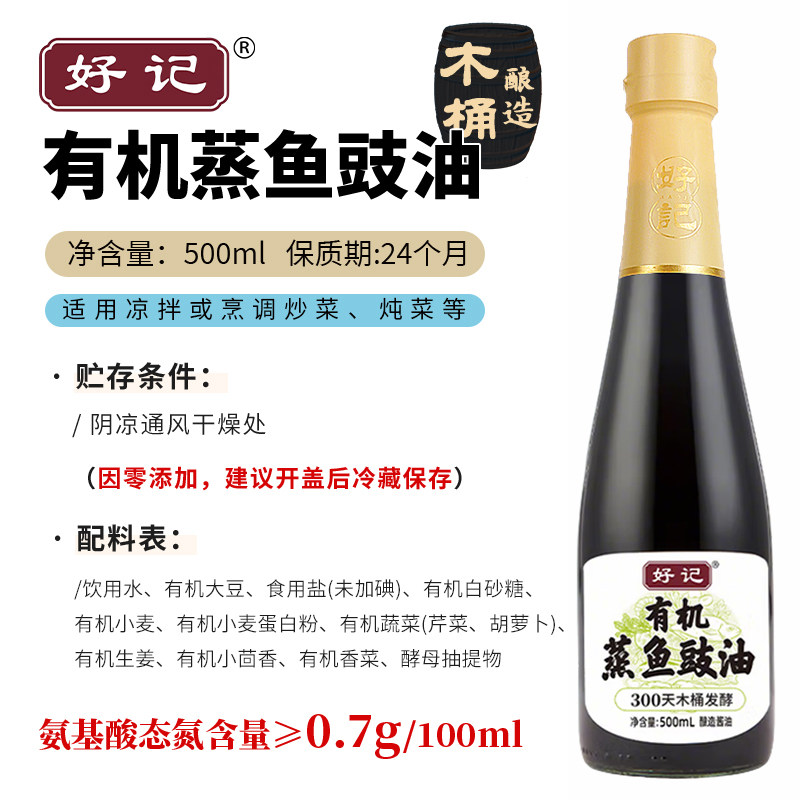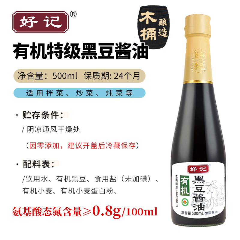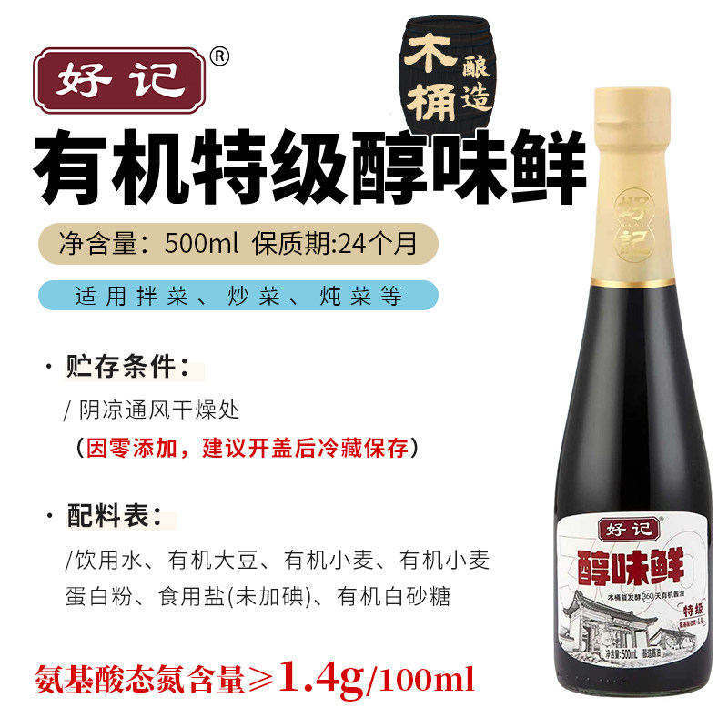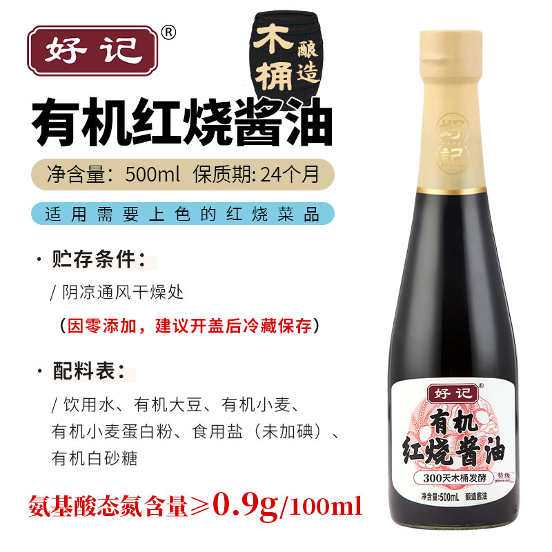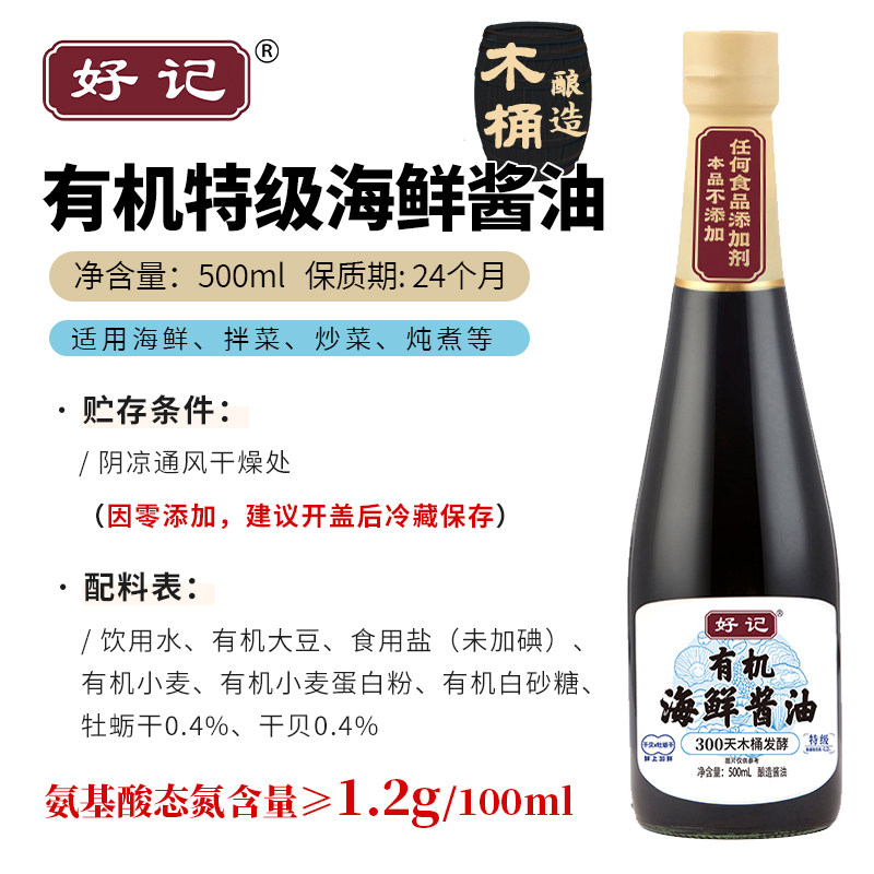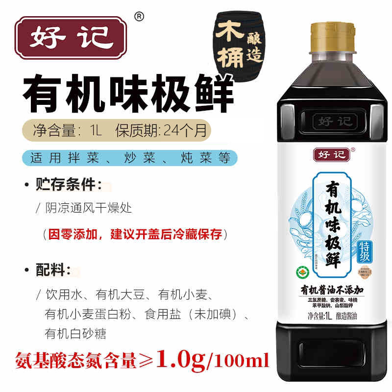 Haoji Organic Soy Sauce Zero Additives Premium First-Grade Light Soy Sauce Songjia Sauce Garden Naturally Brewed in Wooden Barrels Time-Honored Brand 0 Additives