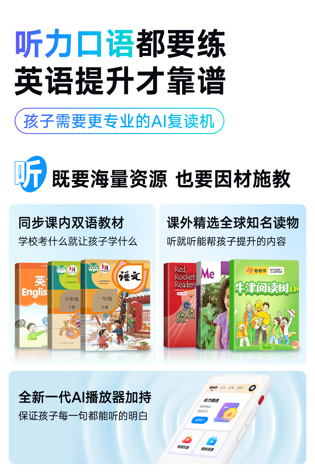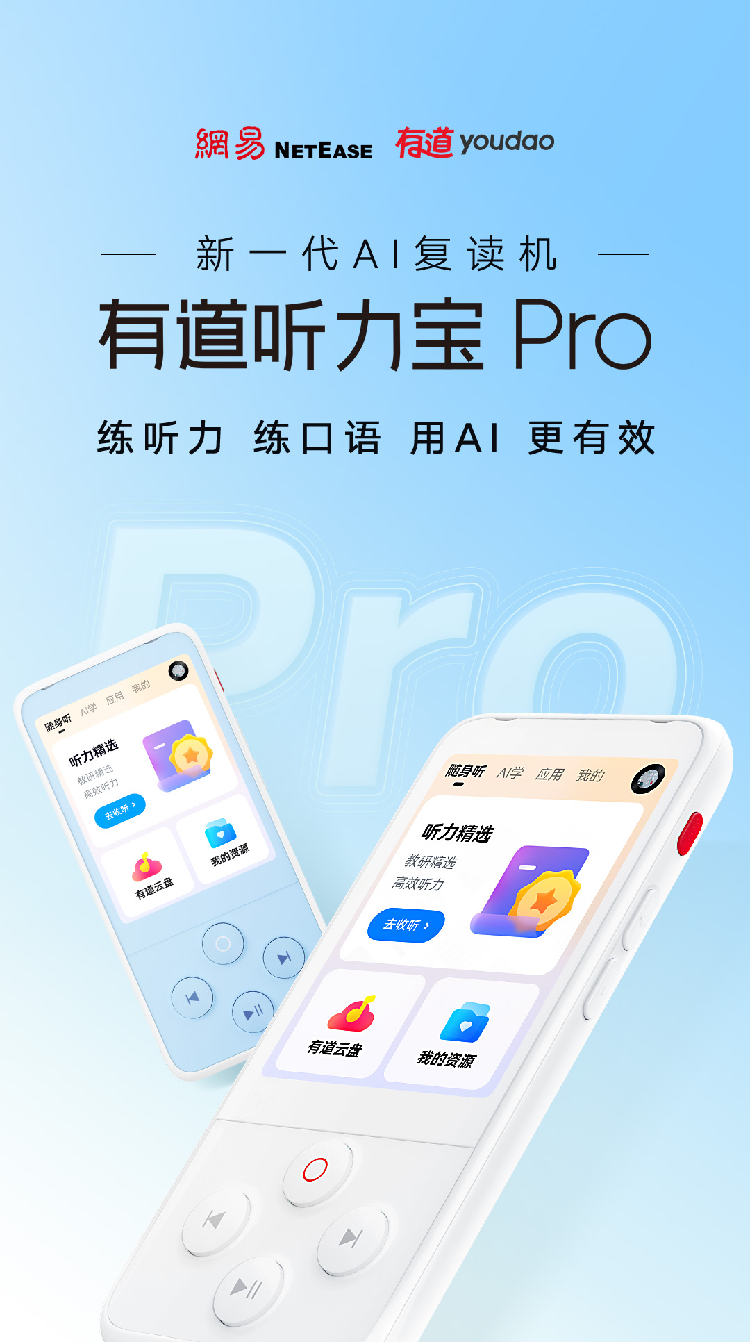 [National Subsidy 10% Off]Youdao Listening Treasure Pro Repeater English Listening Device, a Tool for Improving Listening Skills, Suitable for All Levels from Elementary to High School, Portable English Learning Player for Elementary School Students
