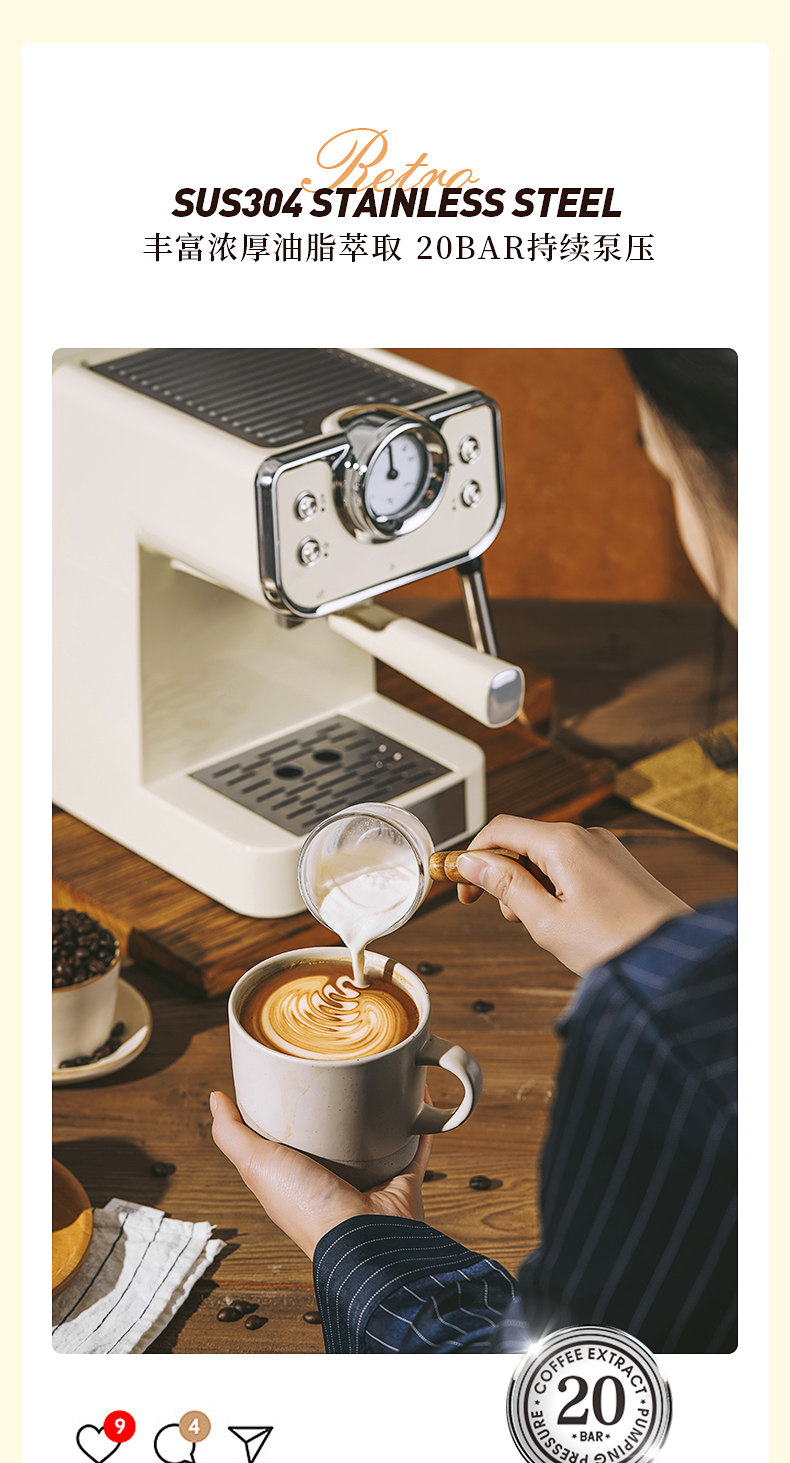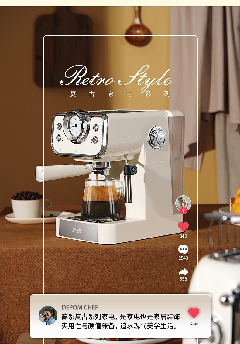 Debao Ma Retro Espresso Coffee Machine Semi-Automatic Household Small Steam Gift