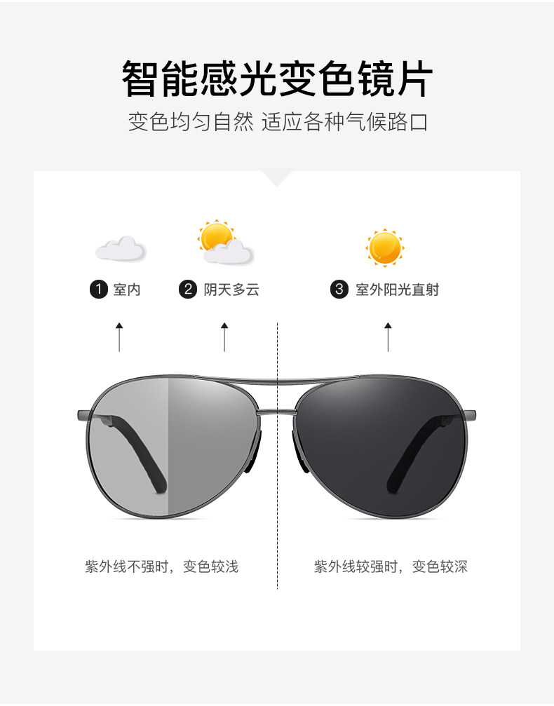 Sunglasses for Men and Women, New Style, Photochromic, Polarized, Uv Protection, Driving, Fishing, Aviator Style, Trendy