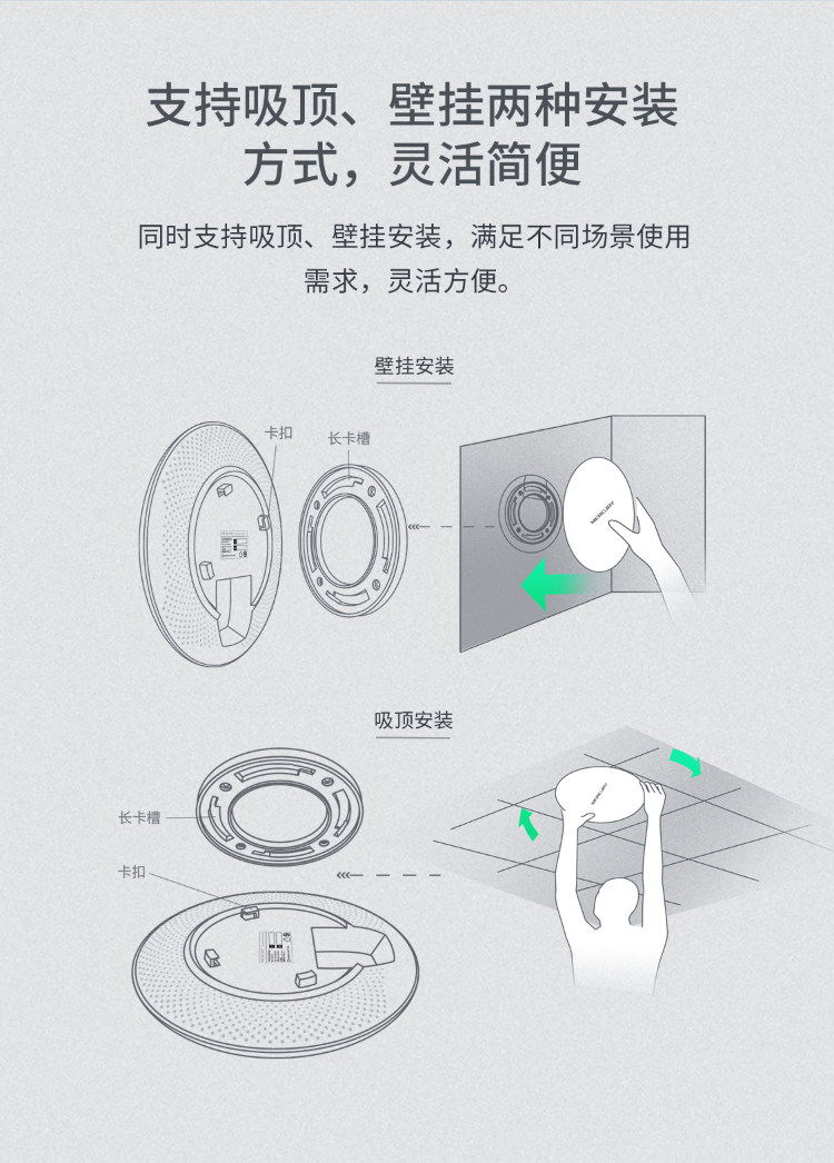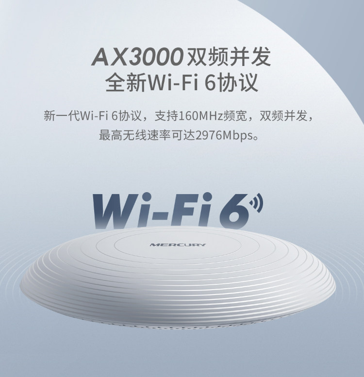 Mercury Ceiling-Mounted Ap Wireless Wifi6 Router Ax3000M Gigabit High-Speed Enterprise Commercial Home Use Full Coverage Hotel Project Dual-Band 5g Panel Ceiling Ap Wall-Mounted Router
