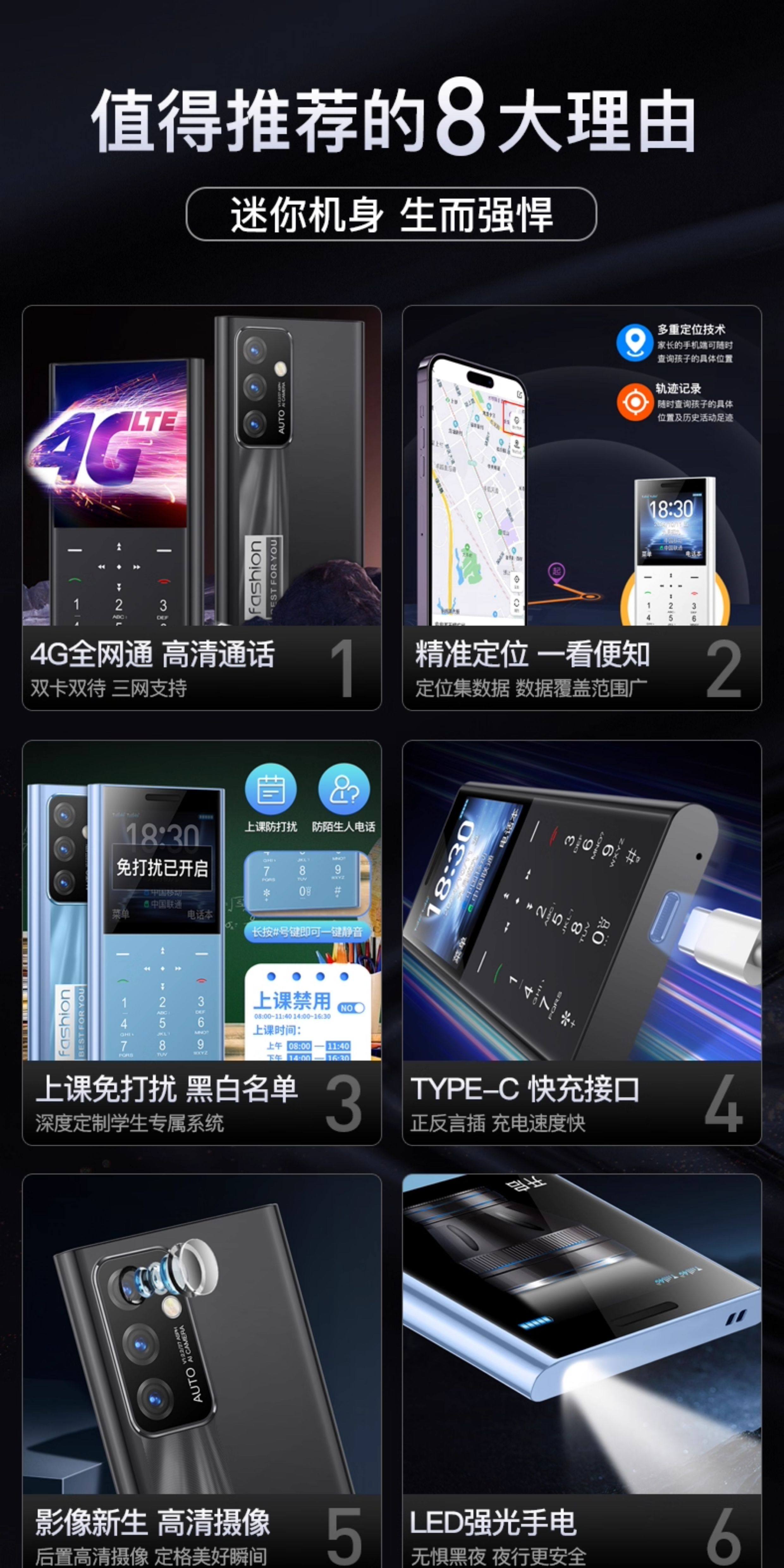 Mini Student Phone 4g Full Network Access Children's Phone Ultra-Long Standby Anti-Addiction Special Positioning Micro-Chat Backup Small Phone Non-Smartphone for Men and Women Elderly Phone Student Model High School Student Elderly Phone