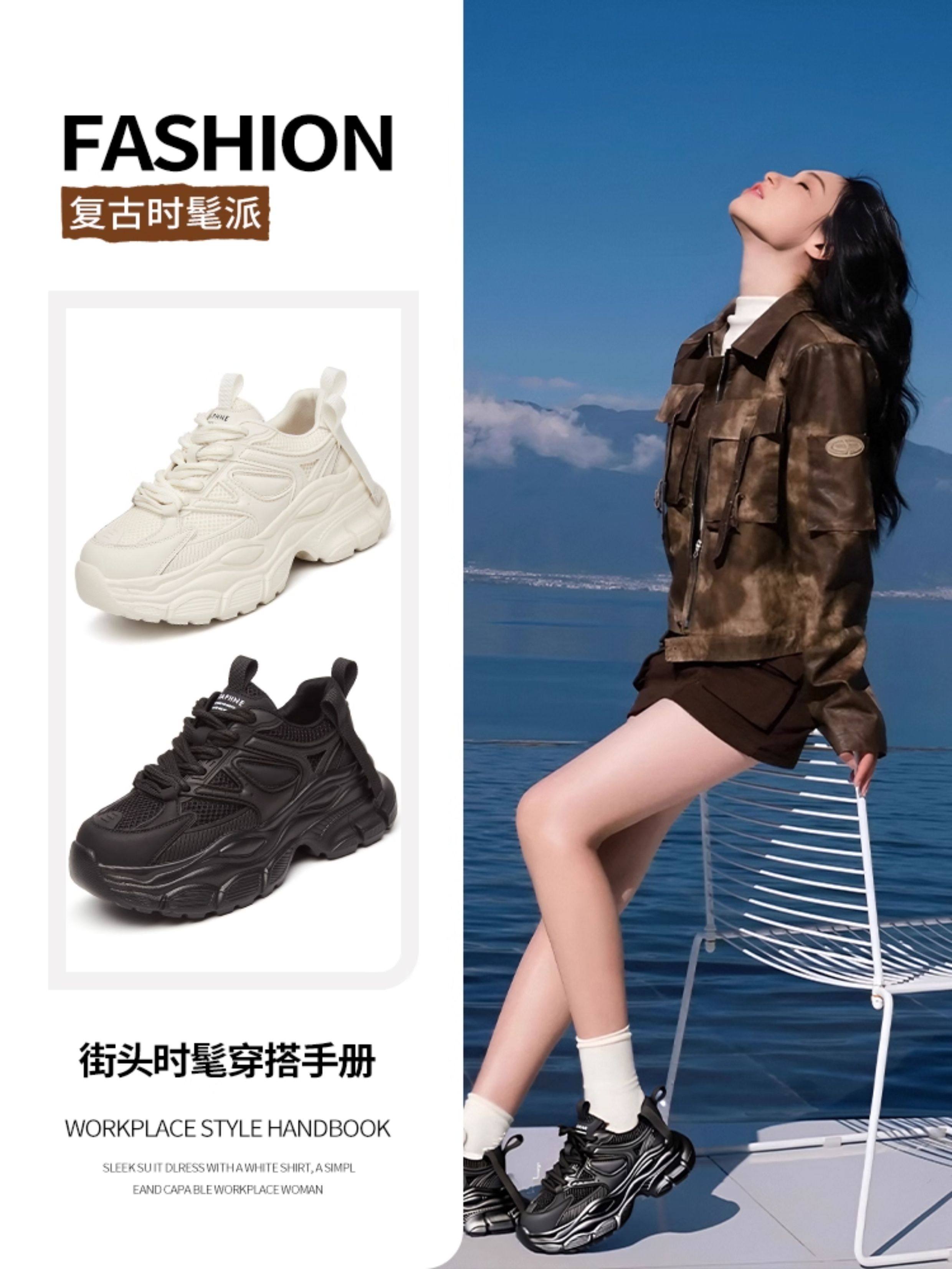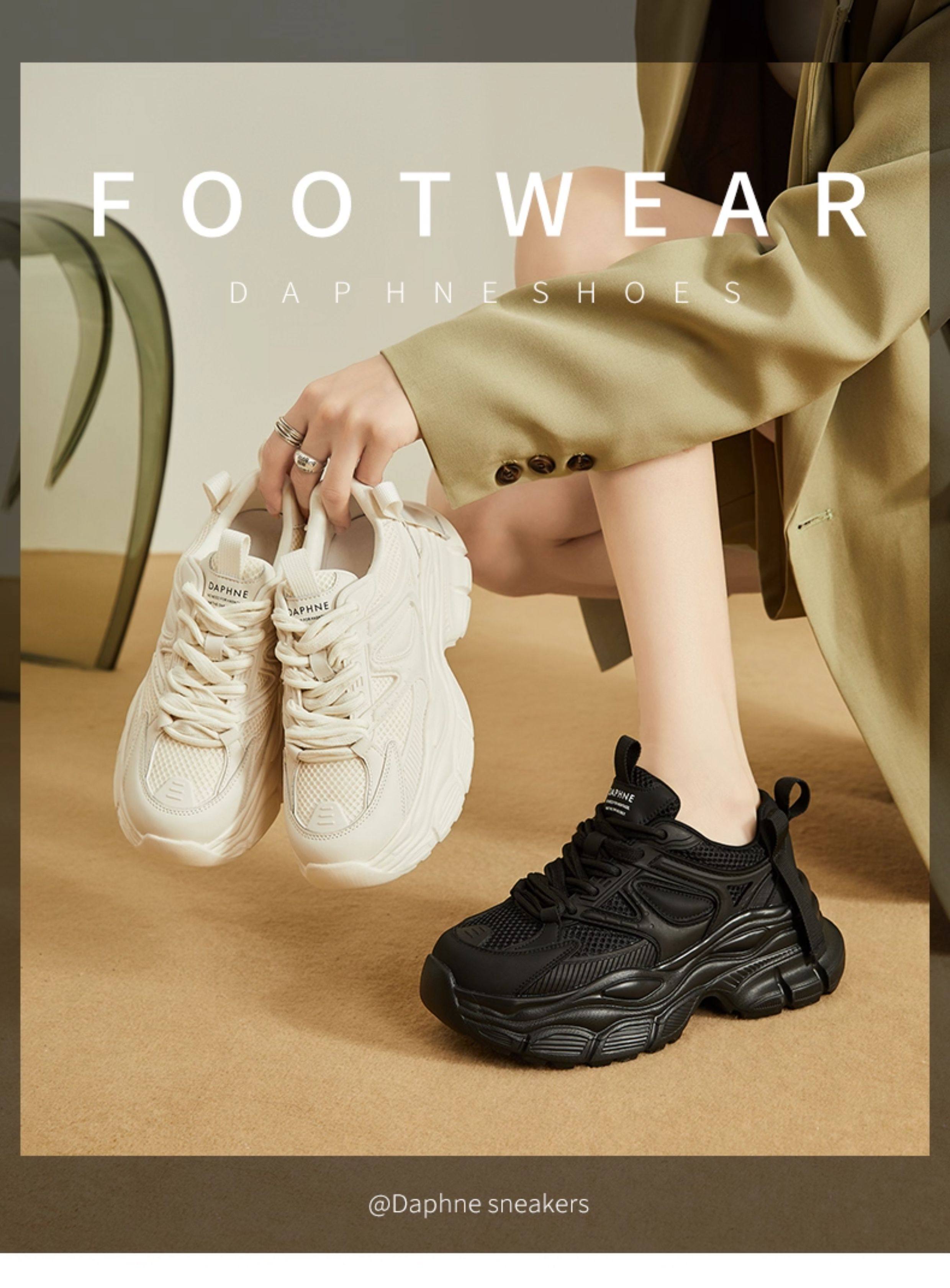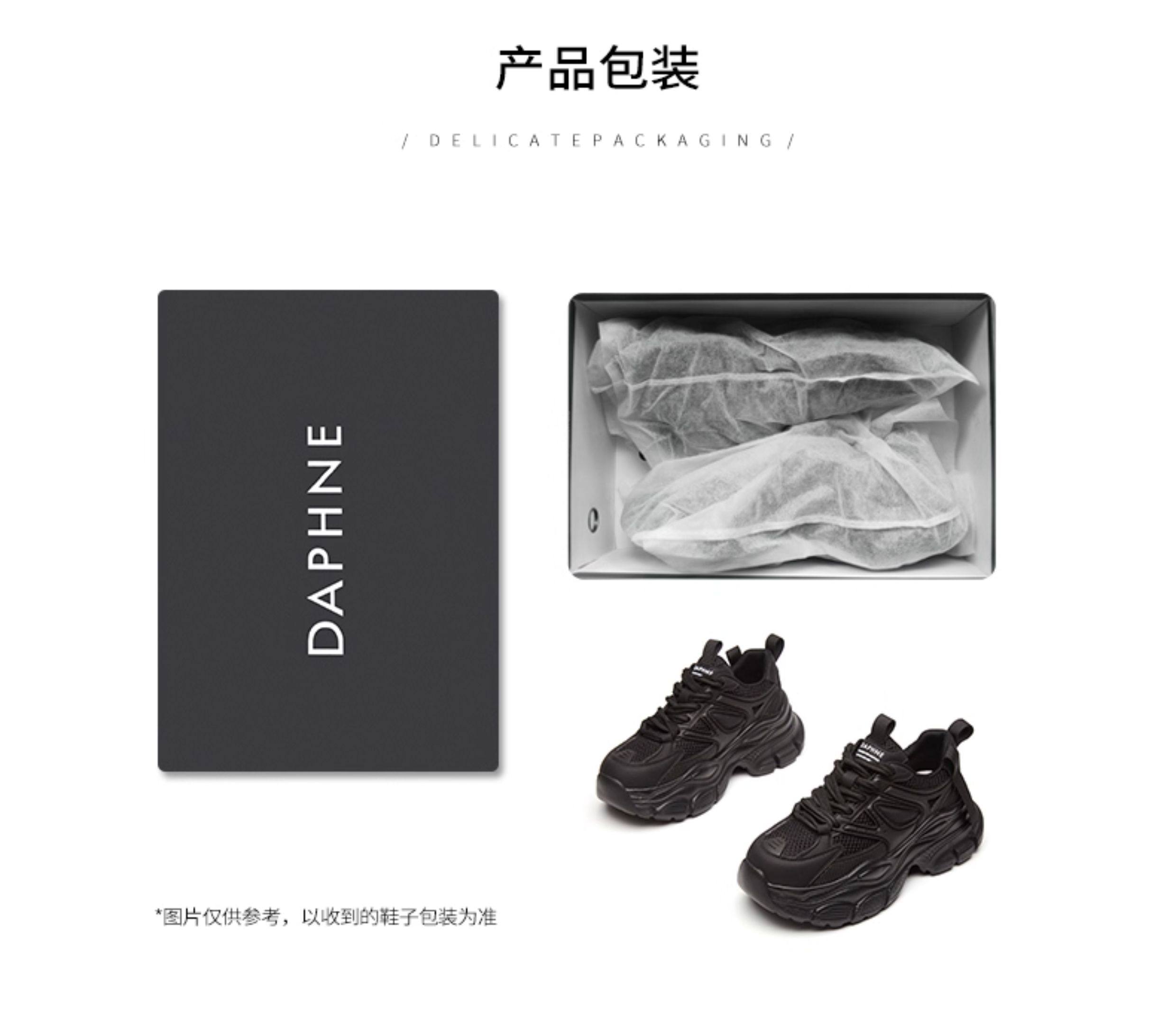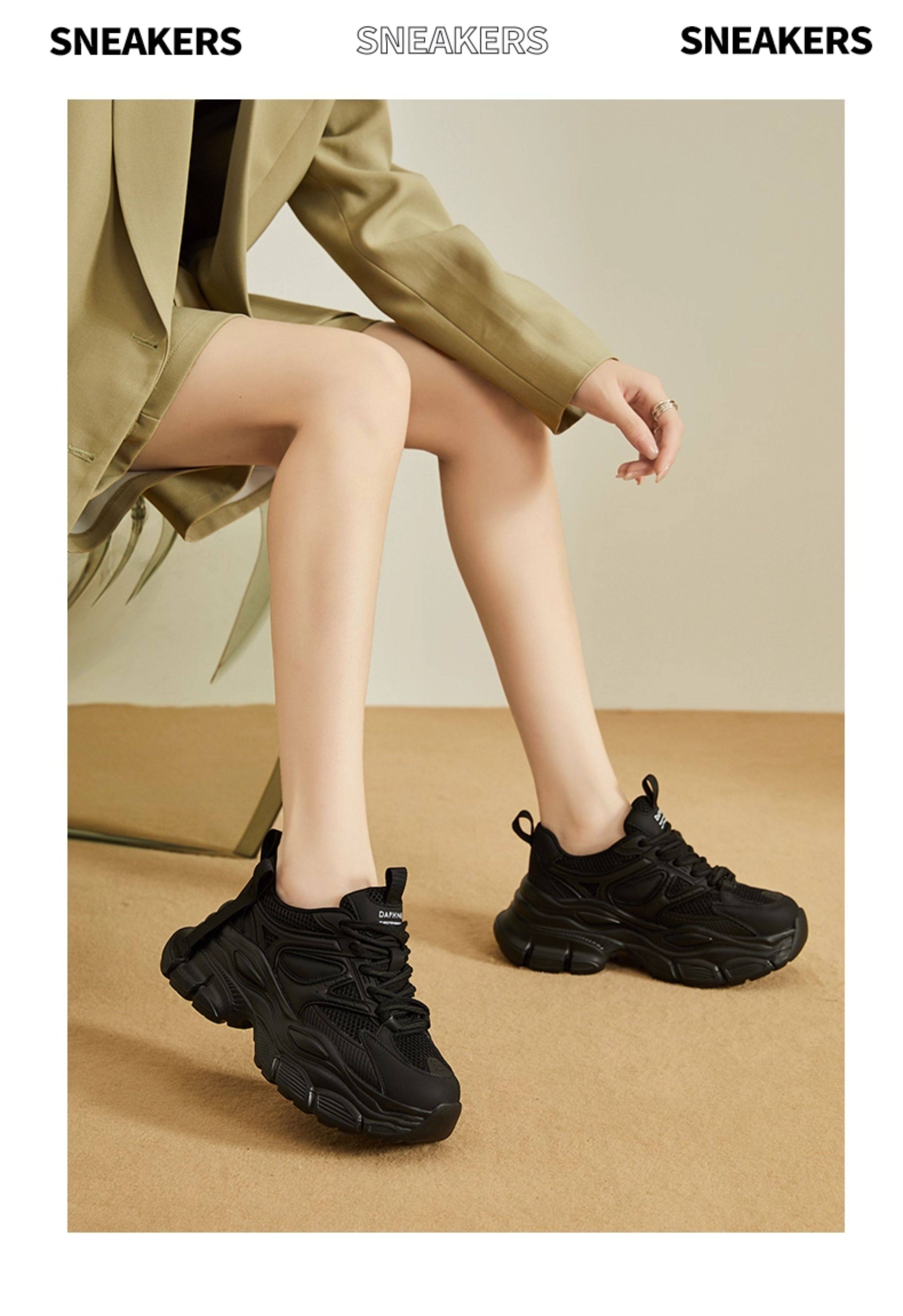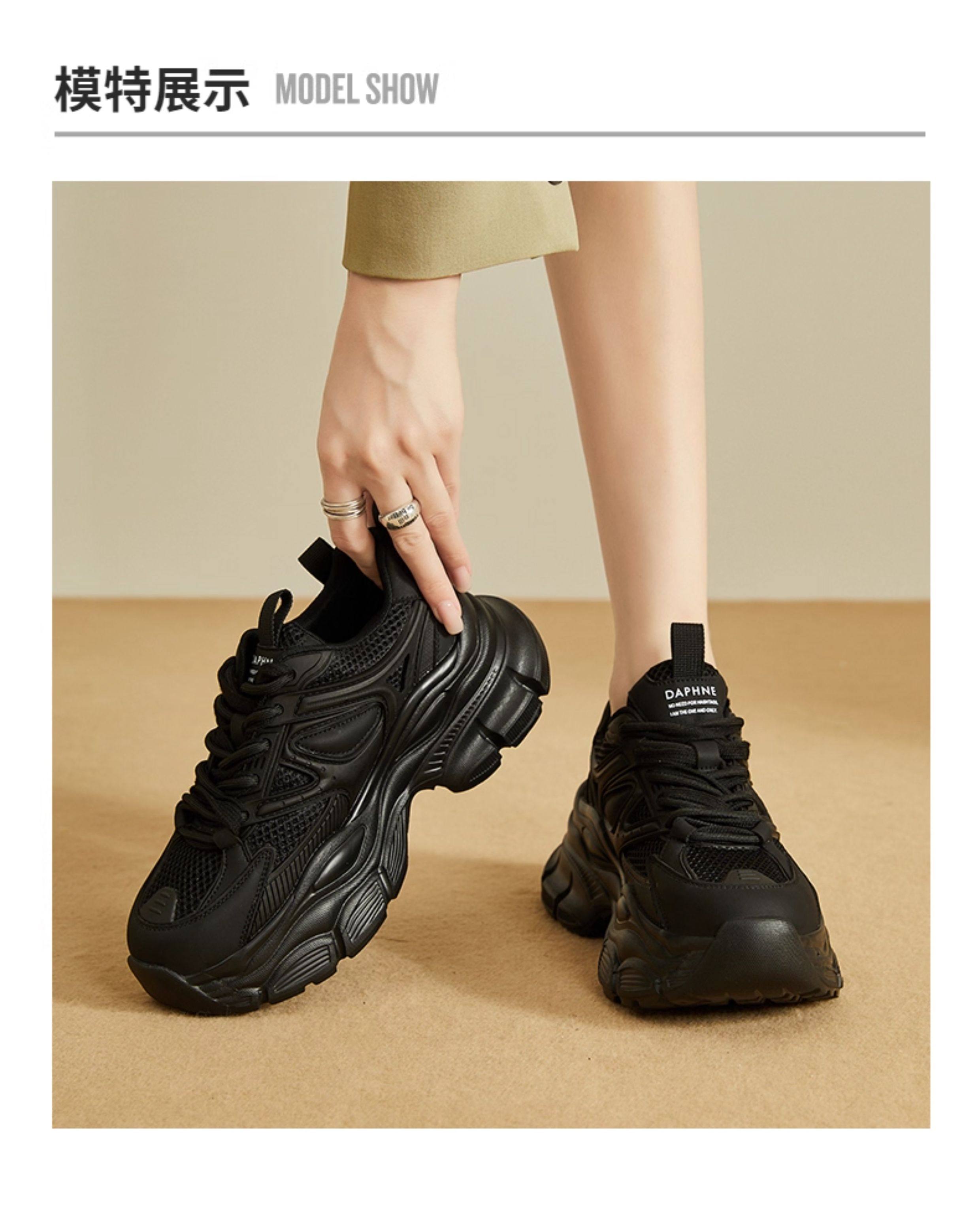 Daphne Thick-Soled Dad Shoes Black 2025 New Autumn and Winter Popular Sports Casual Height-Increasing Super Hot Shoes for Women