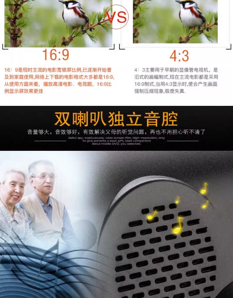 29inch Large-Screen Mobile Dvd Player for the Elderly, Portable Cd Player, Vcd Disc Player, All-In-One Machine for Watching Movies